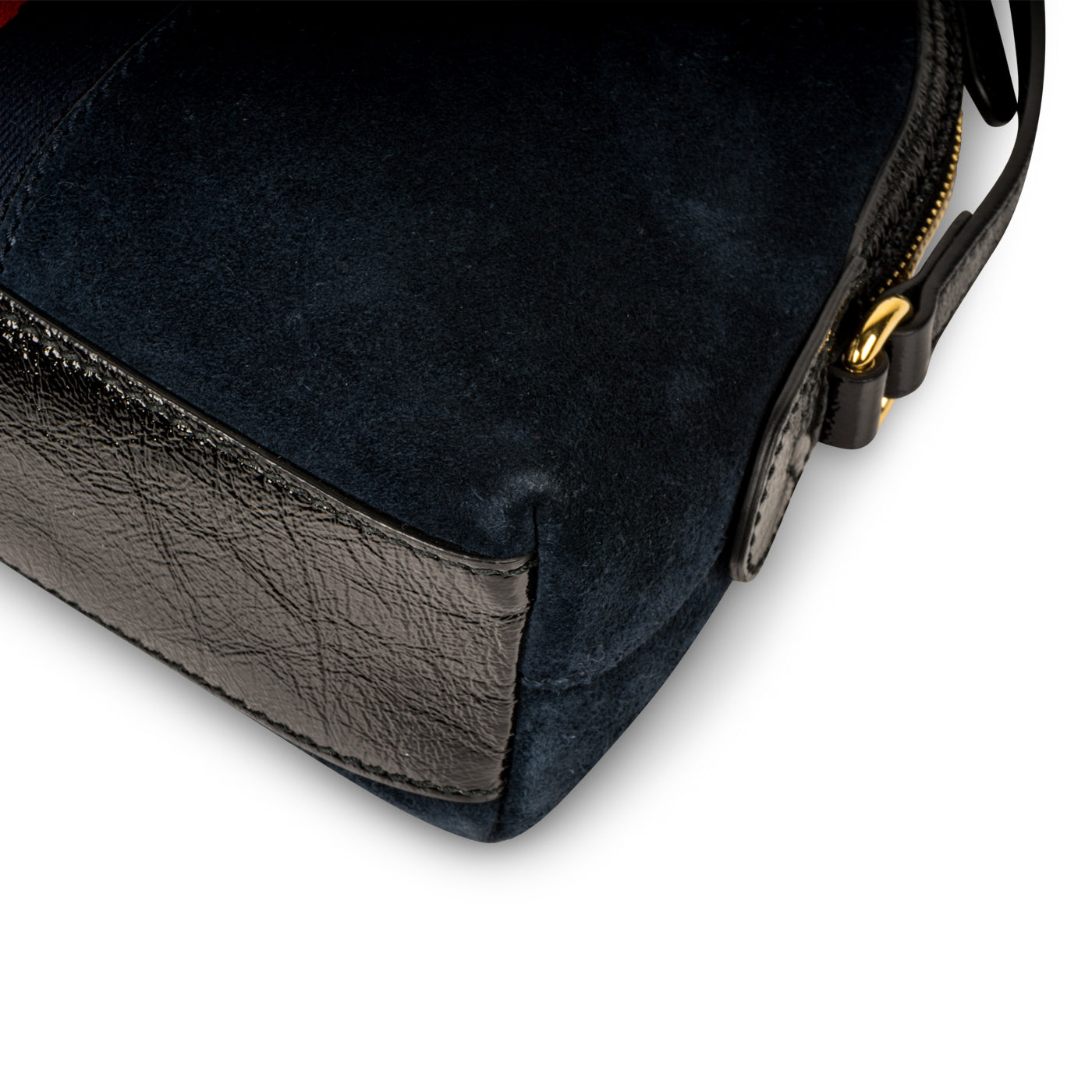 - Black patent leather trimming, base and shoulder strap