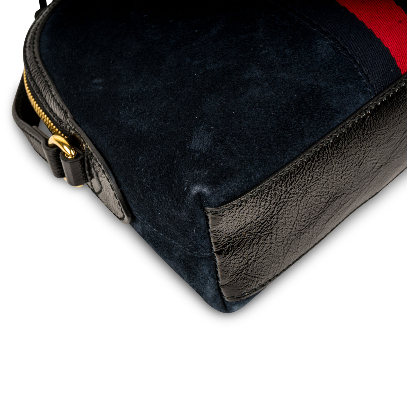 Crafted from romantic navy suede, Gucci presents their Ophidia cross-body bag. Featuring gold-tone hardware, black patent leather details and Gucci's classic red and blue fabric strip down the front, the Ophidia is an absolute must-have for any woman with a love for luxury and a soft spot for timepieces. Though the Ophidia isn't a vintage model, it is the perfect balance between old and new. A somewhat modernized version of a traditional Gucci bag, the Ophidia reminds us of a vintage piece that's been pushed forward into the contemporary world - and we're here for it. A low-key piece from the brand, Gucci is known for its flamboyant aesthetic - but this Ophidia still manages to be effortlessly luxurious in the most modest way possible. Suitable for any and every occasion, this bag is the ideal compliment to pretty much anything in your wardrobe. A sophisticated piece with elements of youth and playfulness, the Ophidia is a well-worthy addition to any woman's luxury handbag collection.�