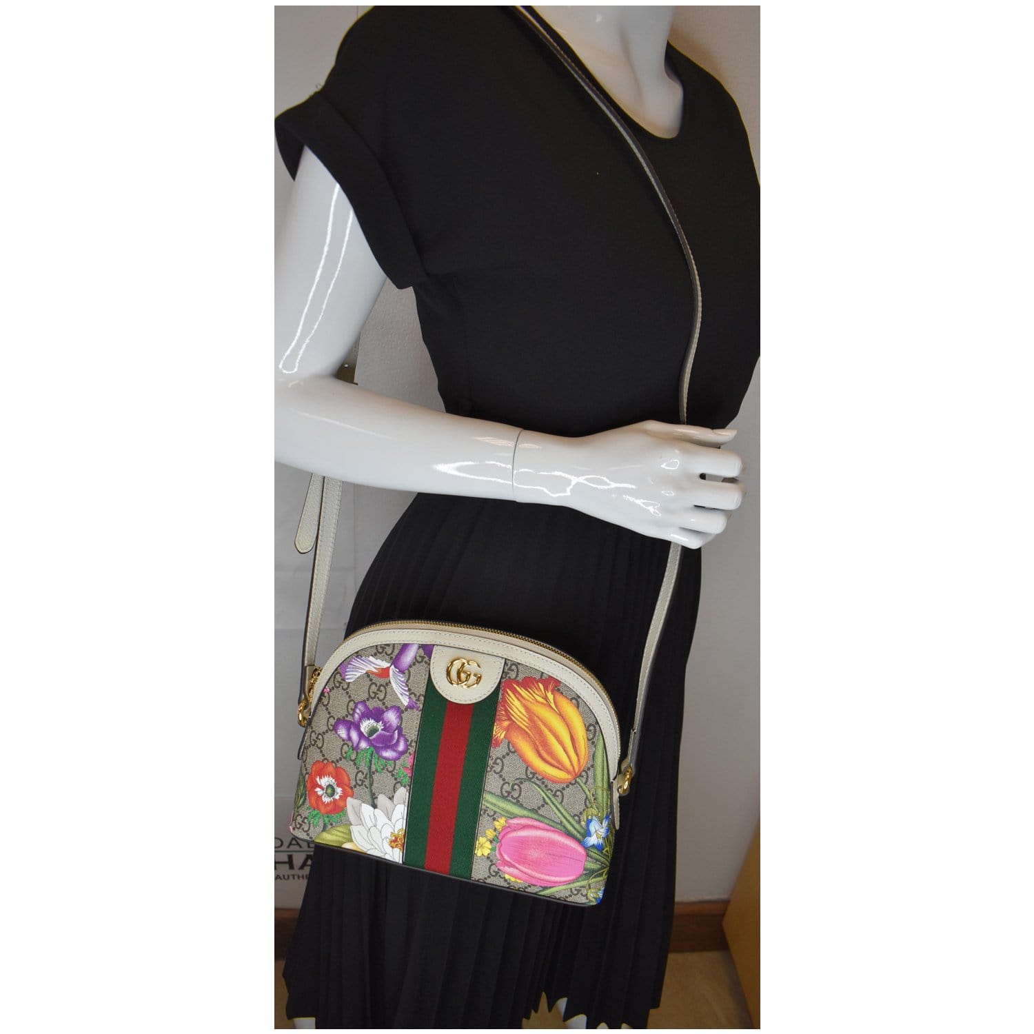 GUCCI Ophidia Flora Small Supreme Canvas Shoulder Bag Beige 499621 - Final Sale