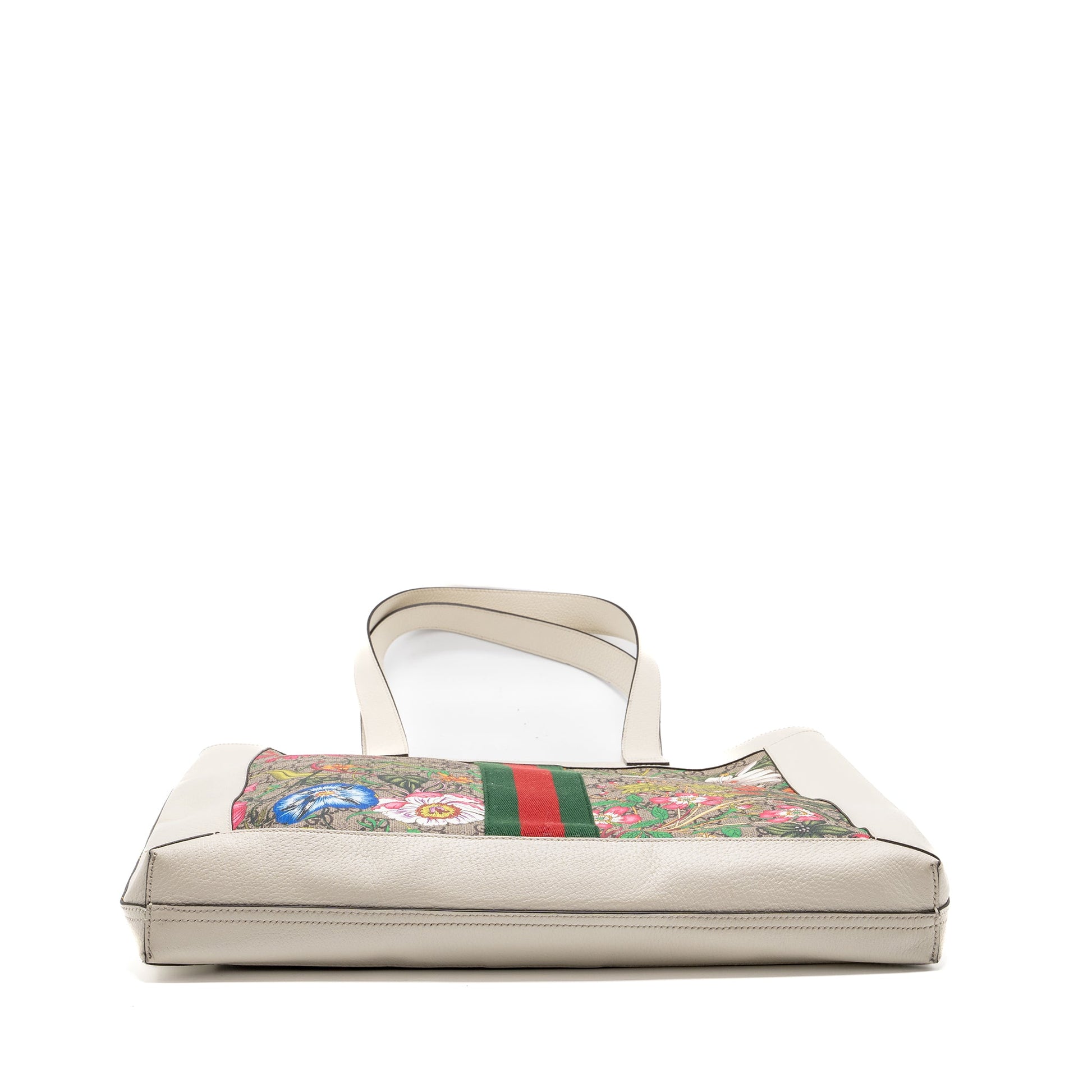 GUCCI OPHIDIA GG LEATHER TRIMMED Flora PRINTED COATED CANVAS TOTE Mulitcolour