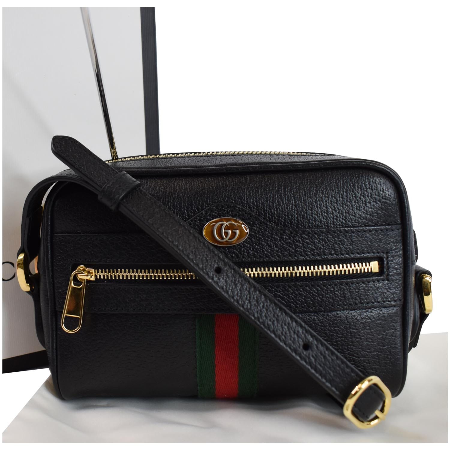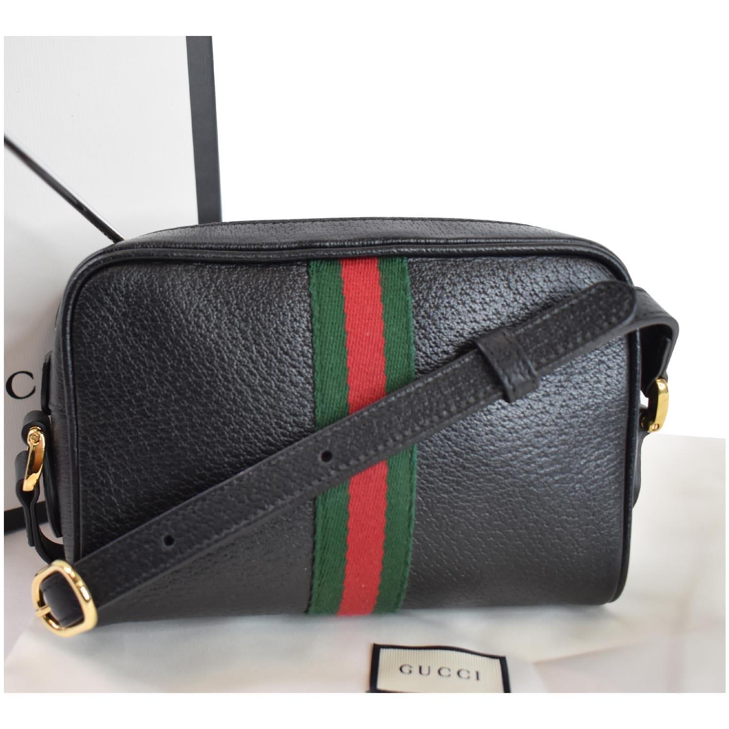 GUCCI Ophidia Mini GG Web Leather Crossbody Bag Black 517350