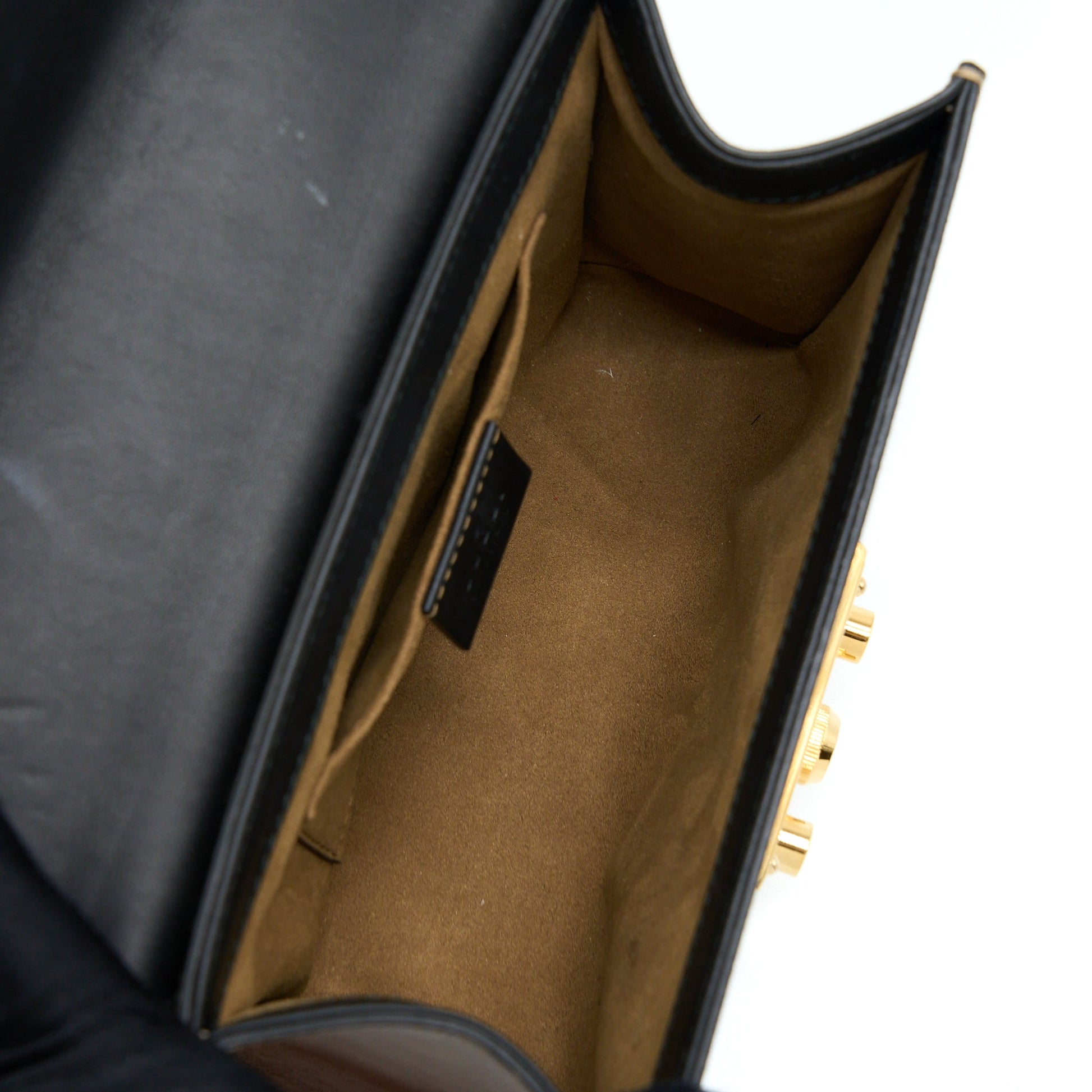 (This item is in fair condition with scratches on leather, hardware and under the flap, slight dents on leather, sign of use inside.)