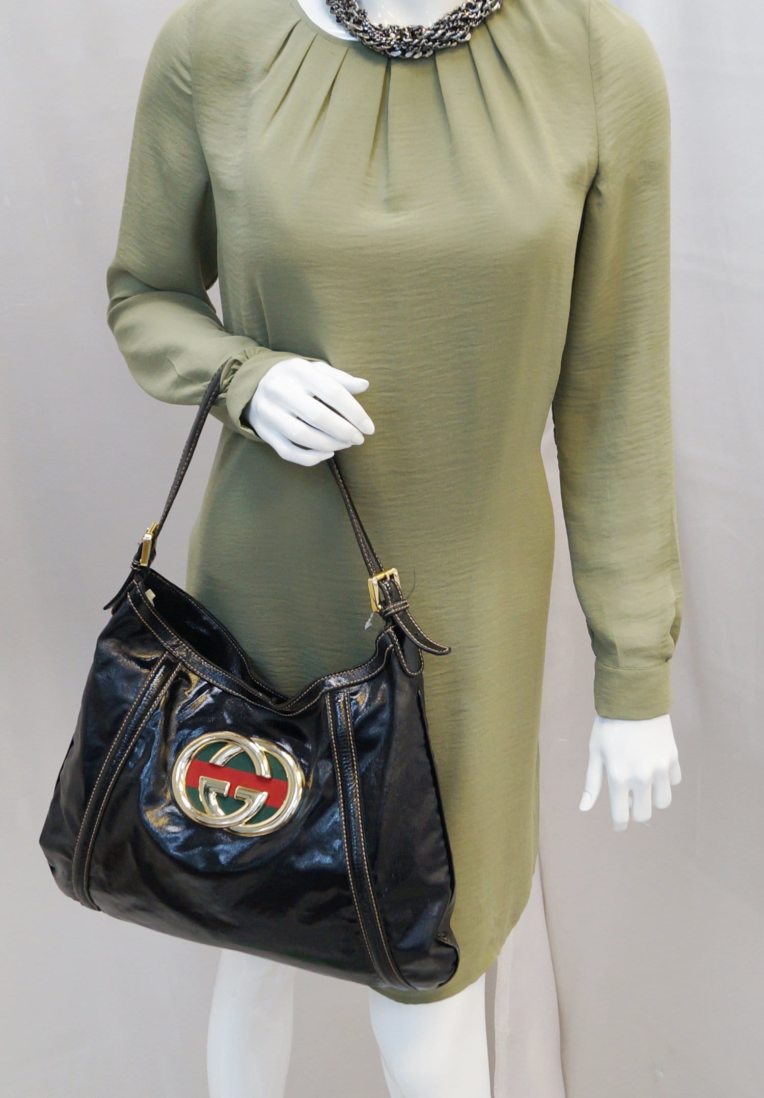 GUCCI Patent Leather Black Medium Britt Hobo Bag�