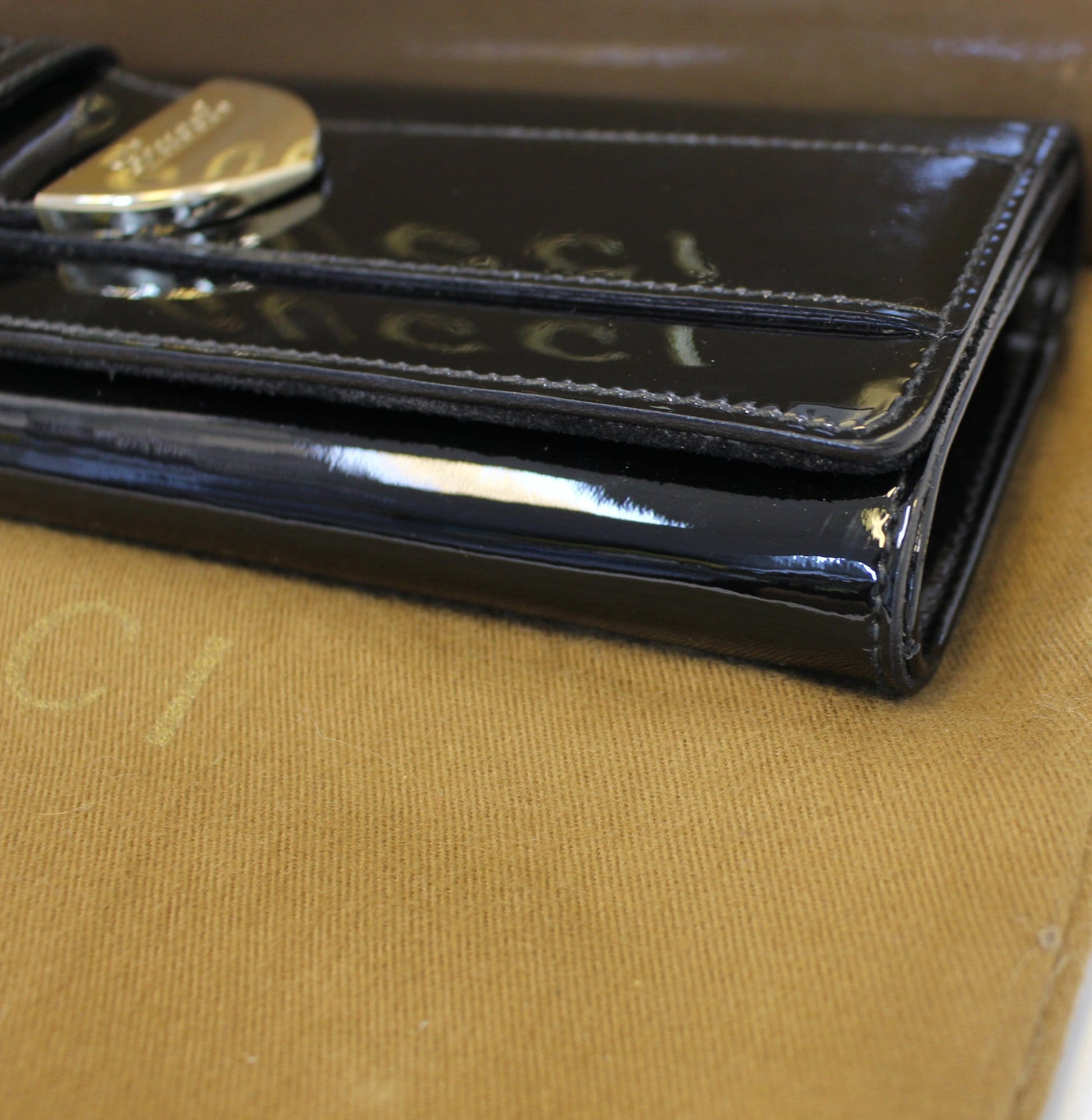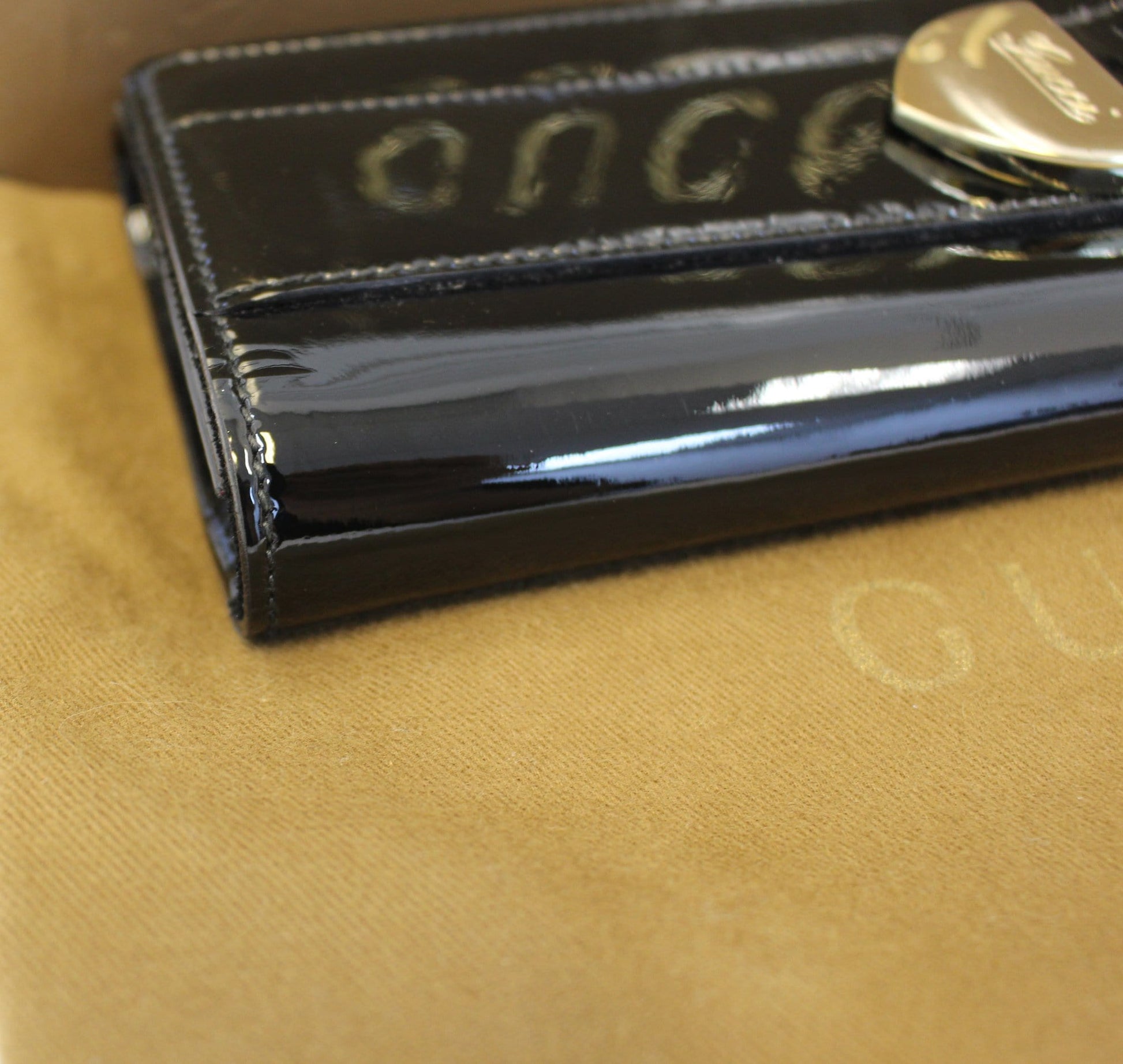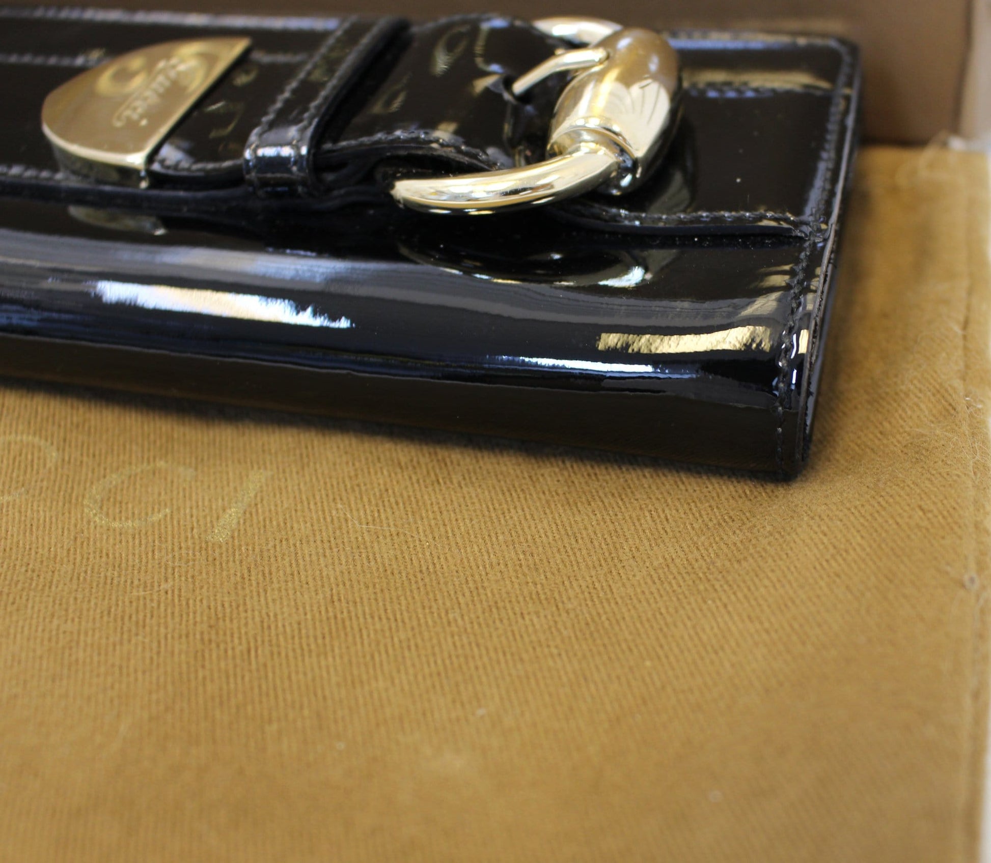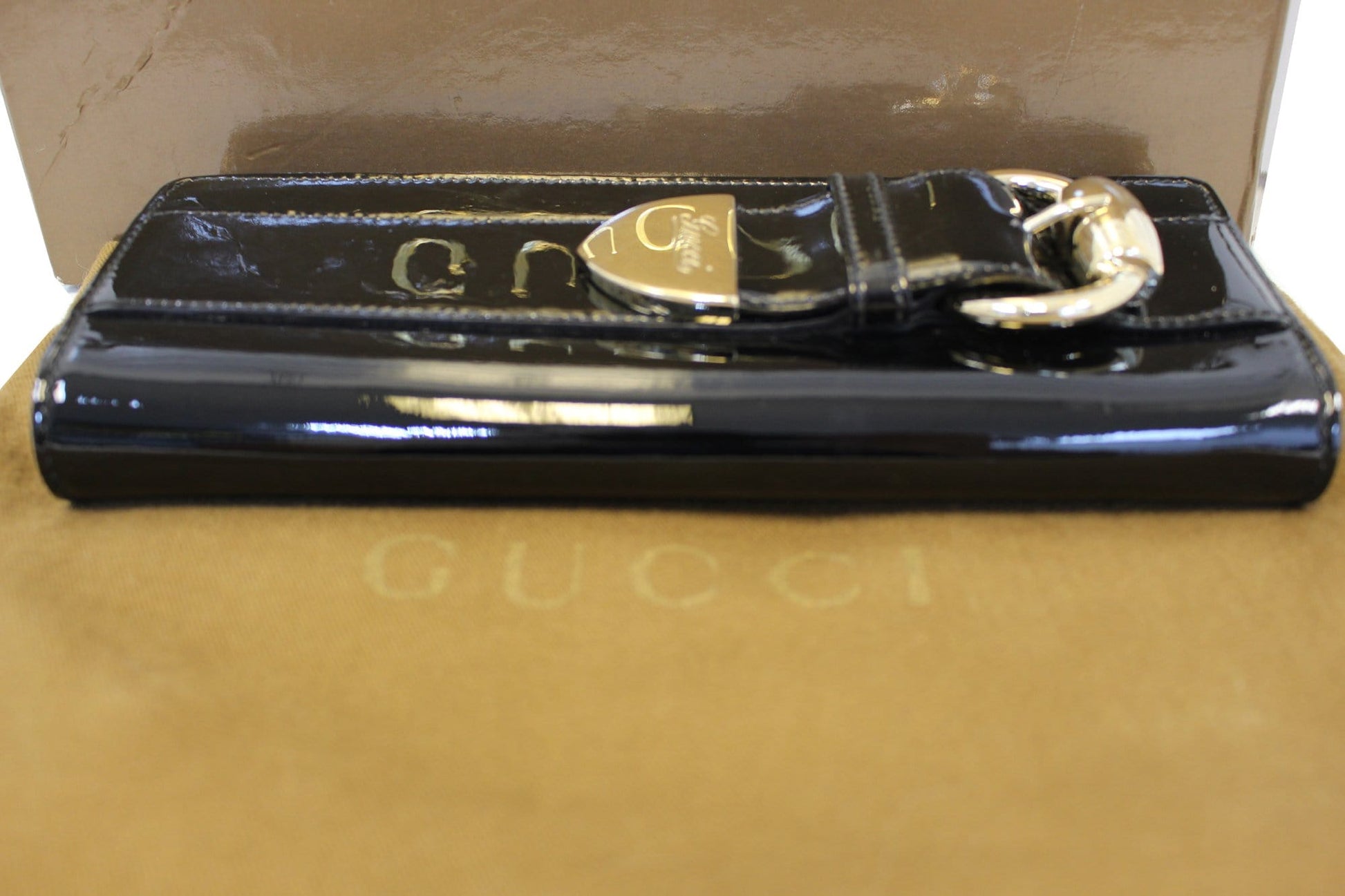 GUCCI Patent Leather Black Romy Clutch Wallet 181544