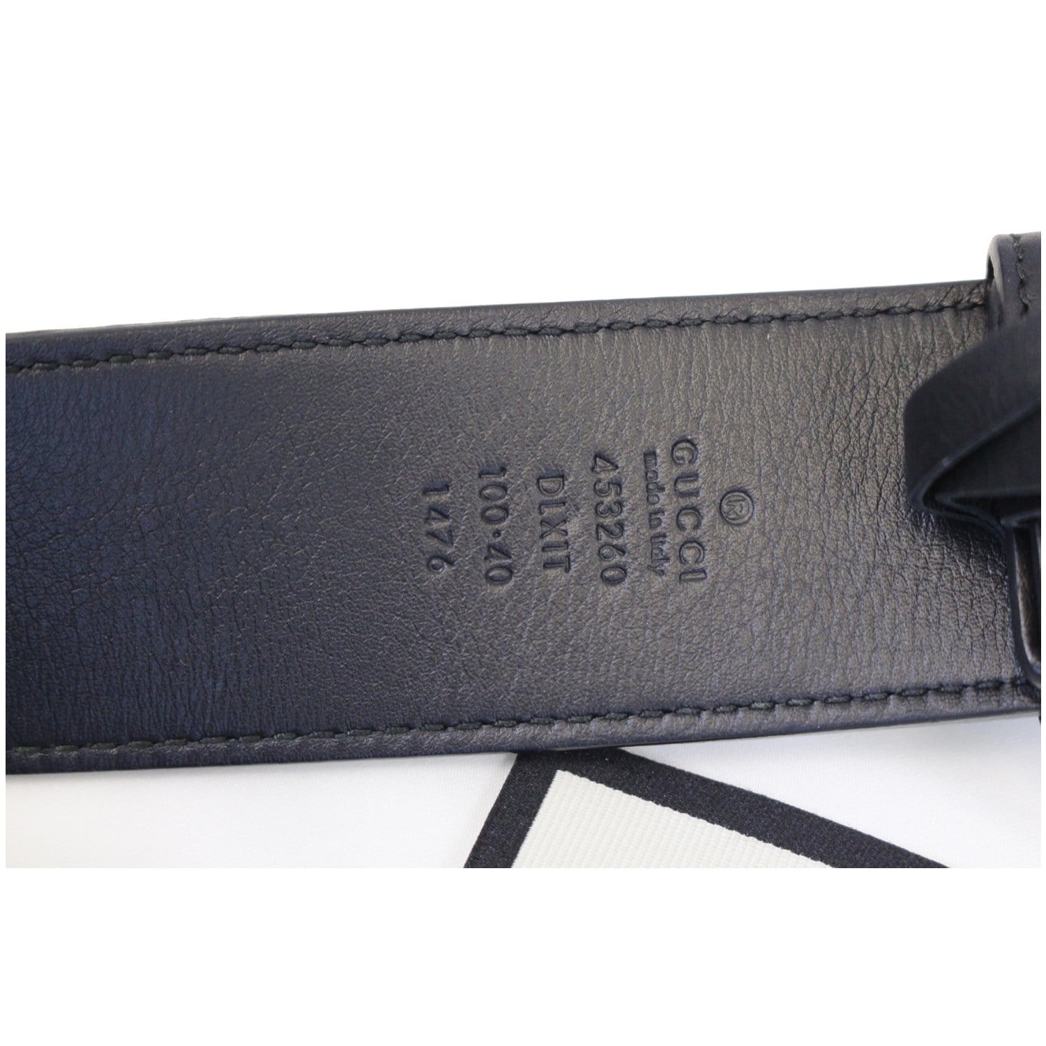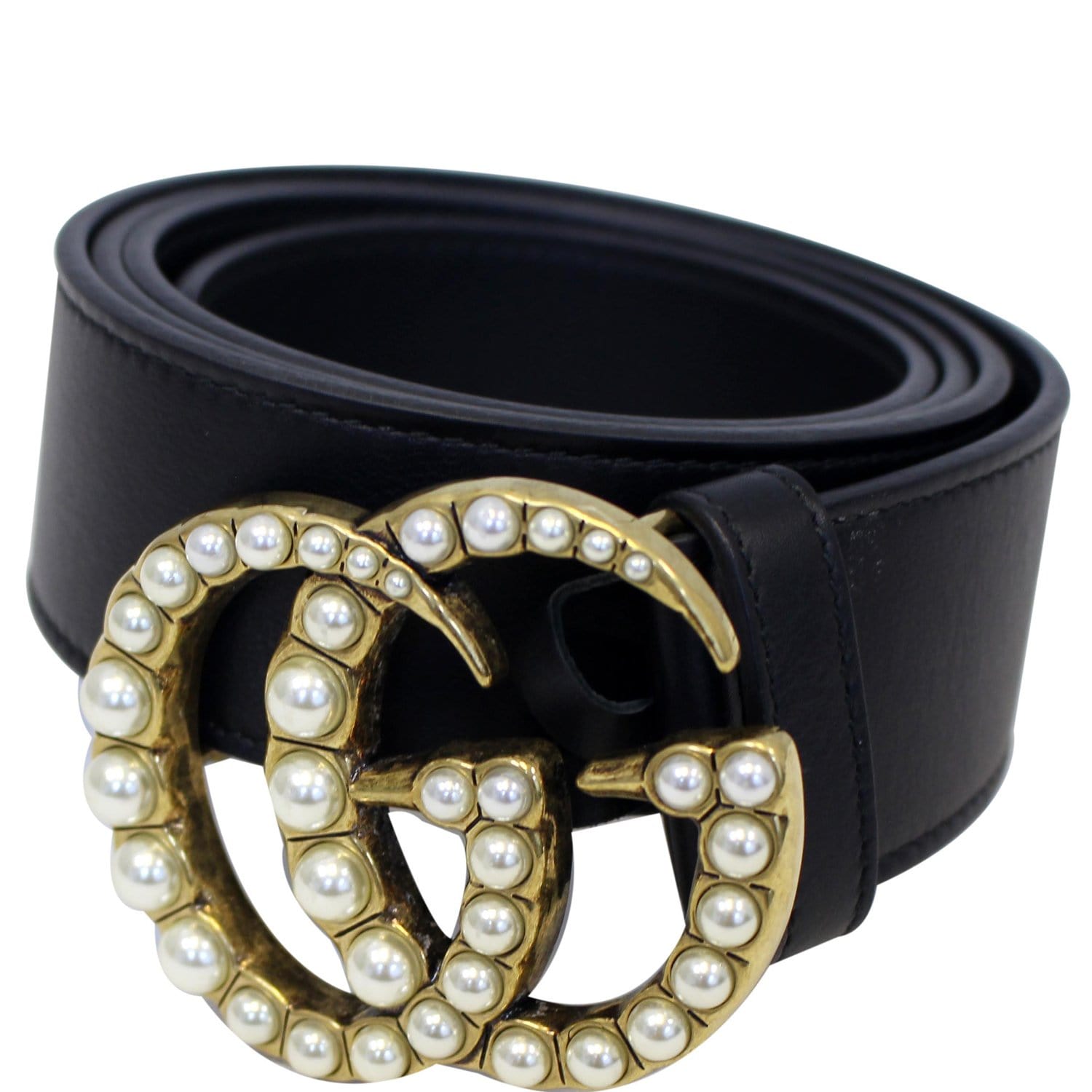 GUCCI Pearl Double G Black Leather Belt Size 100.40 Black
