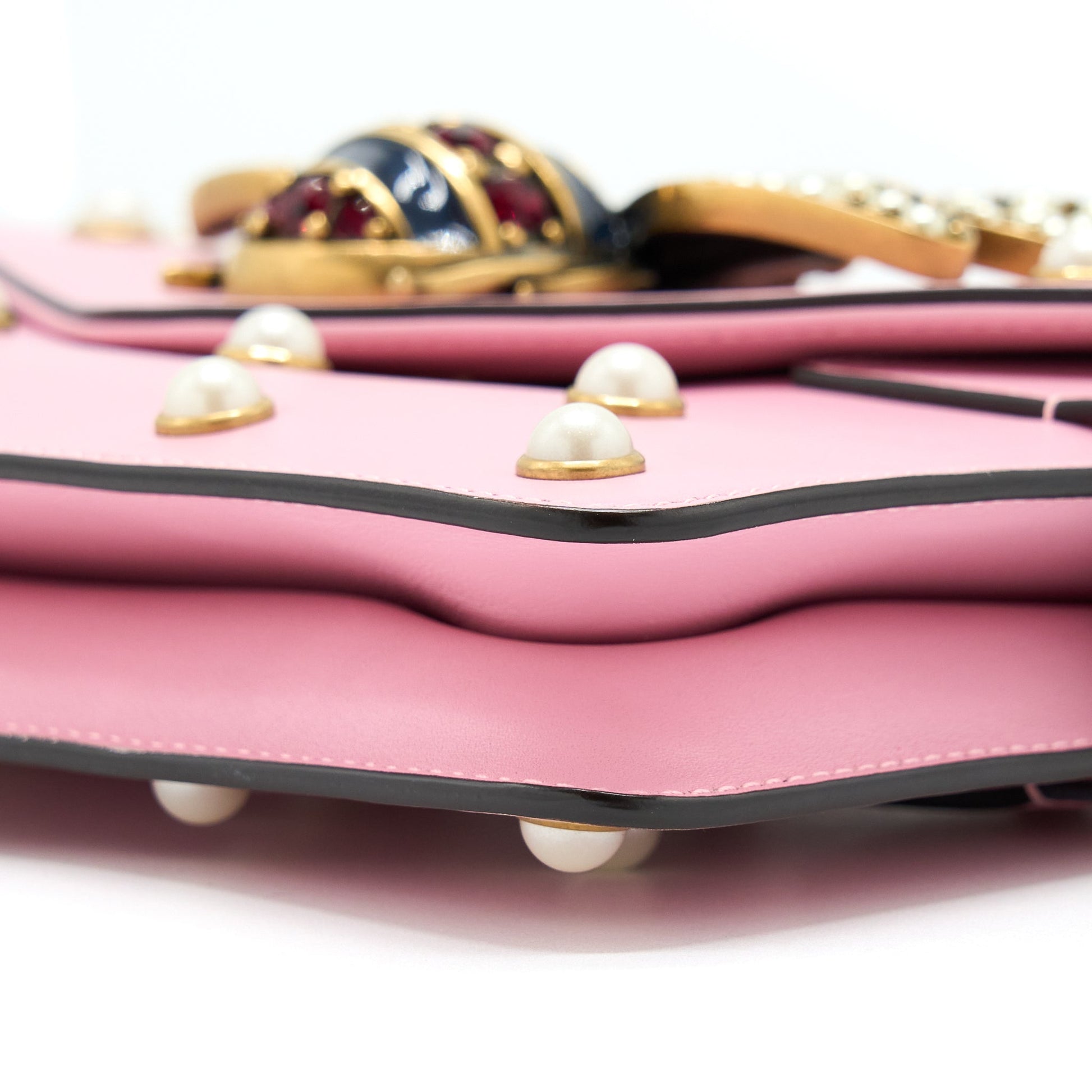 Gucci Pearl Studded Mini Broadway Bee Shoulder Bag Pink