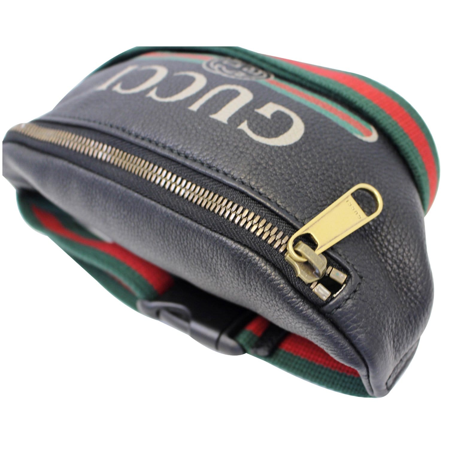GUCCI Print Leather Black Belt Waist Bum Bag Small 527792