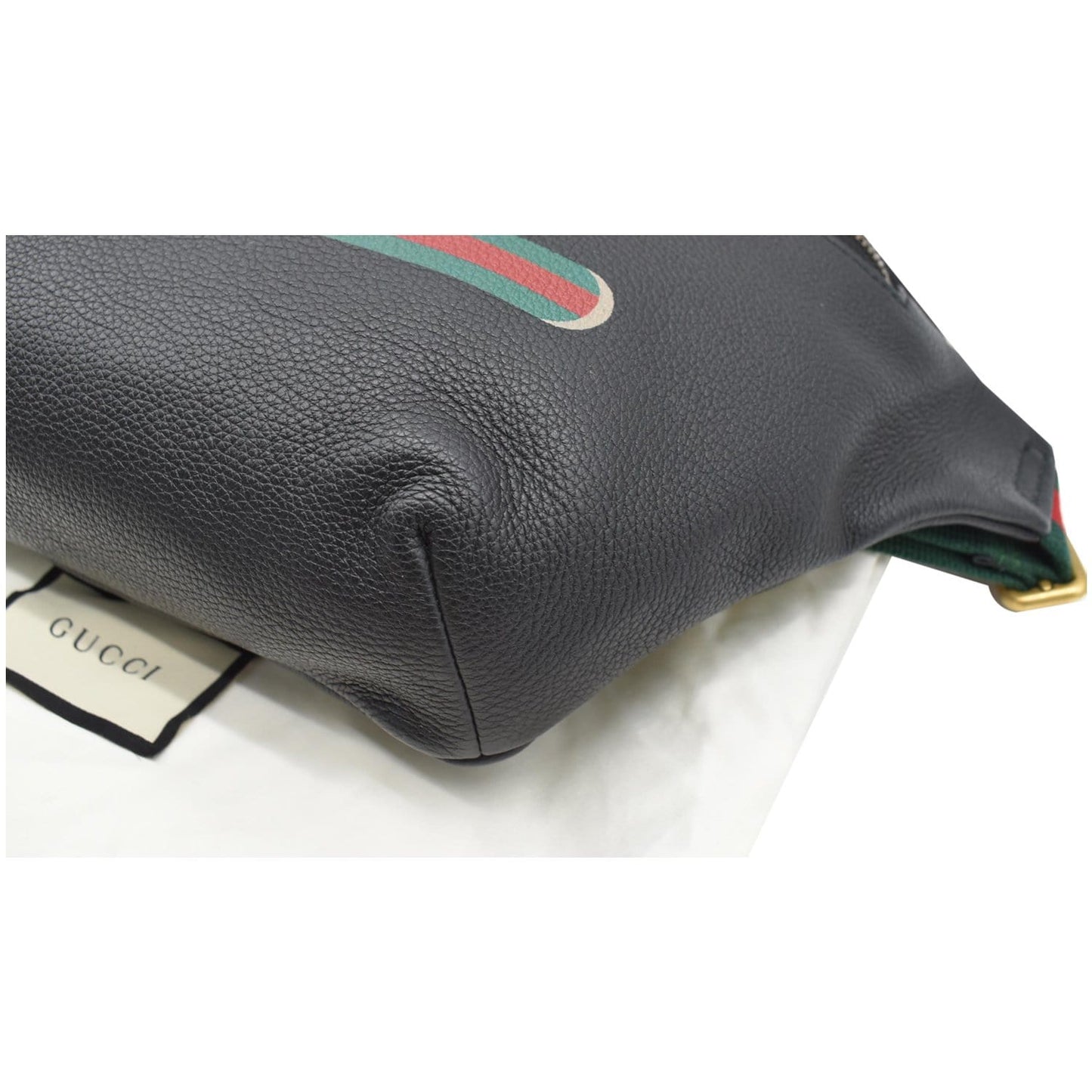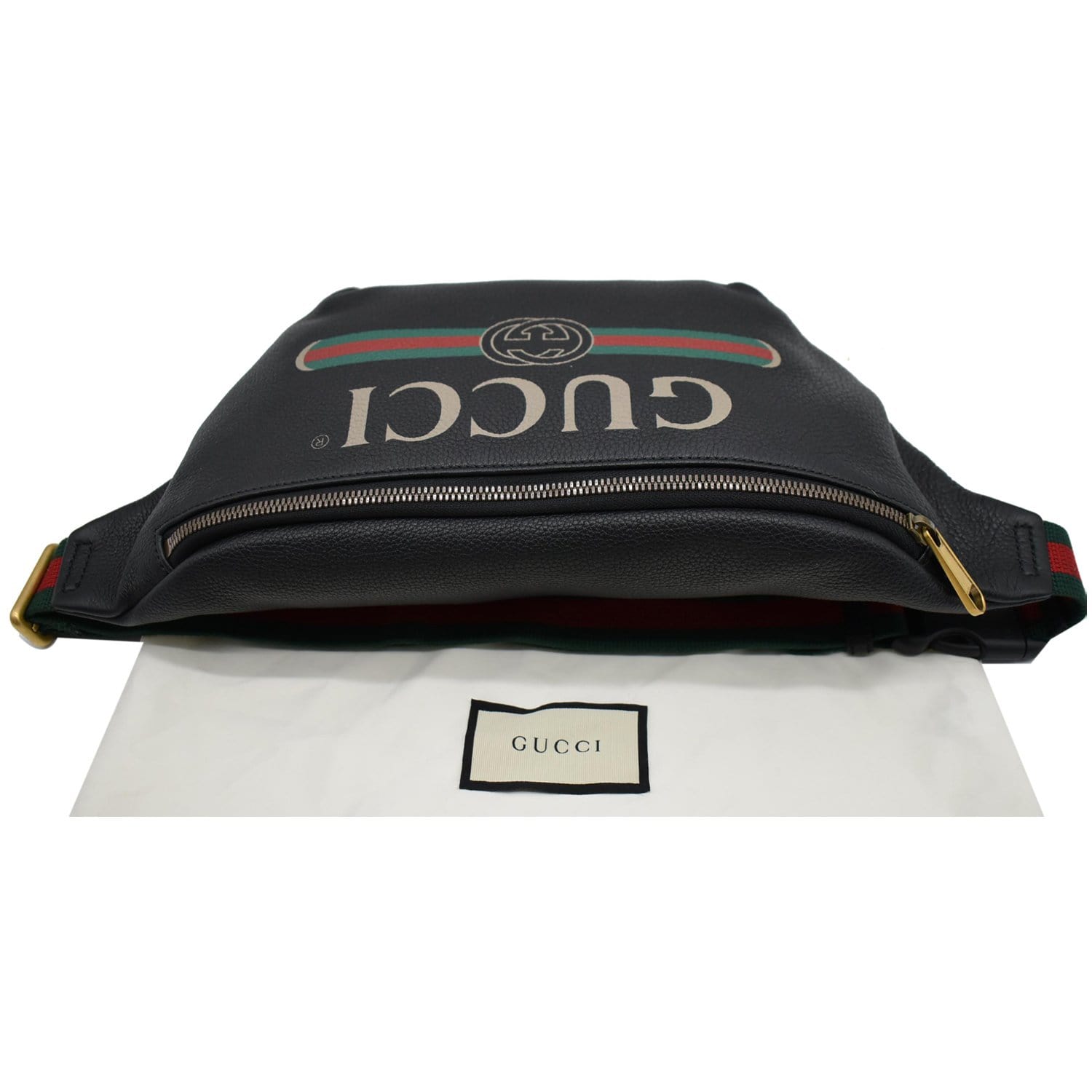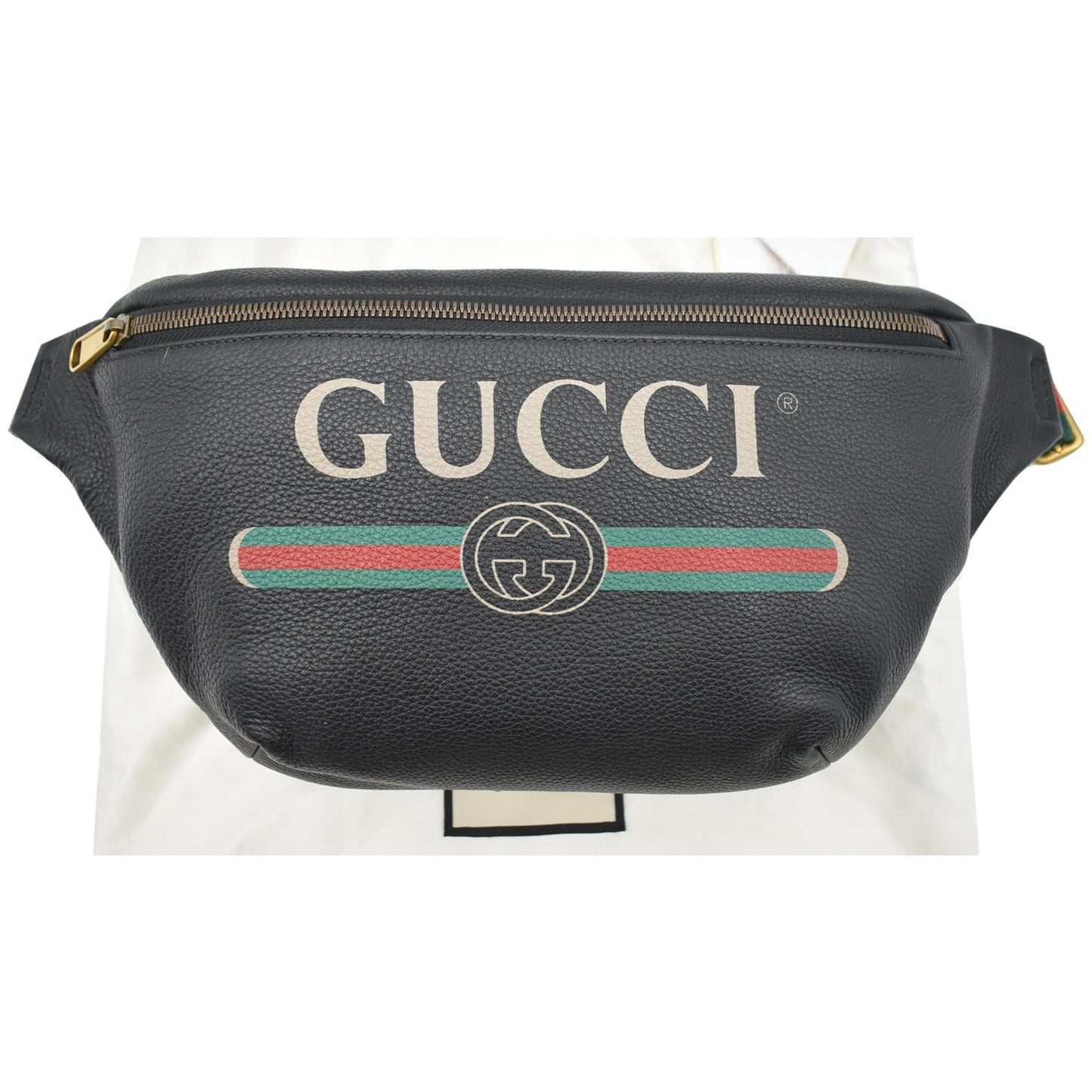 GUCCI Print Medium Leather Belt Waist Bum Bag Black 530412