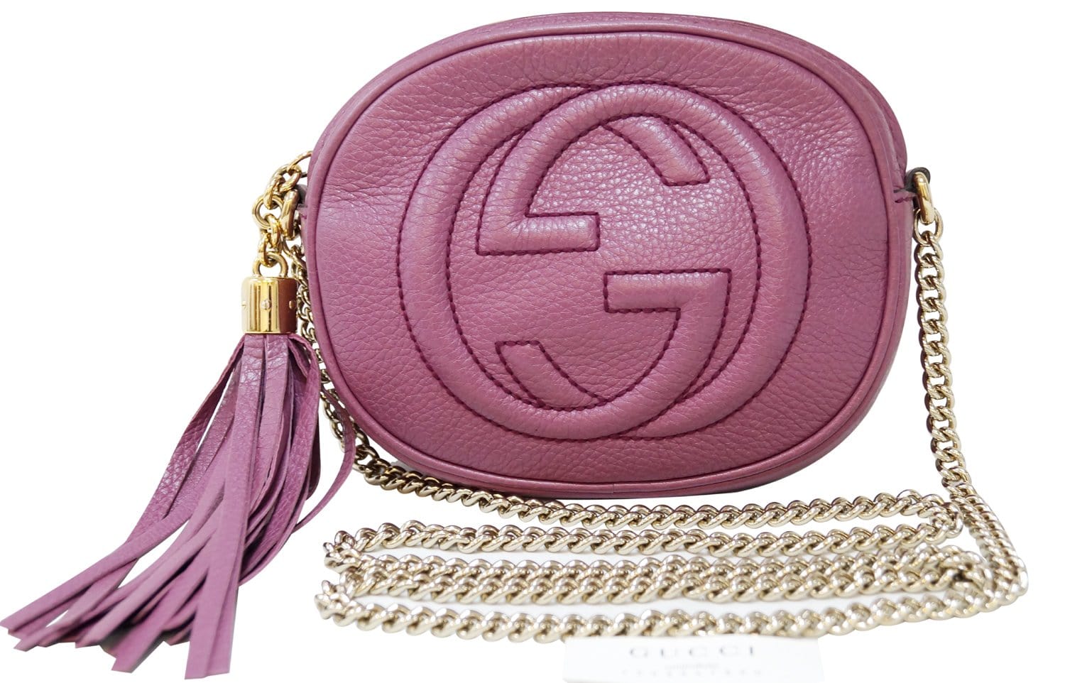 GUCCI Purple Leather Soho Disco Mini Chain Crossbody Bag