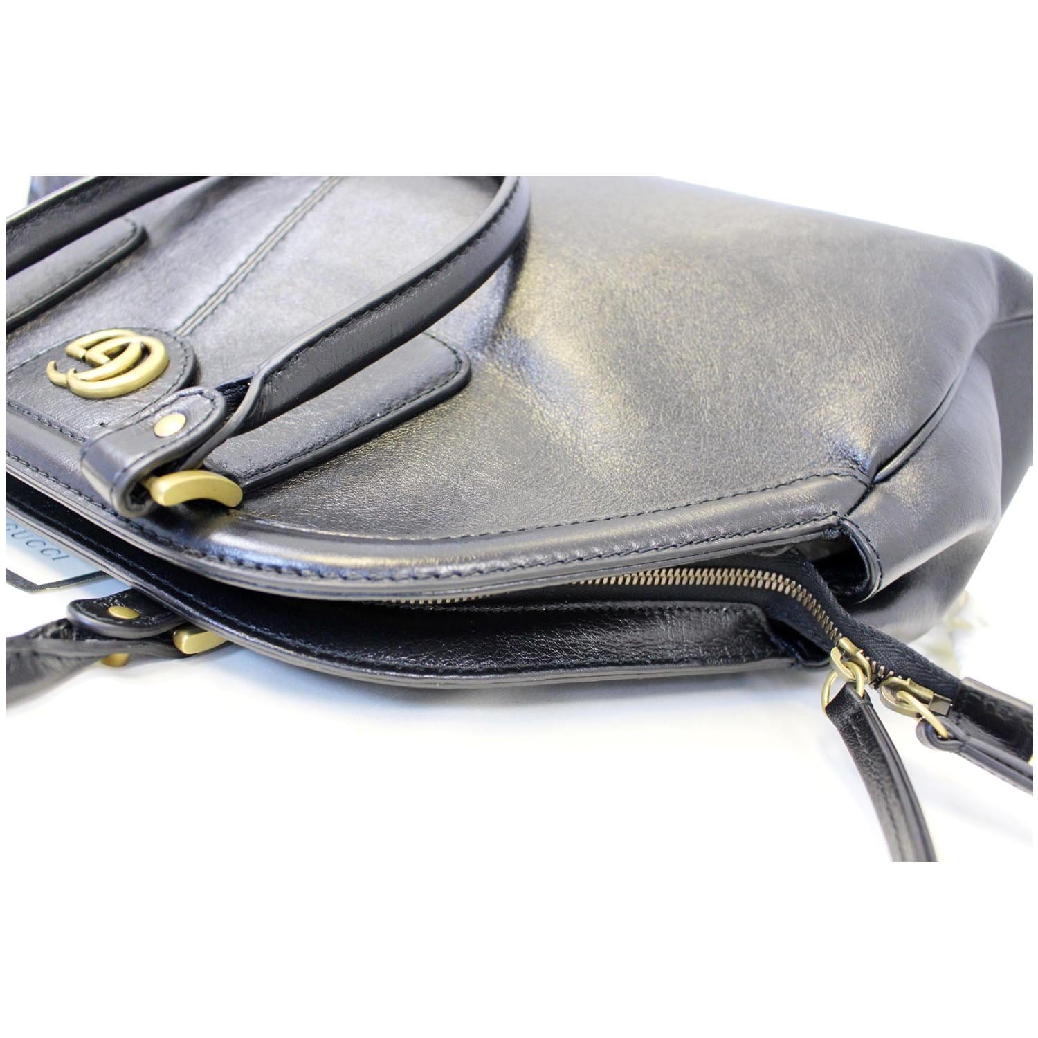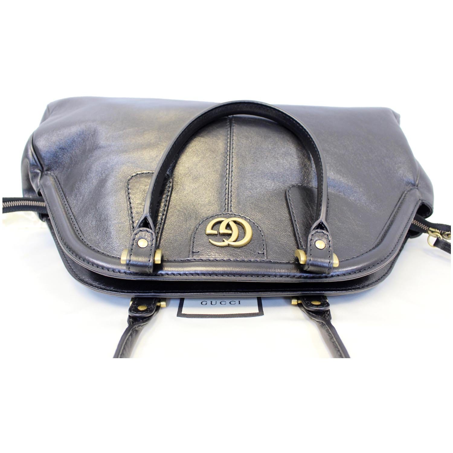 GUCCI Rebelle Top Handle Black Leather Satchel Handbag