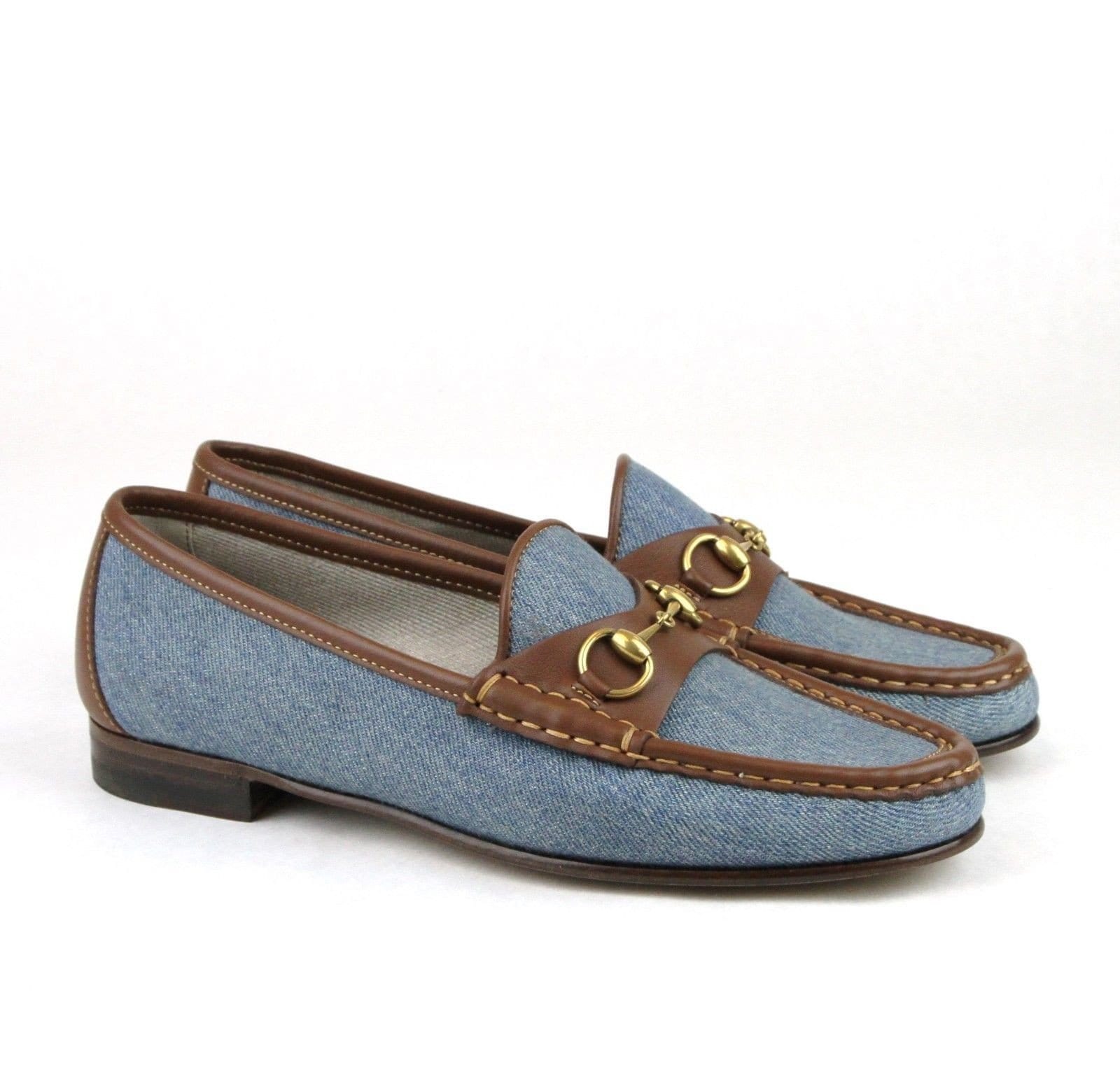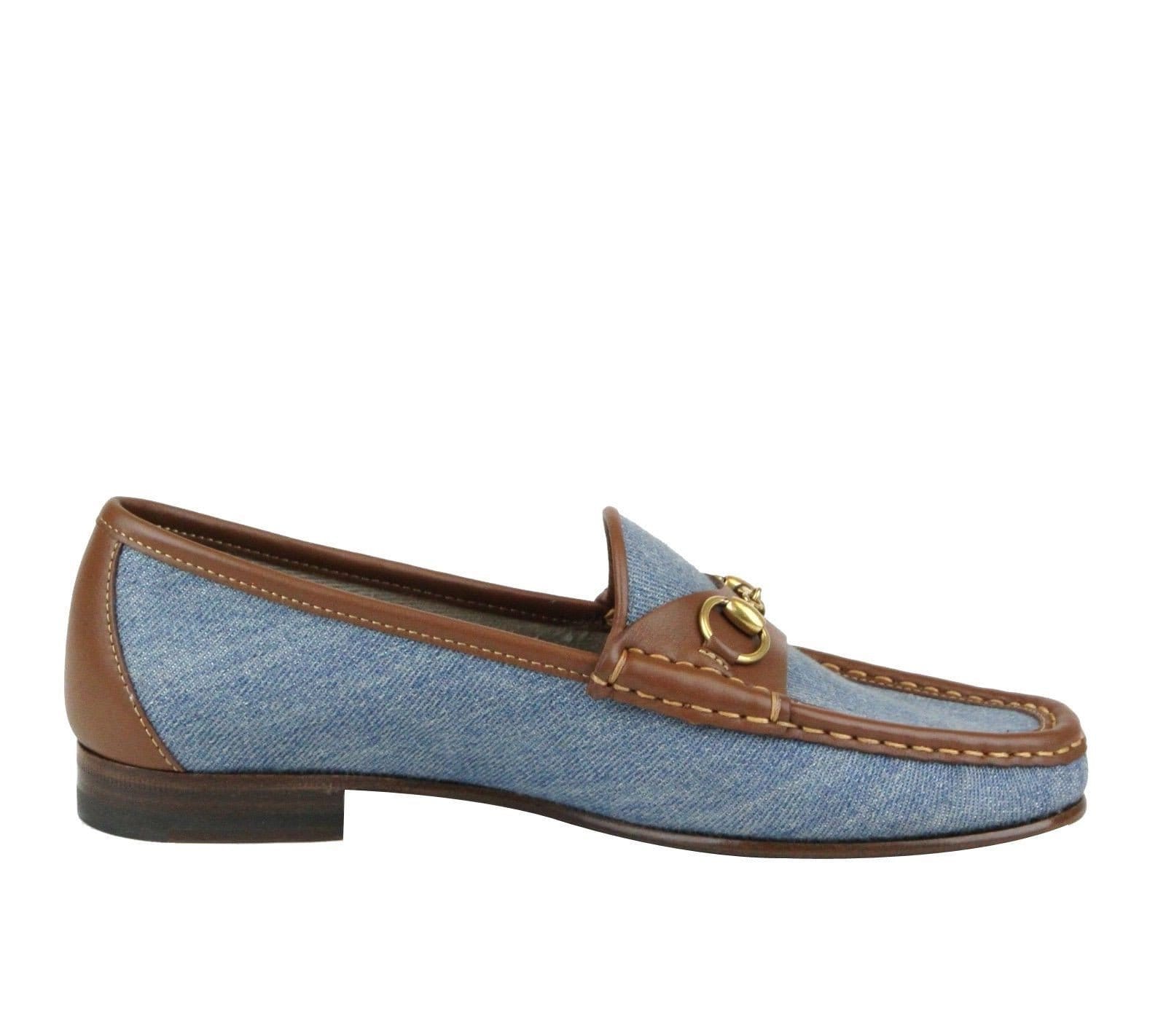 - 100% $625 Gucci 309717 Women's Blue Denim Loafer Horsebit Moccasins IT 37 / US 7