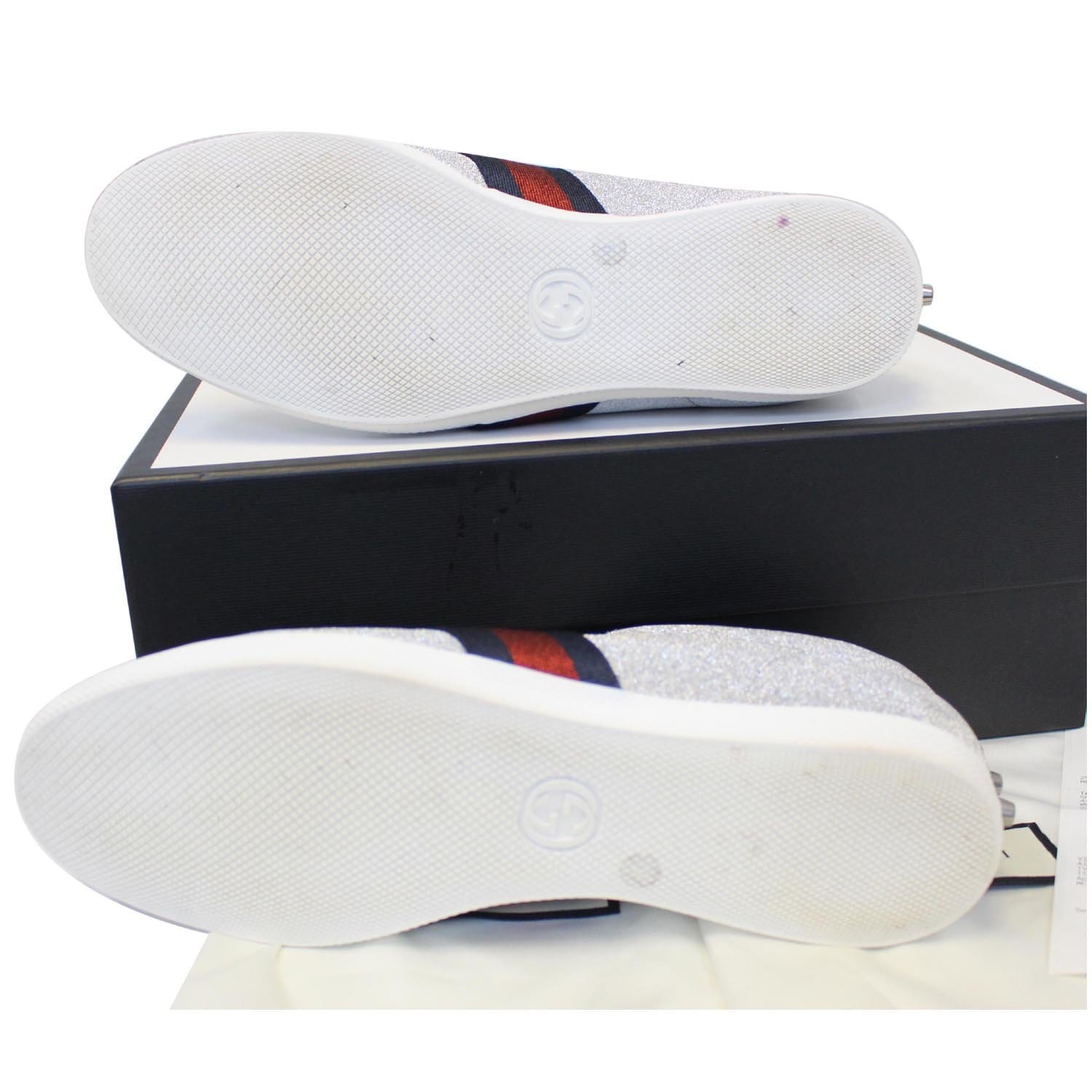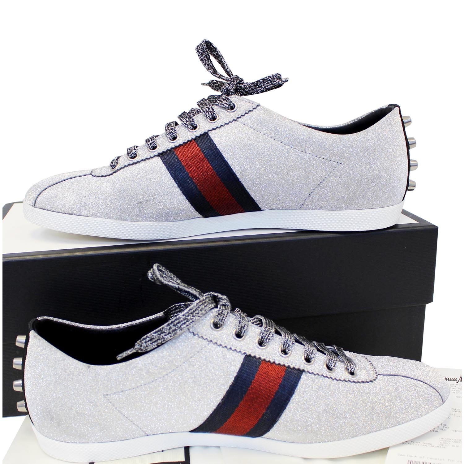 GUCCI Silver Glitter Web sneaker with Studs Size 11