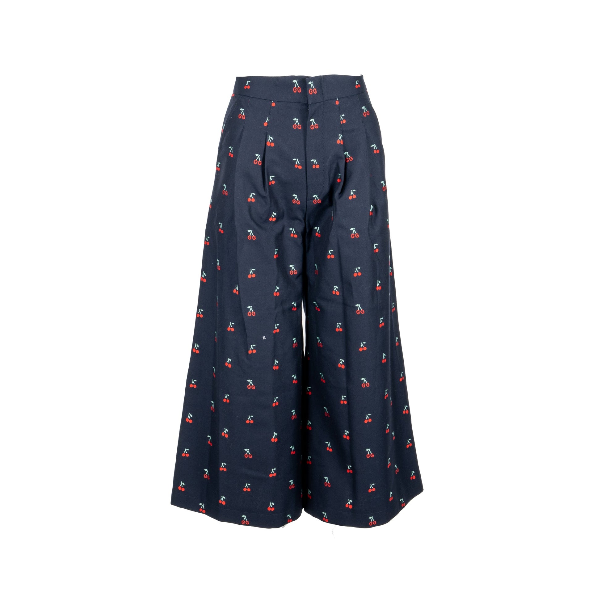 Gucci Size 36 Cherry Print Culotte Trouser Cotton/Wool Navy