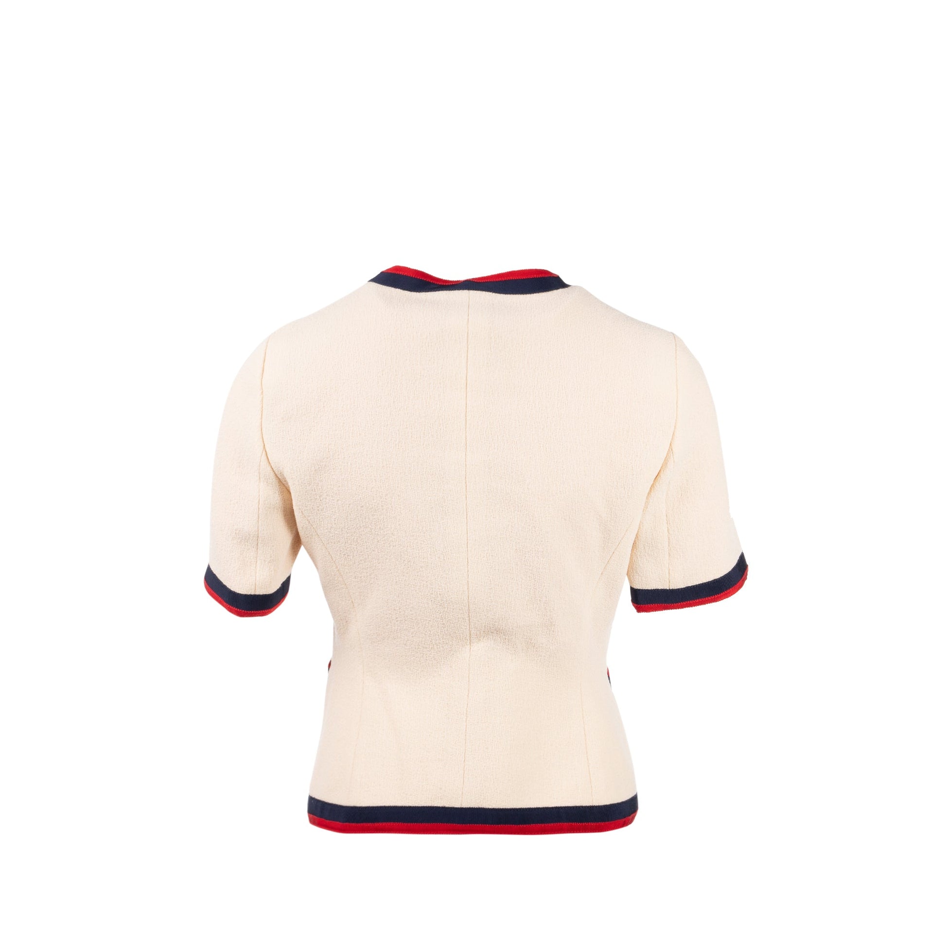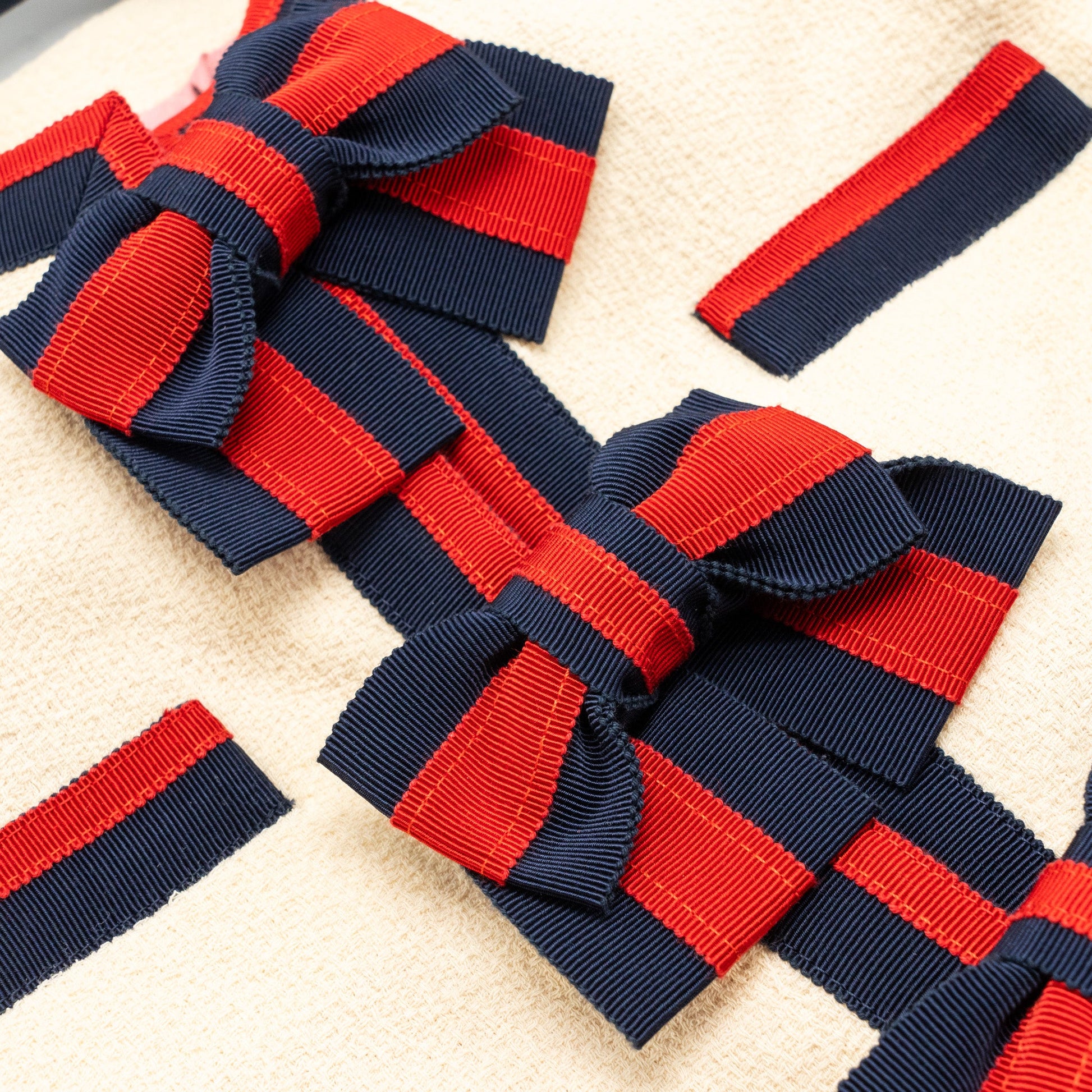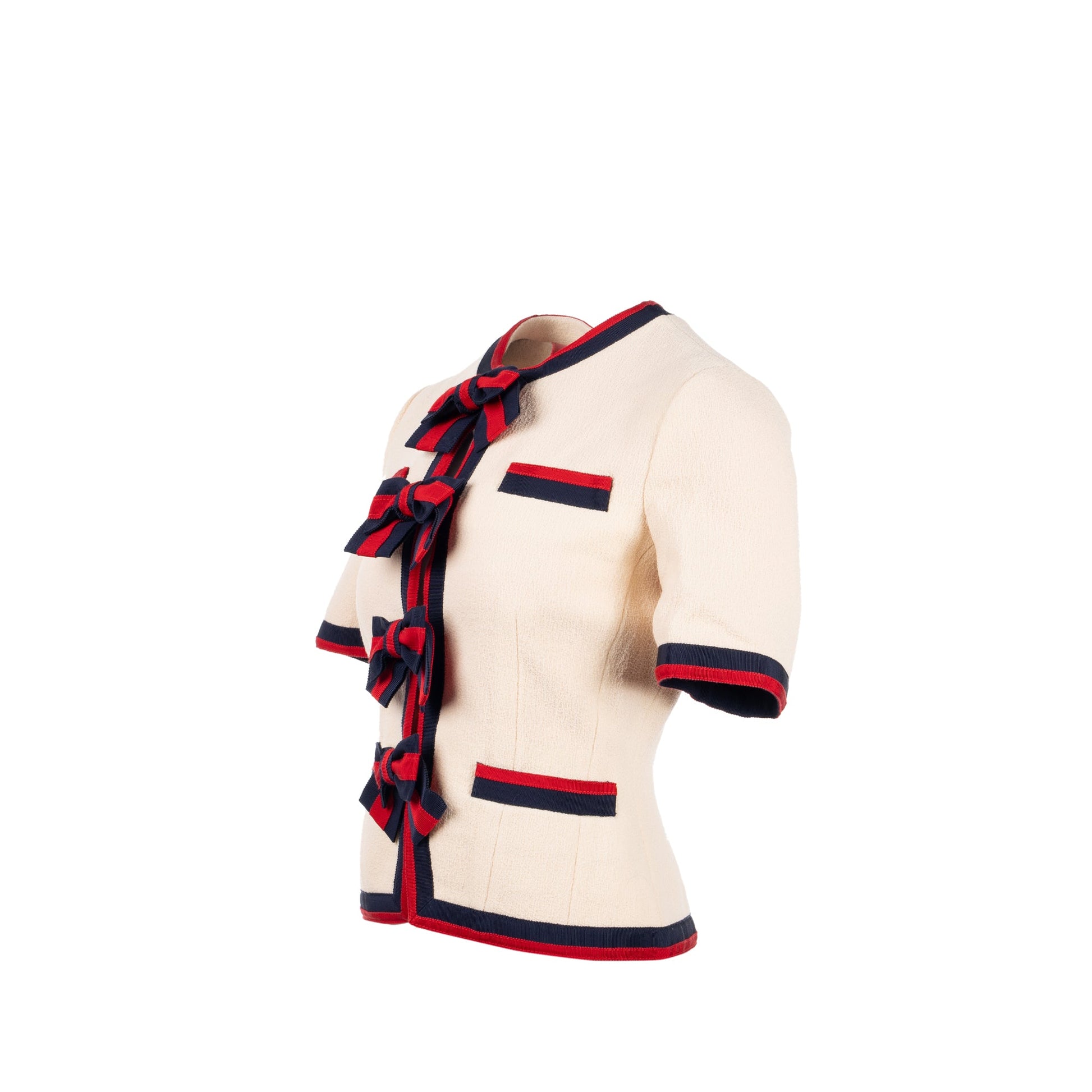 Gucci size 36 ribbon button mini jacket multicolour beige / navy/ red