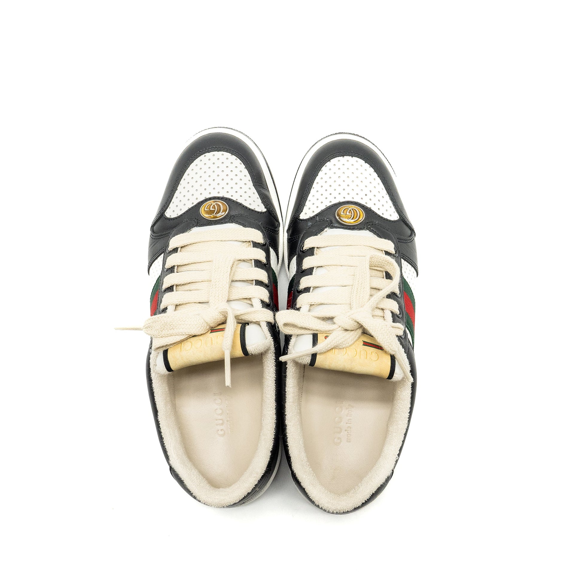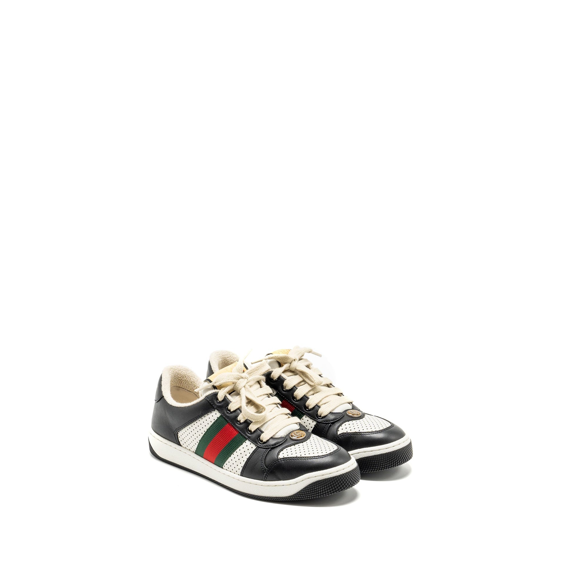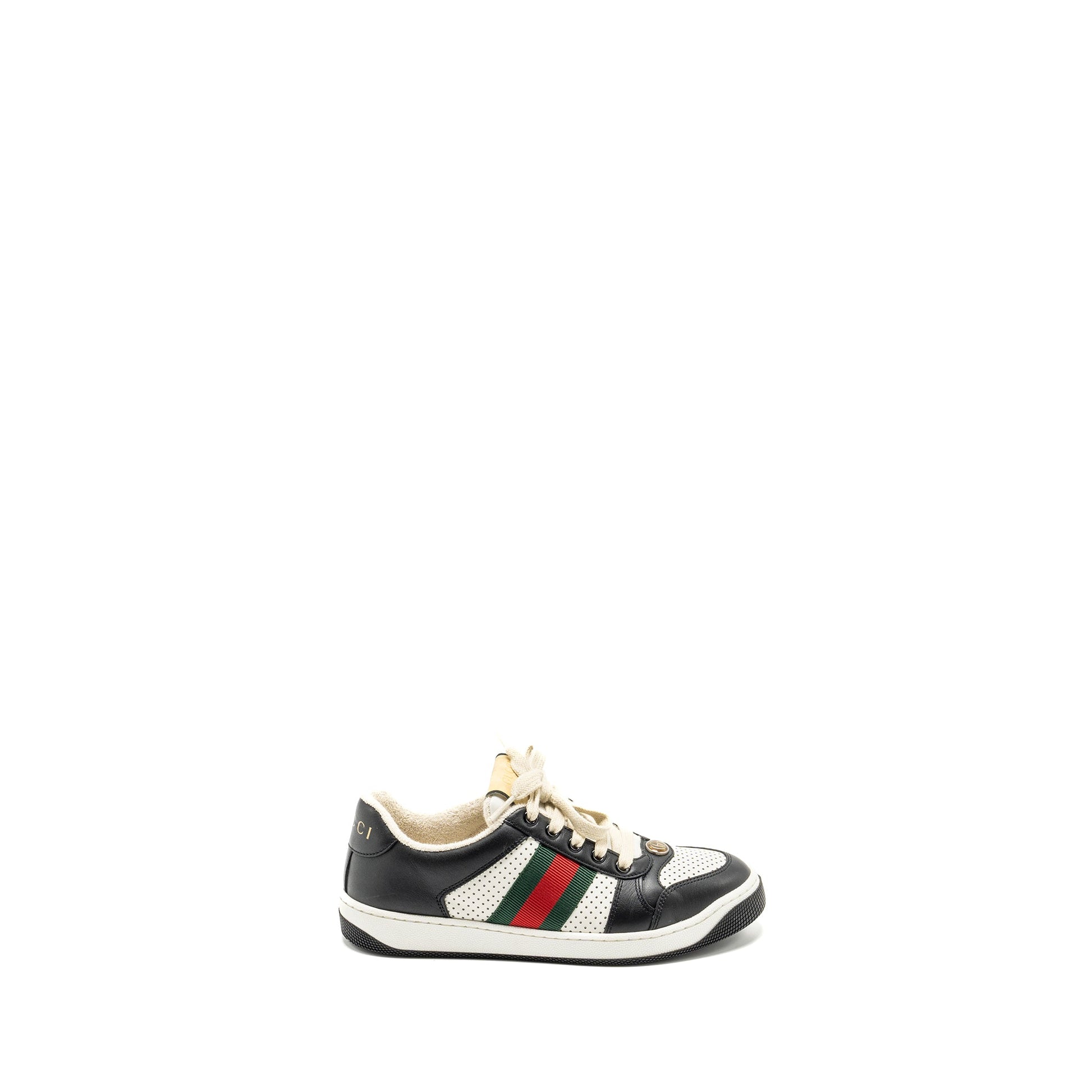 Gucci size 37.5 screener trainer sneaker black/white multicolour