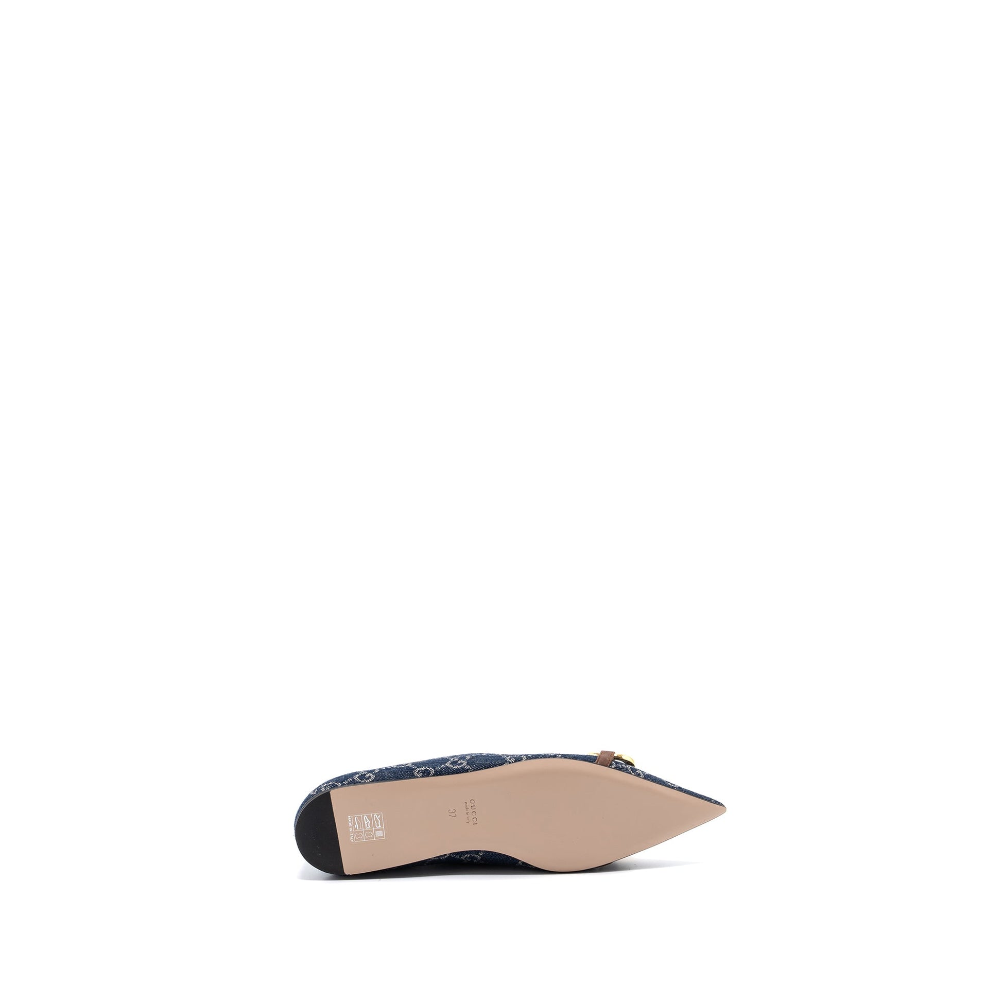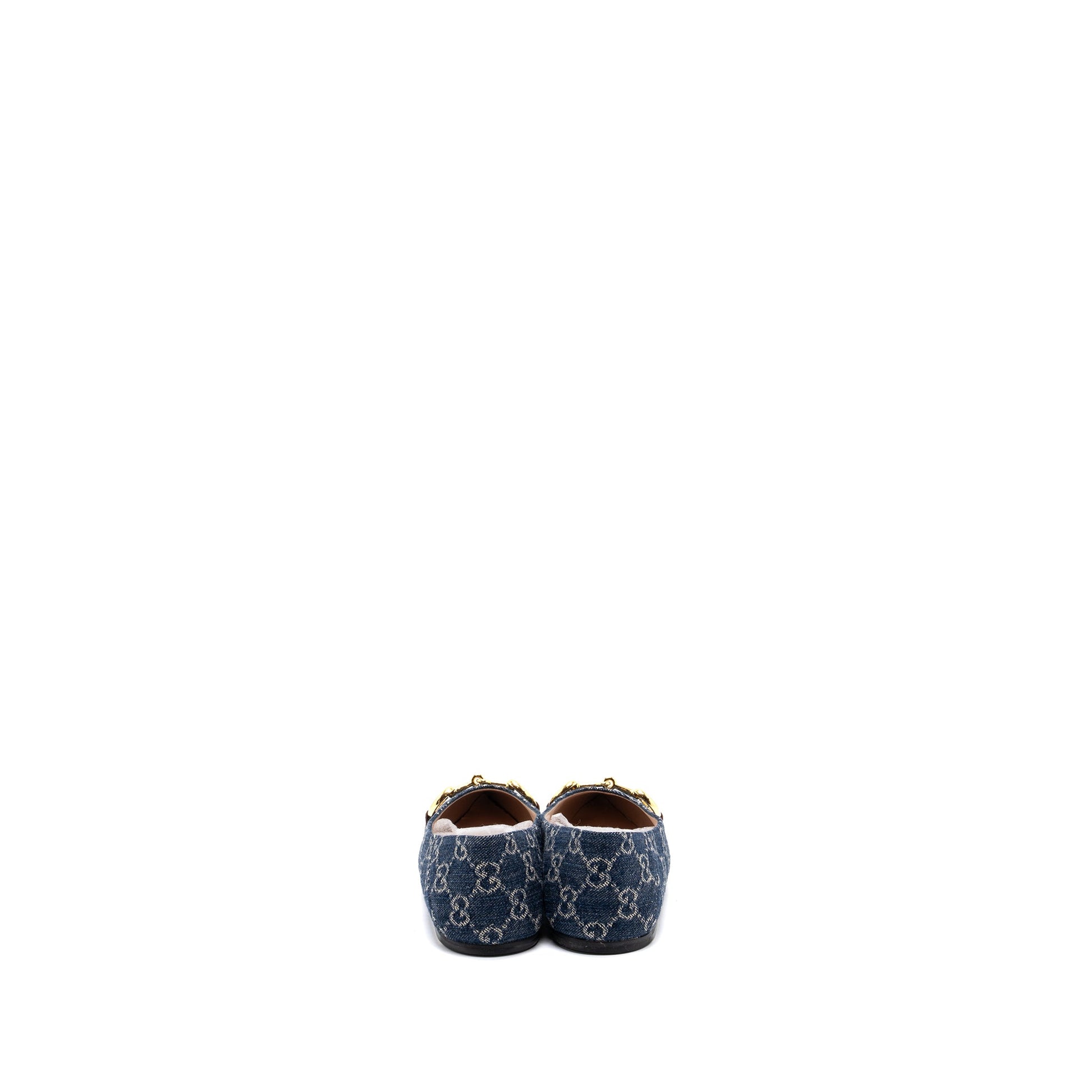 Gucci Size 37 GG Horsebit Ballerina Shoes GG Supreme Denim
