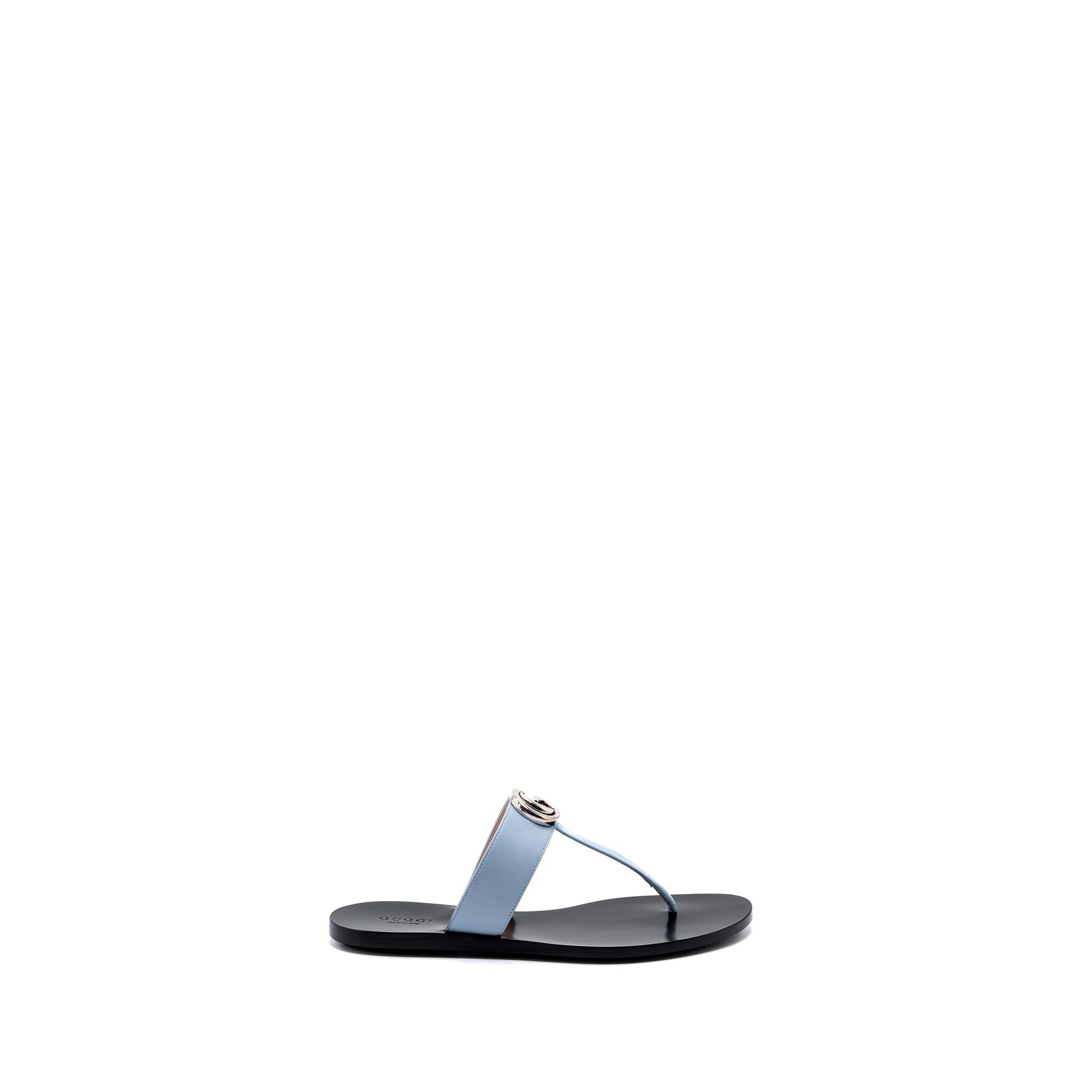 Gucci Size 37 Leather Thong Sandal With Double G Leather Light Blue SHW