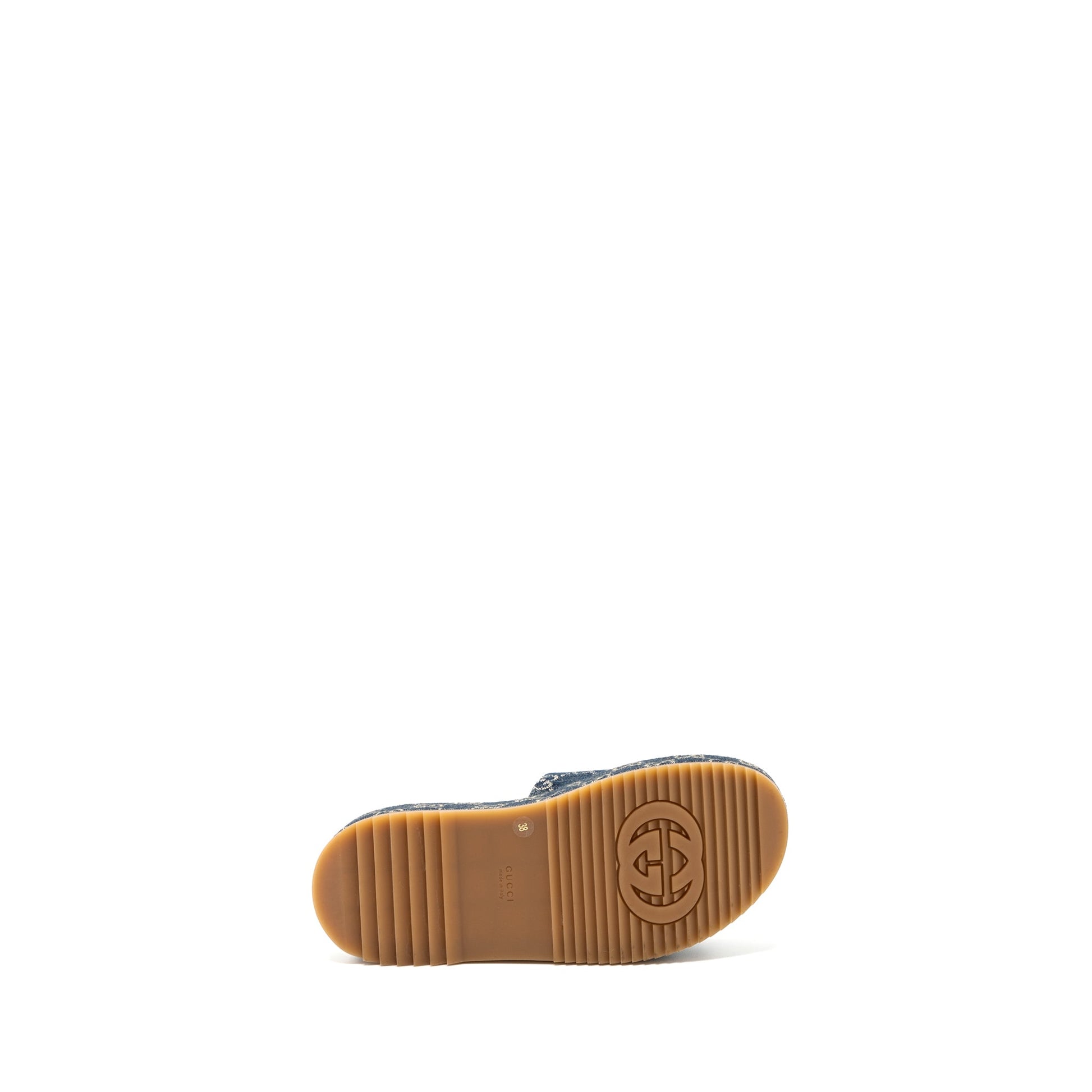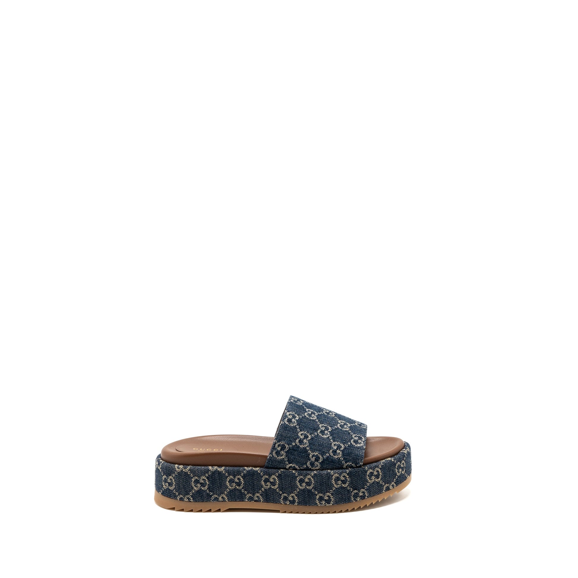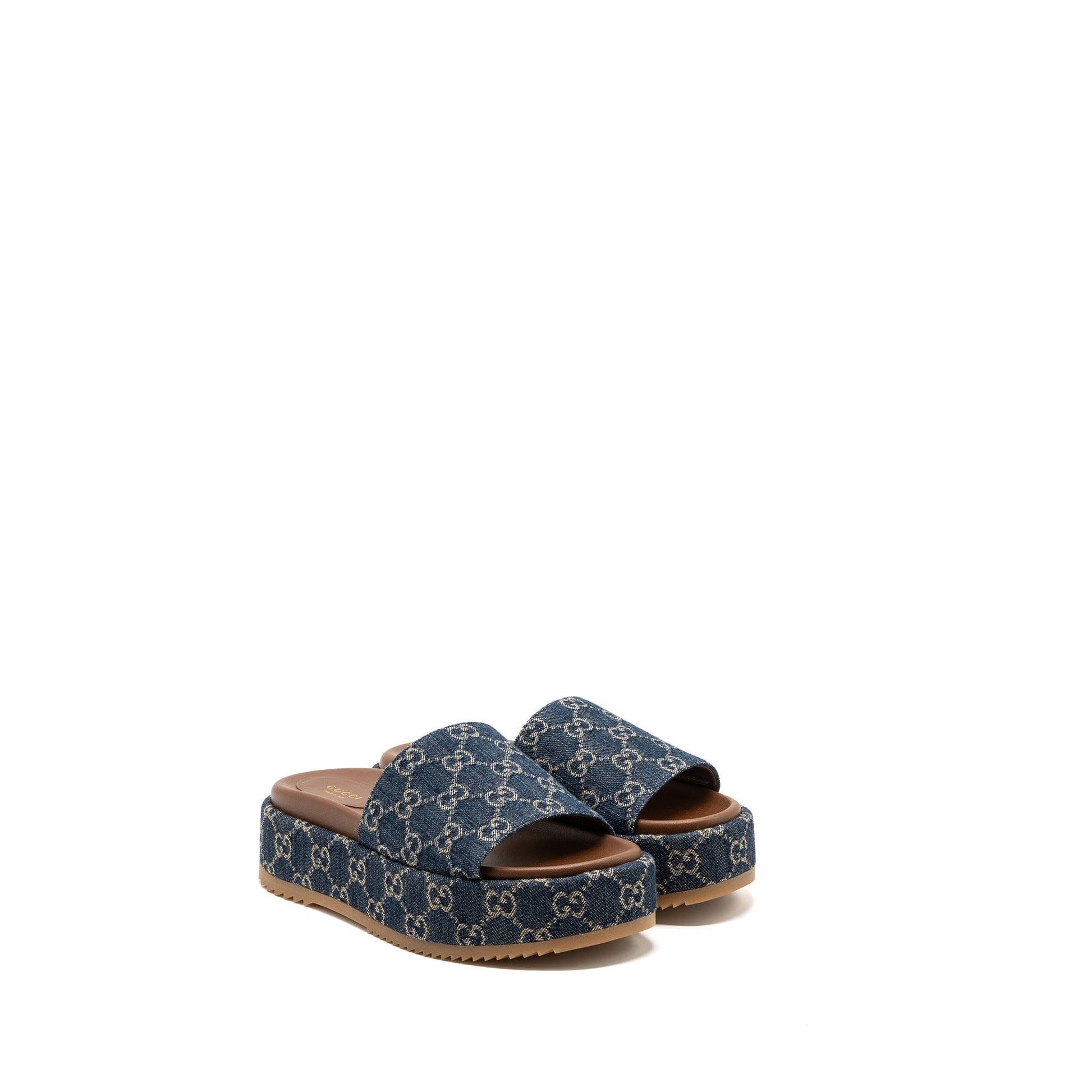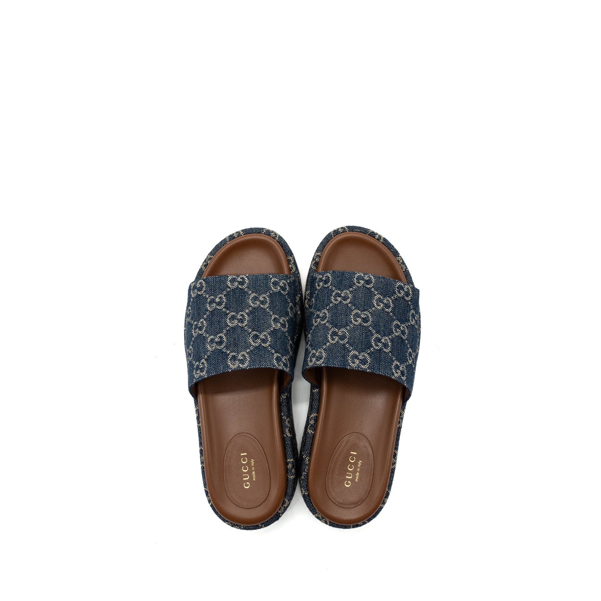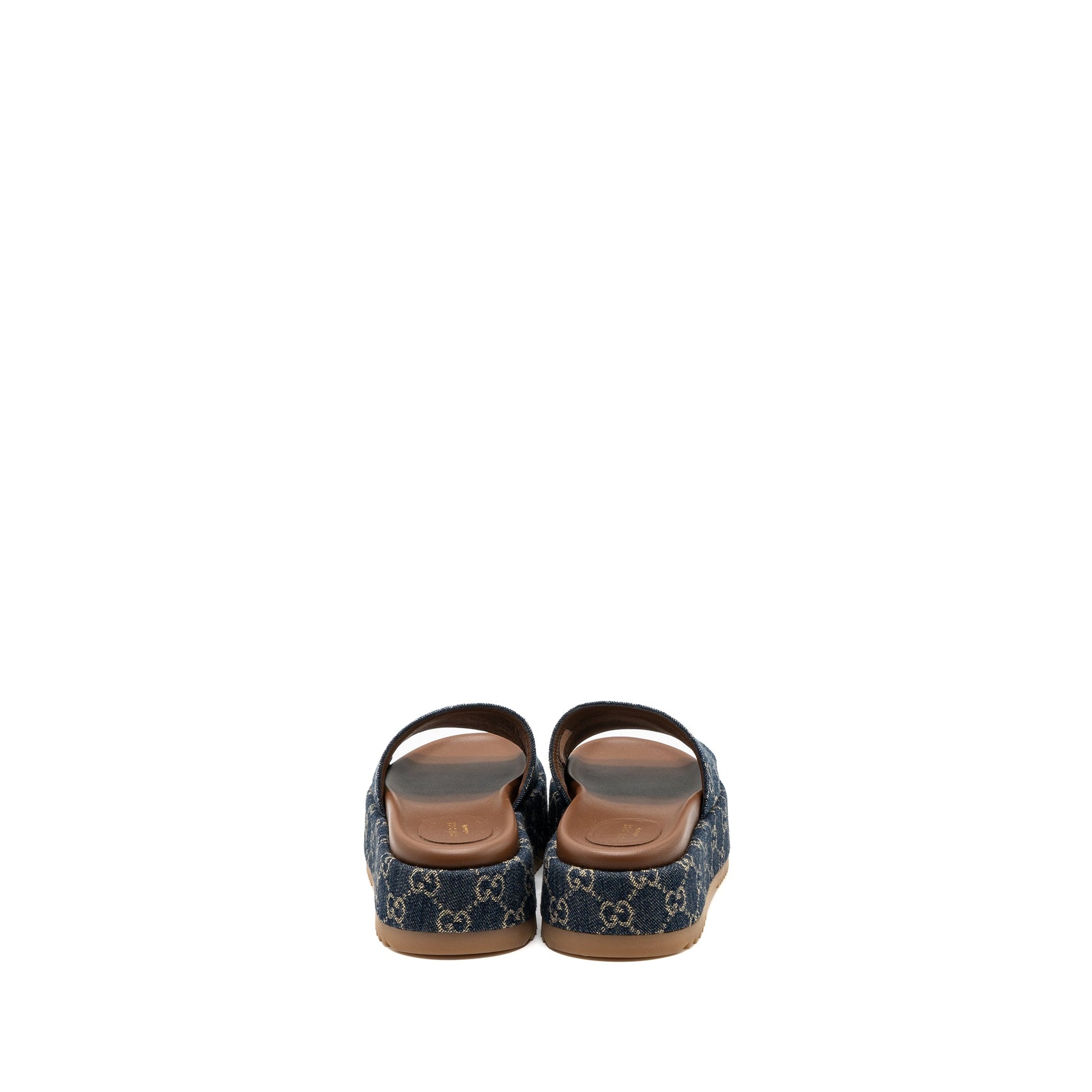 Gucci Size 38 Platform Slide Sandals GG Supreme Blue Denim