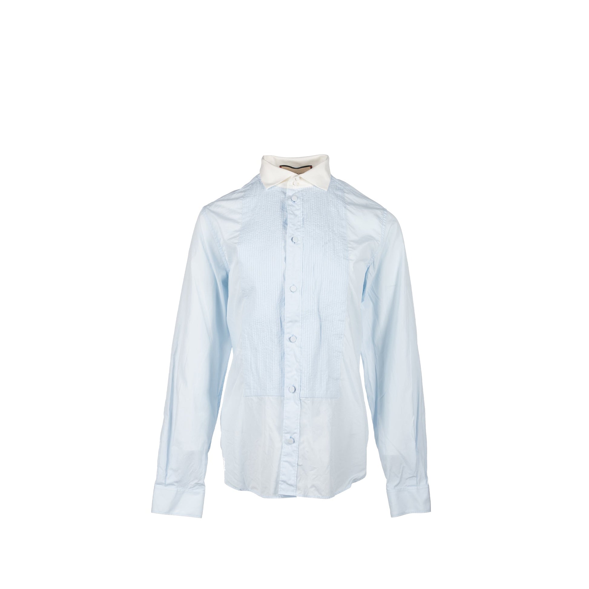 Gucci Size 38 Tuxedo Shirt Cotton Light Blue