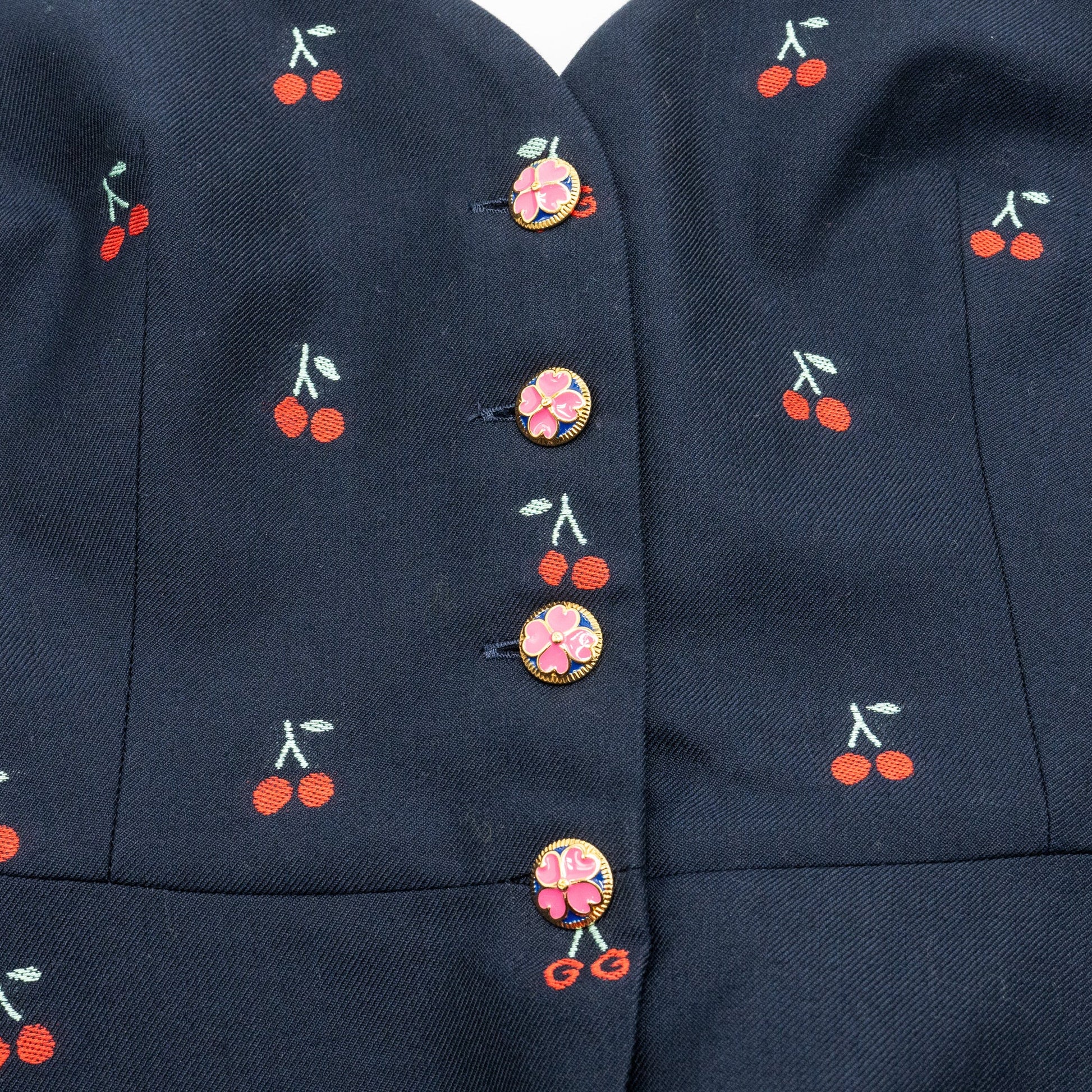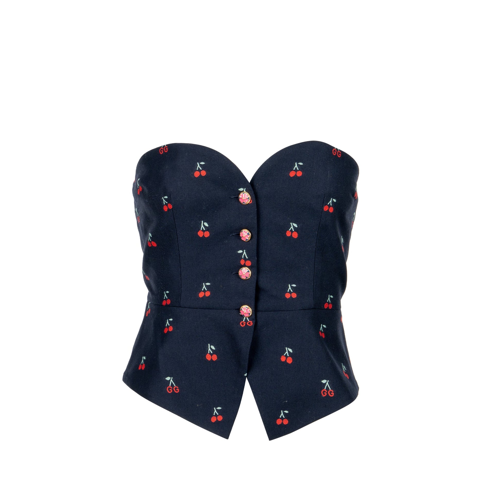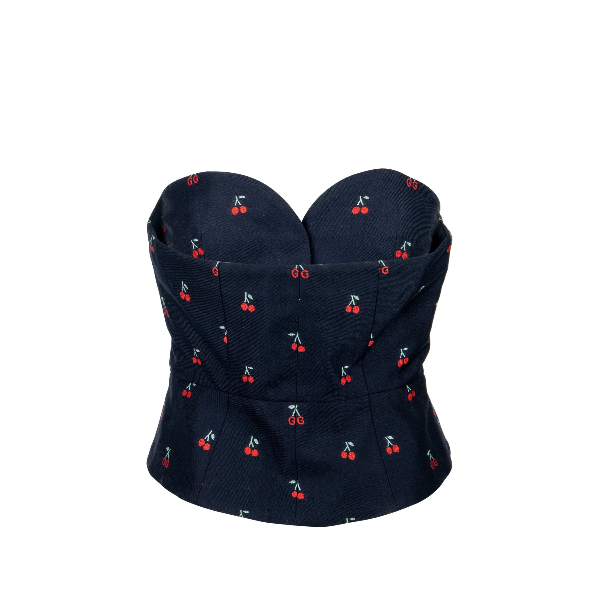 Gucci Size 40 Cherry Print Tube Top Cotton/Wool Navy