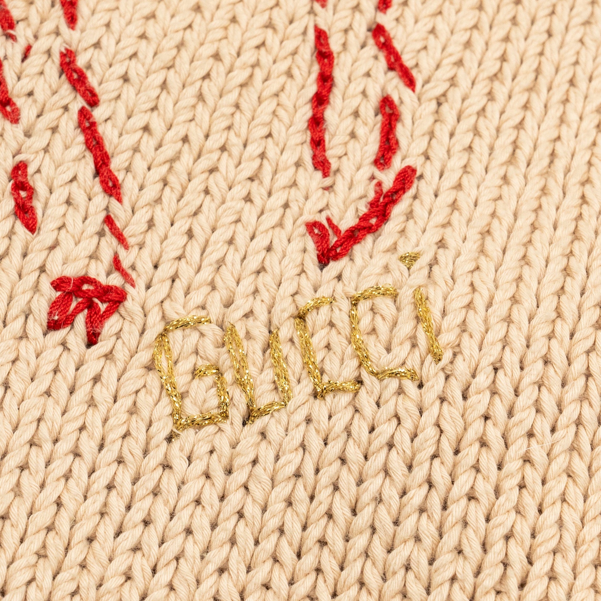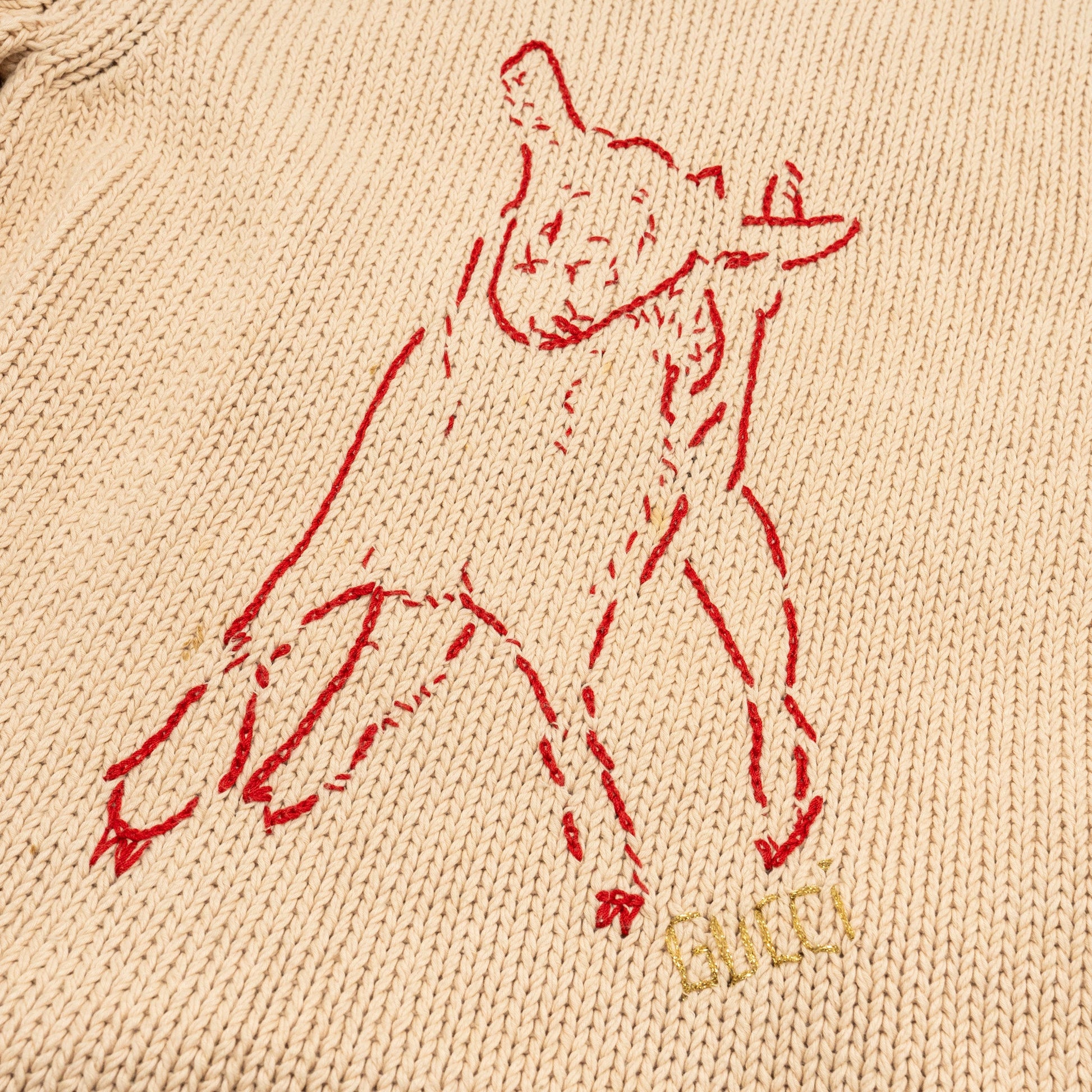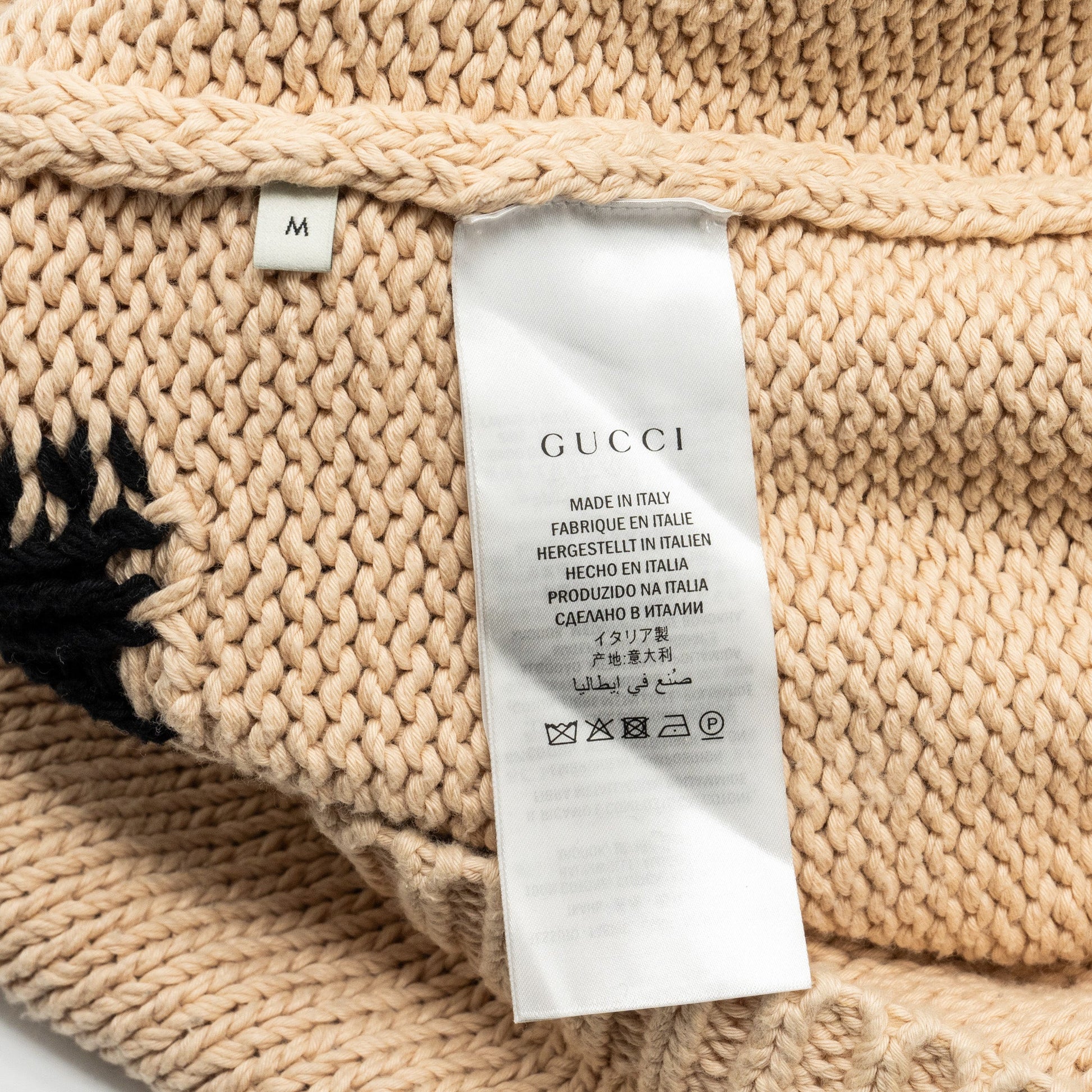 Gucci Size M Animal Magnetism Intarsia Knit Ribbed Cotton Sweater Beige