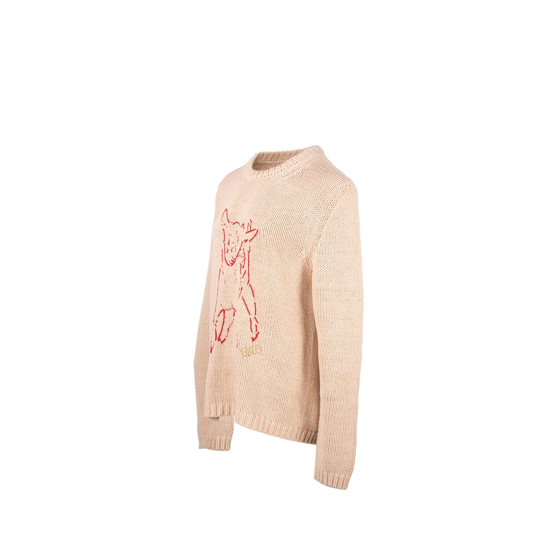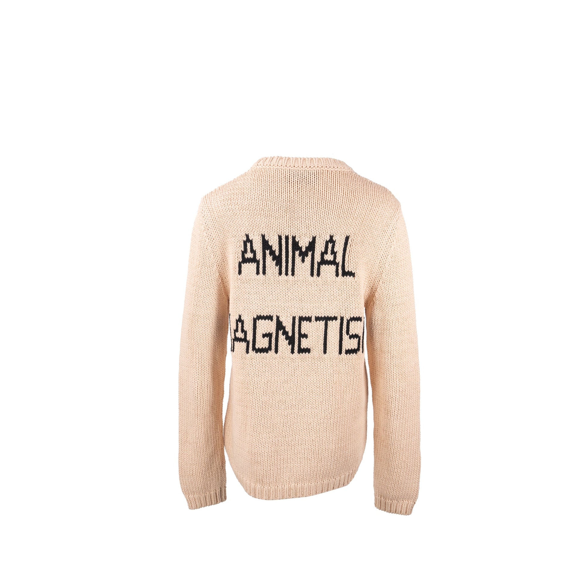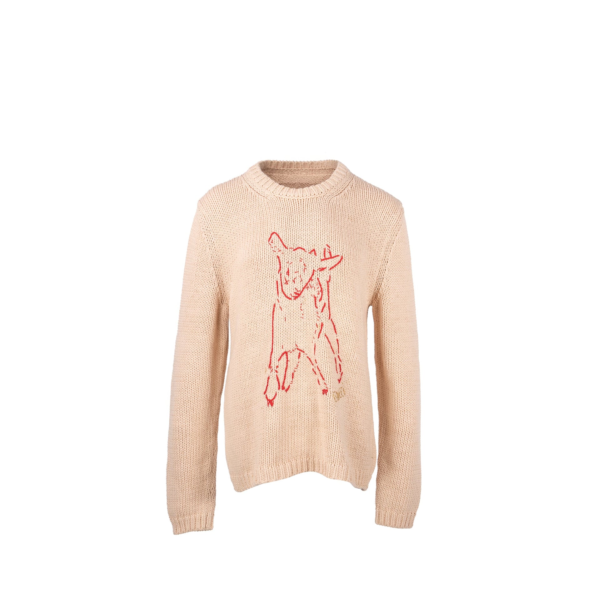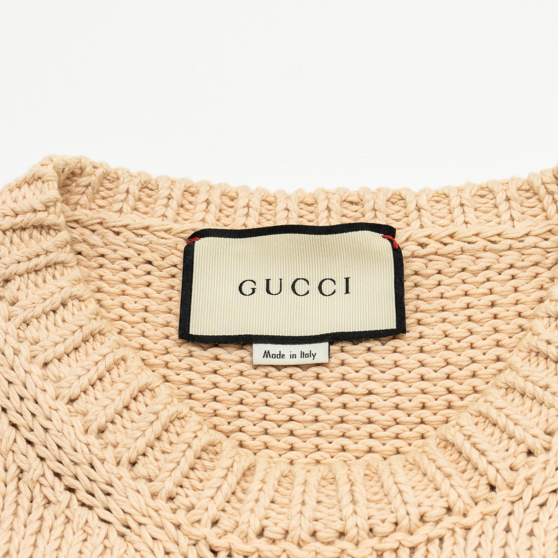 Gucci Size M Animal Magnetism Intarsia Knit Ribbed Cotton Sweater Beige