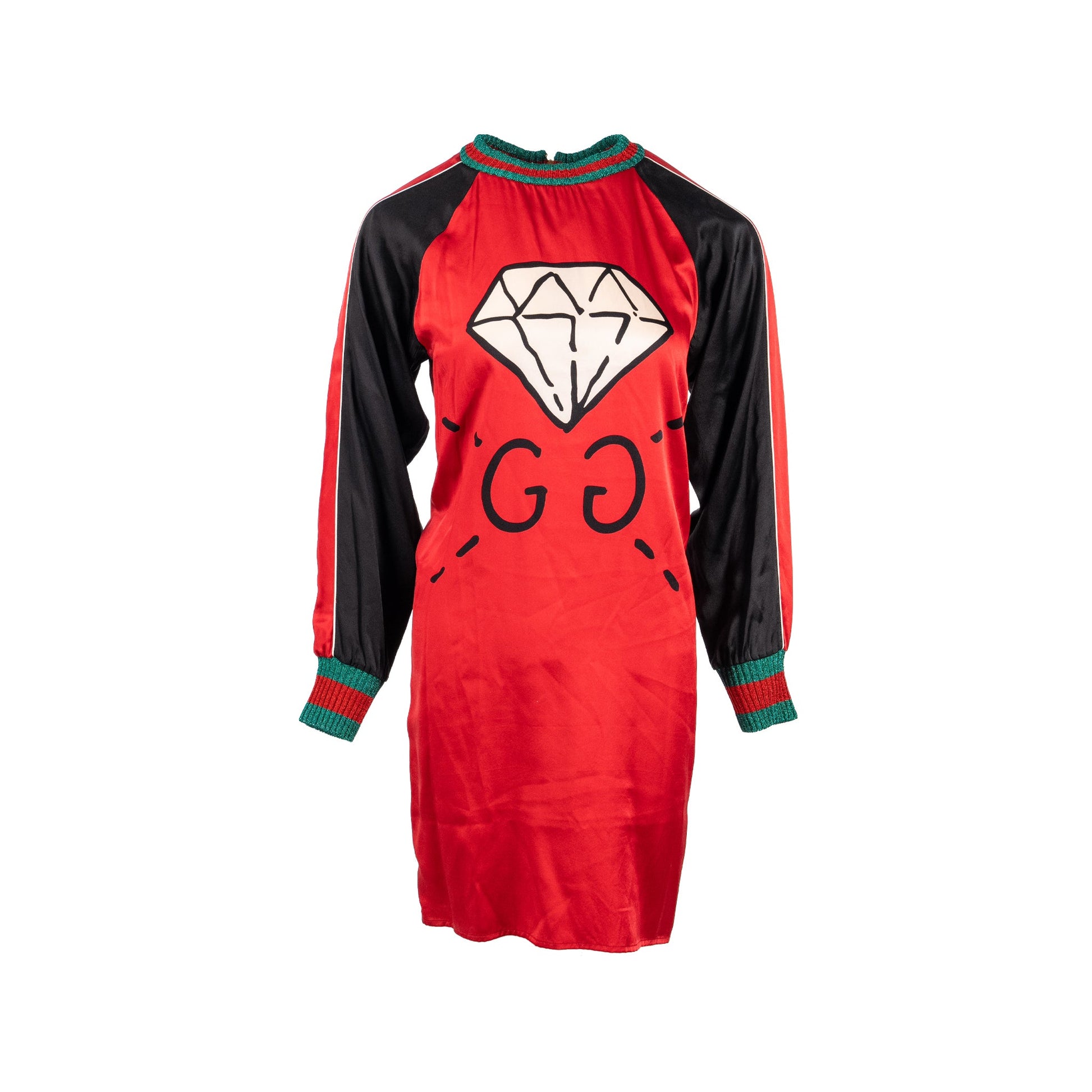 Gucci Size S Ghost Diamond Dress Silk Black/Red/White