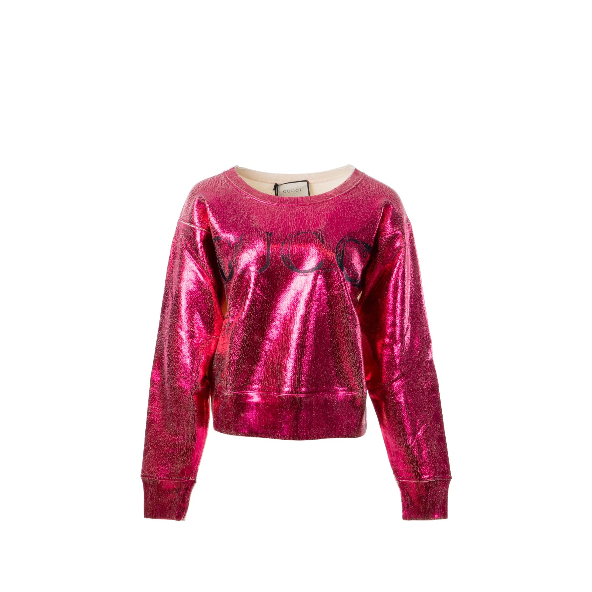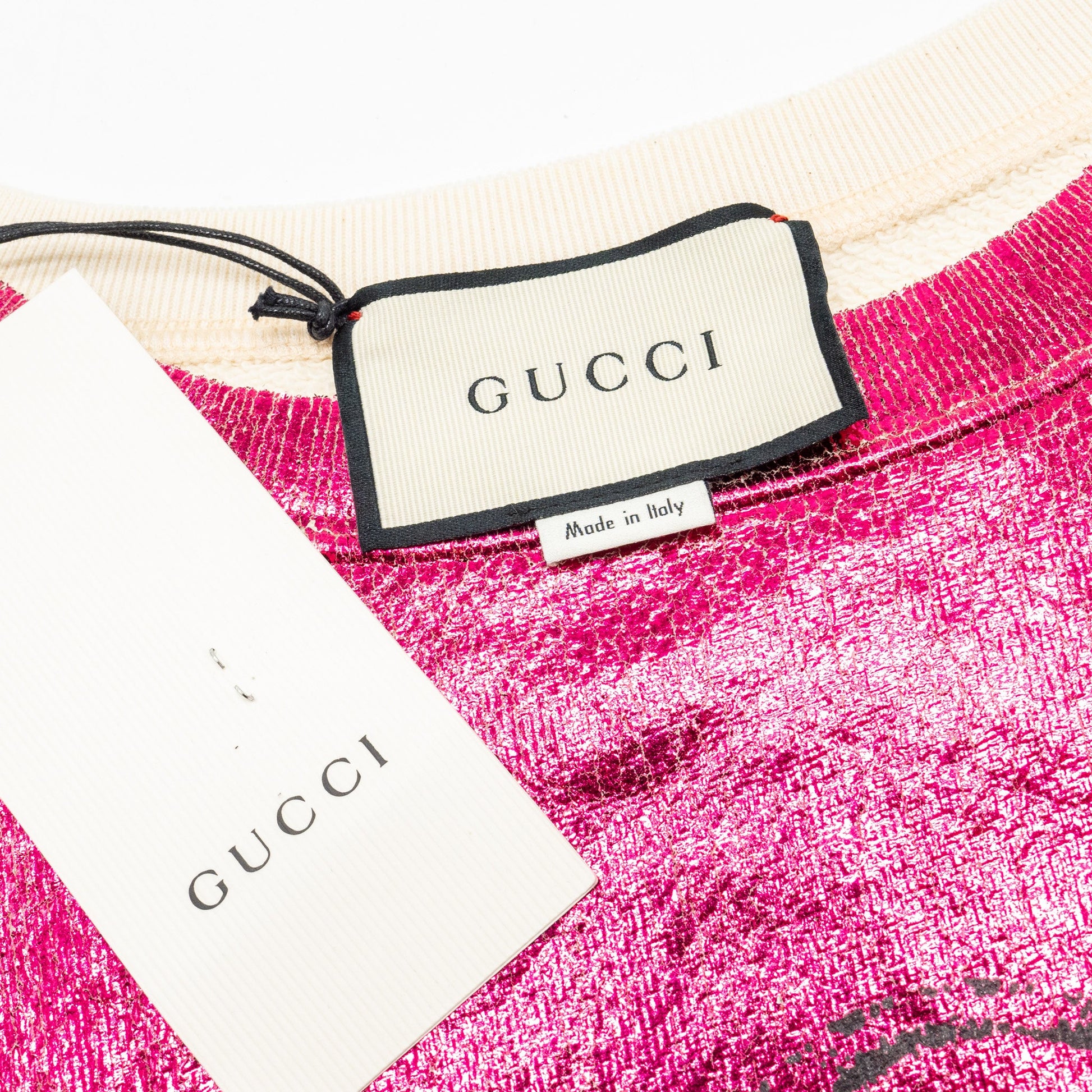 Gucci Size S Gucci Print and Blind for Love Embroidered Sweatshirt Cotton Metallic Dark Pink/White
