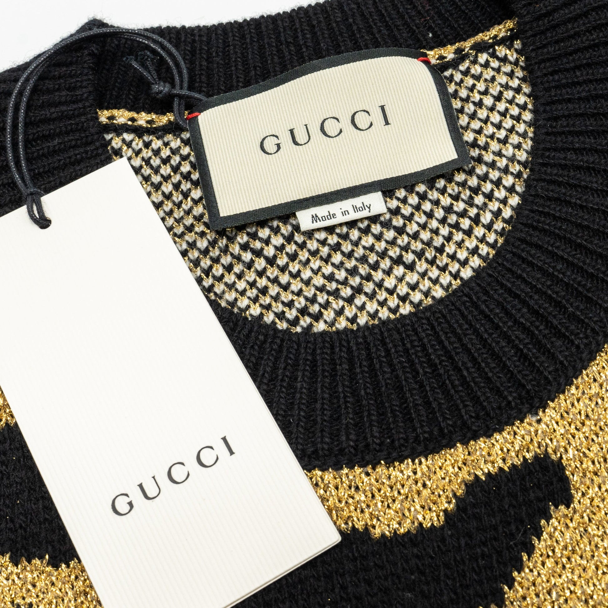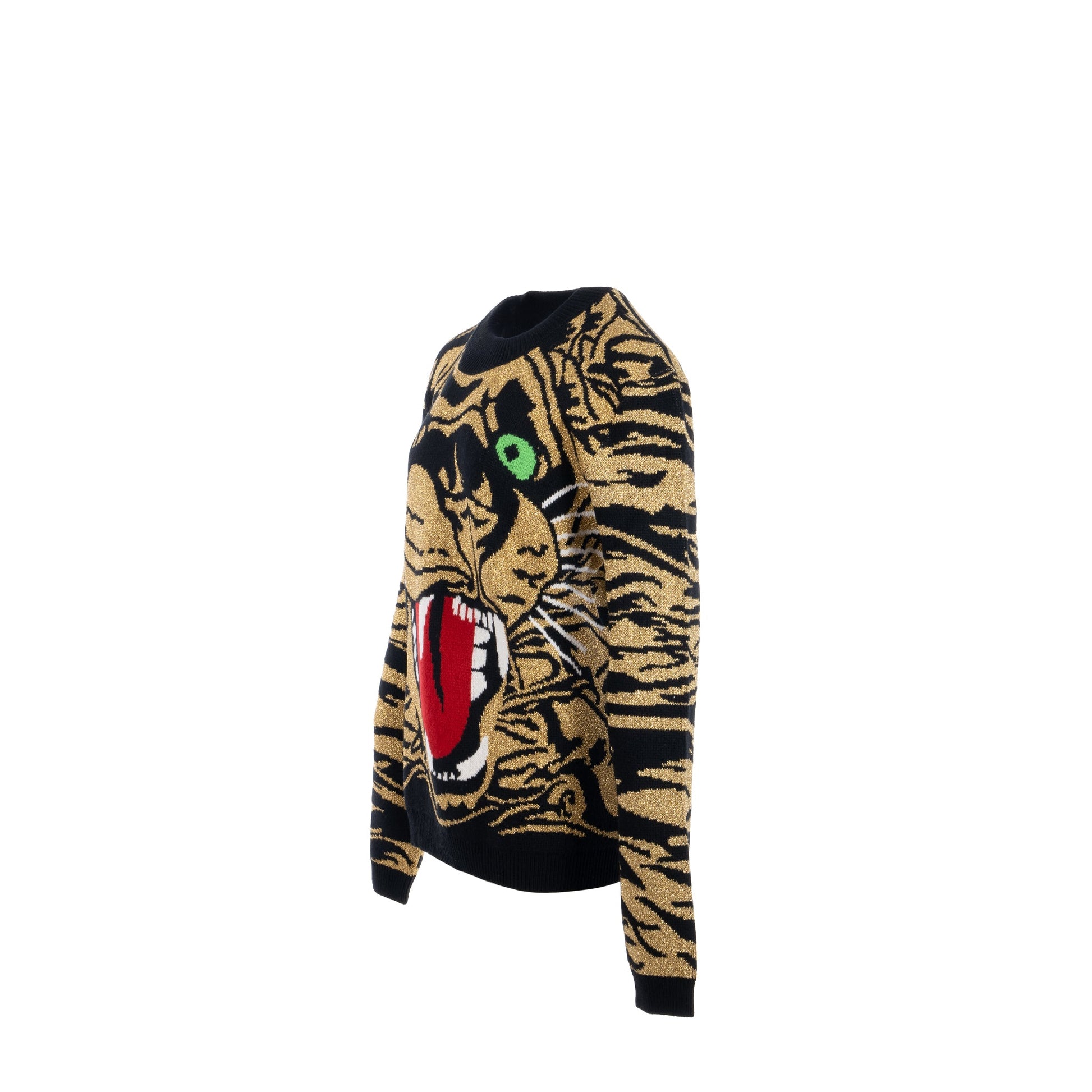 Gucci Size S Jacquard Tiger Sweater Wool/Metallised Fiber Gold/Black/Green
