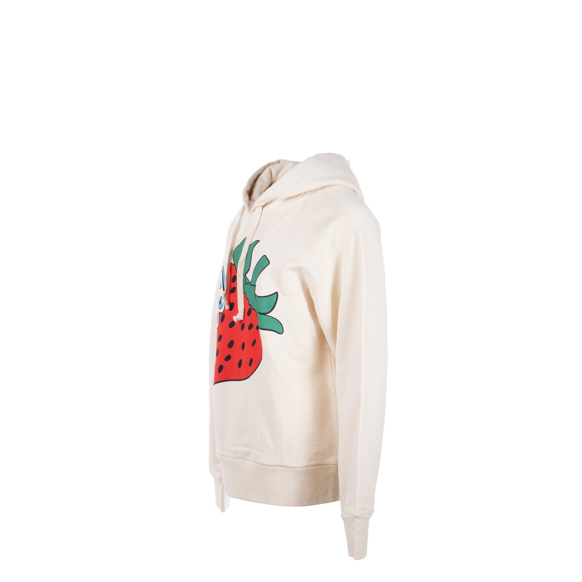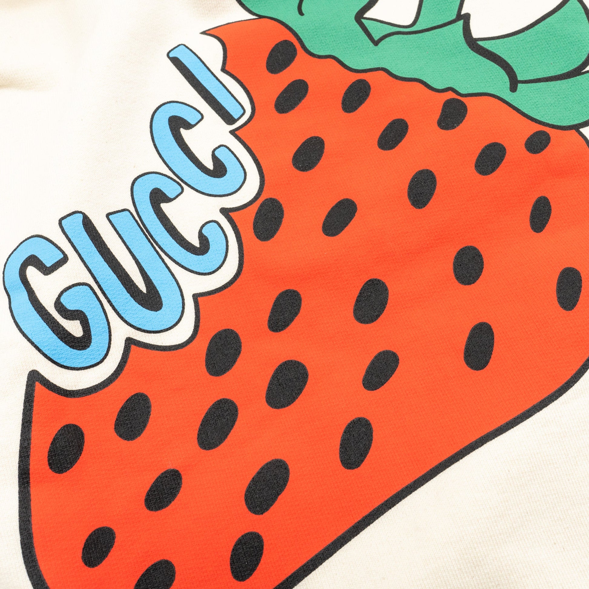 Gucci Size S Strawberry Printed Hoodie Cotton White/Multicolour