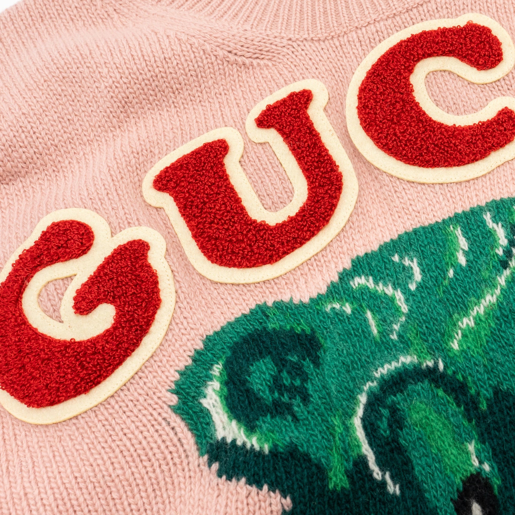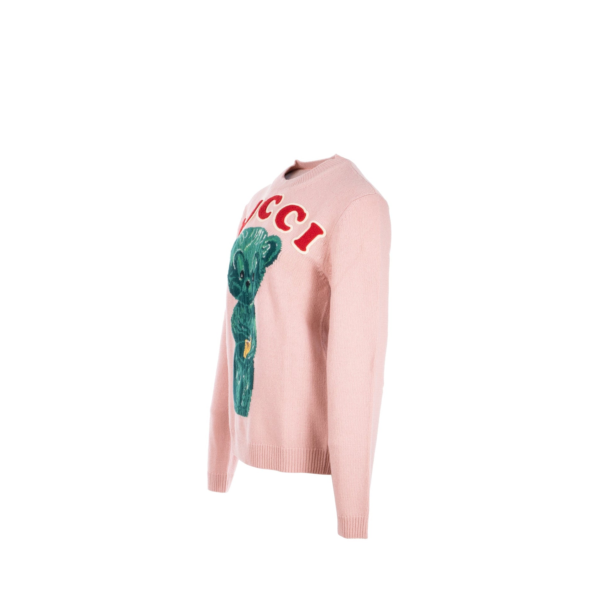 Gucci Size S Teddy Bear Sweater with Terrycloth Gucci Patch Wool Rose