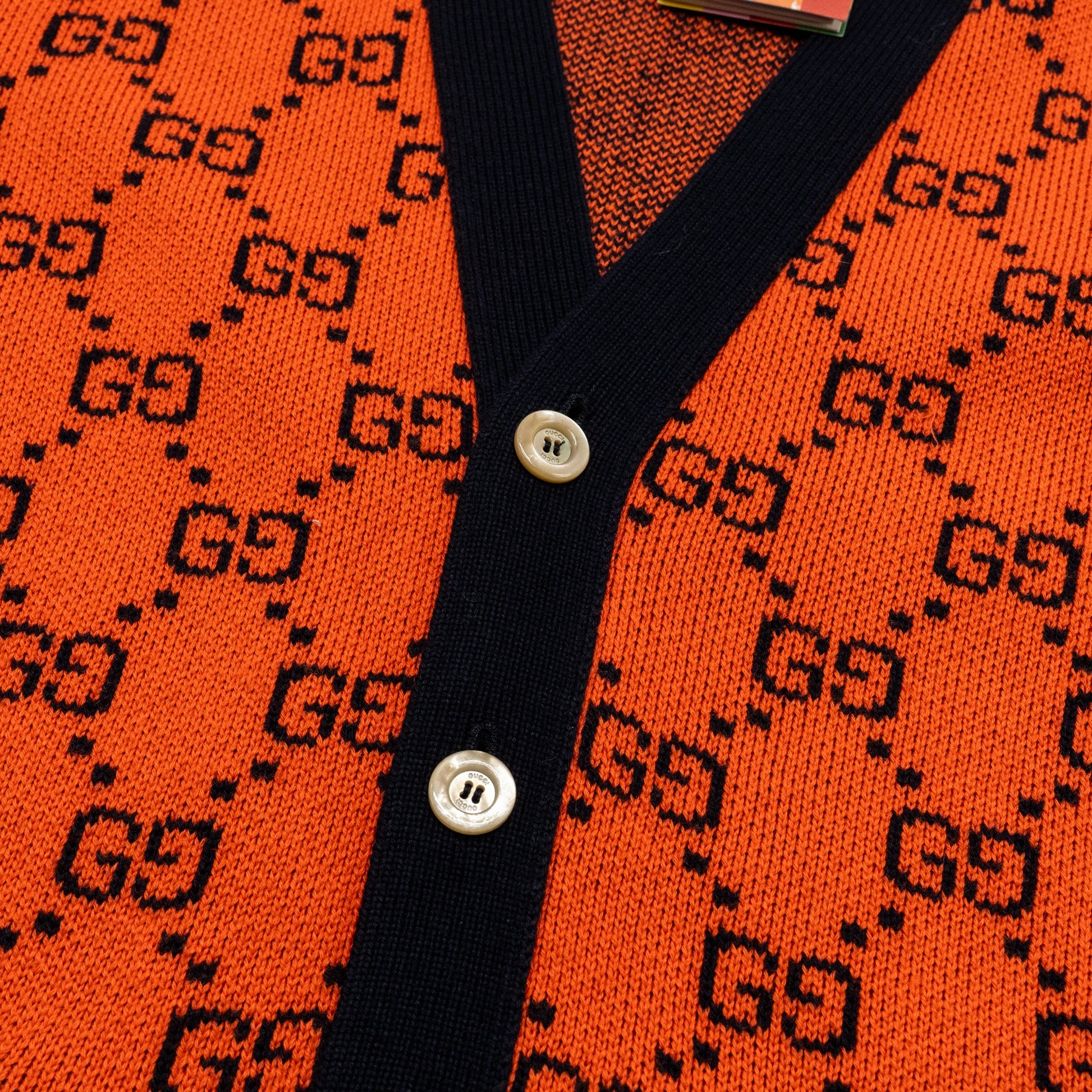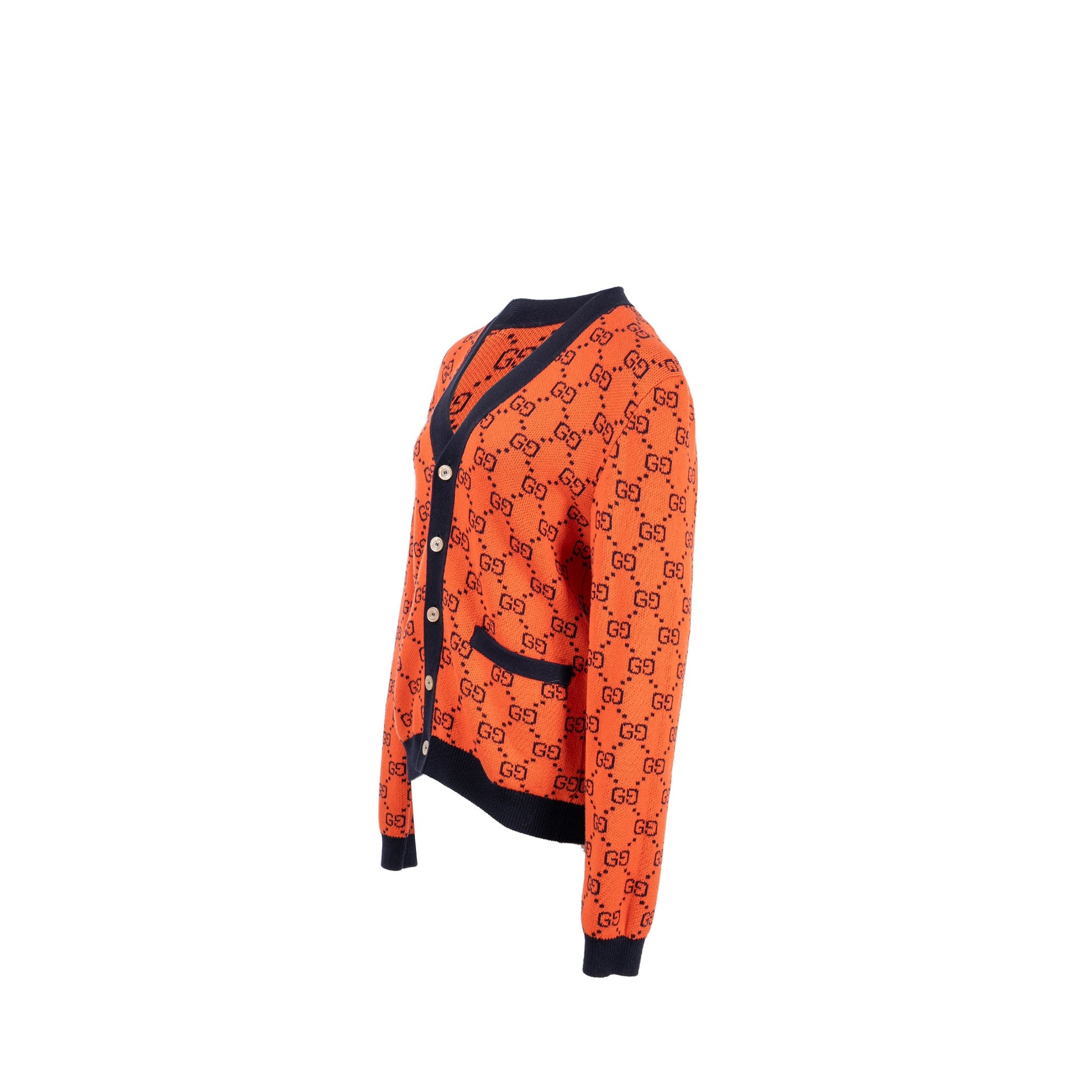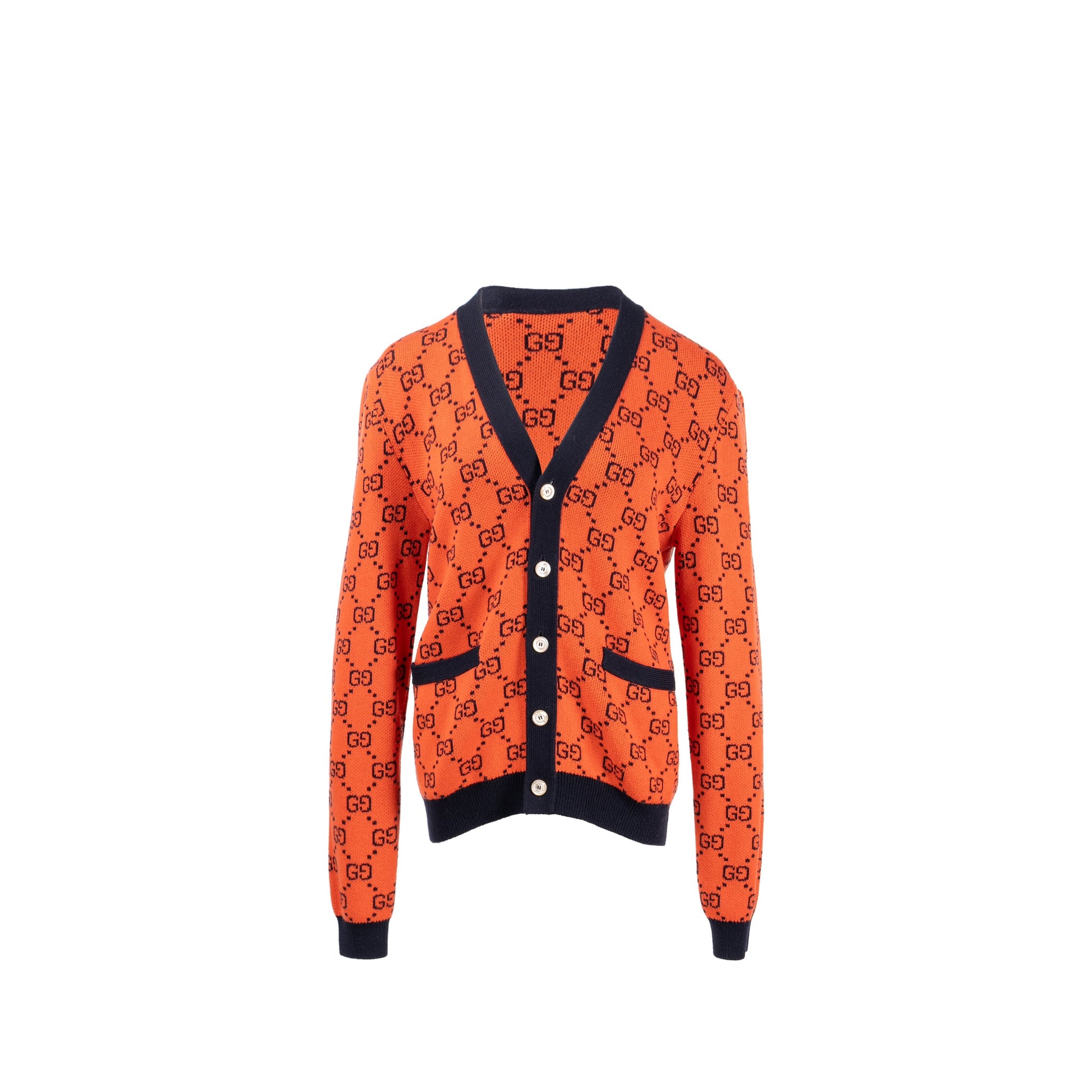 Gucci Size XS GG Jacquard Cardigan Wool/Cotton Orange