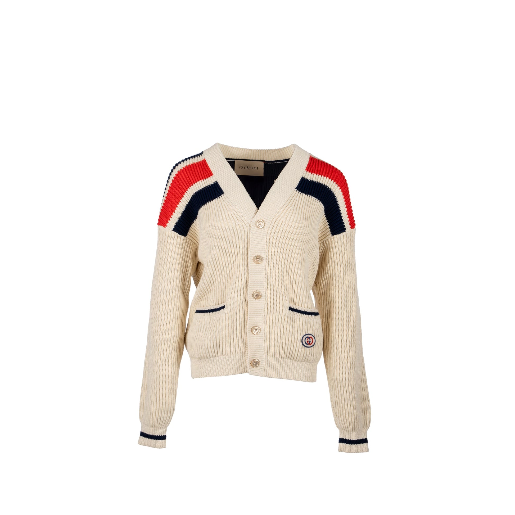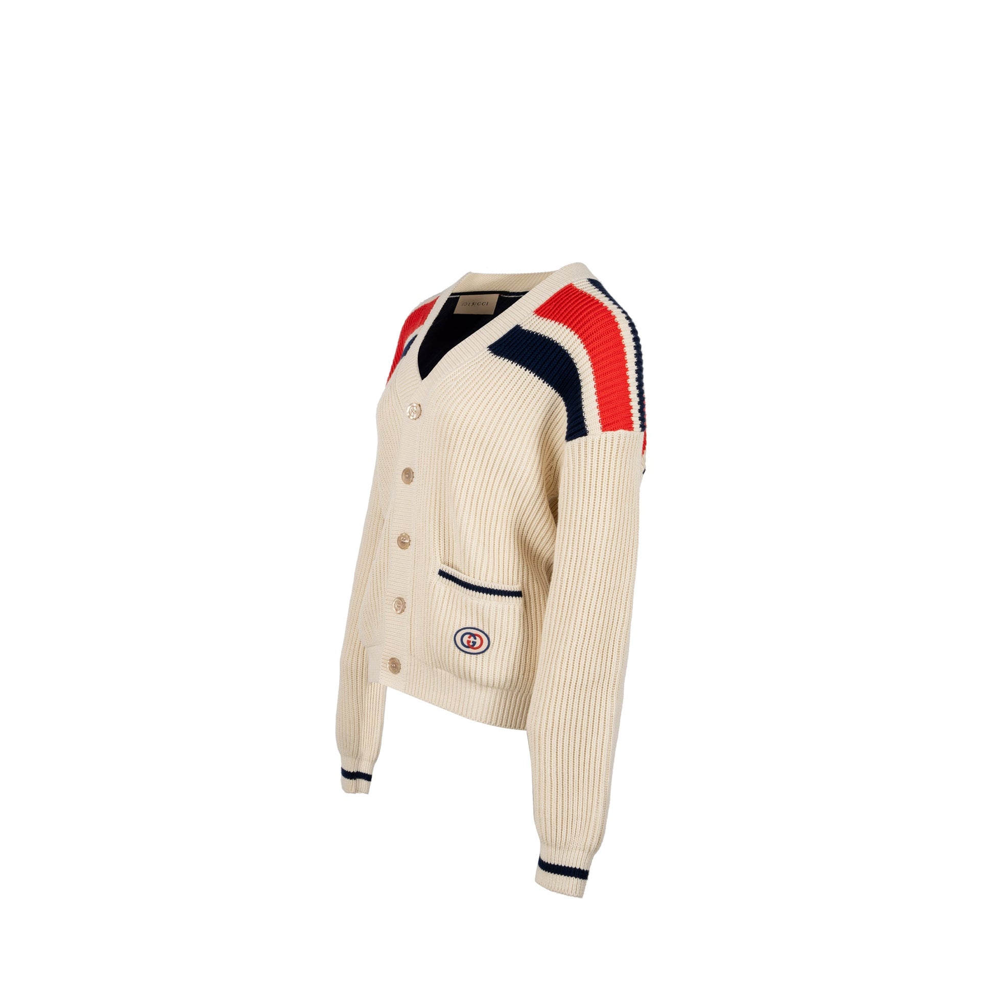 Gucci Size XS Interlocking G Stripe-detail Knitted Cardigan Cotton White/Multicolour