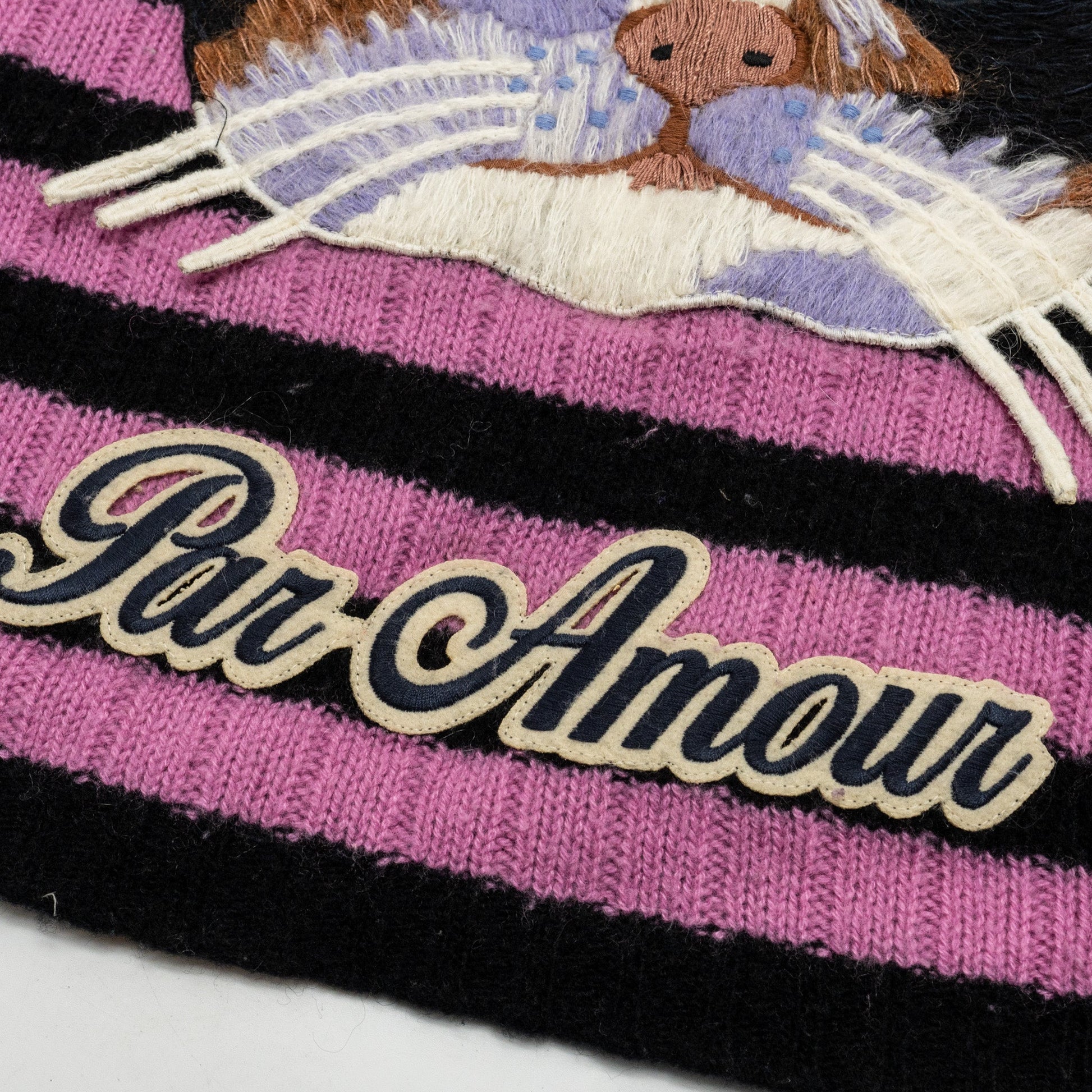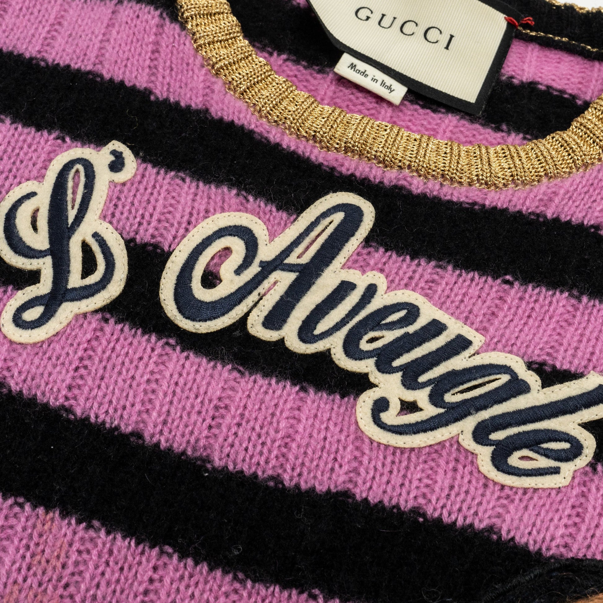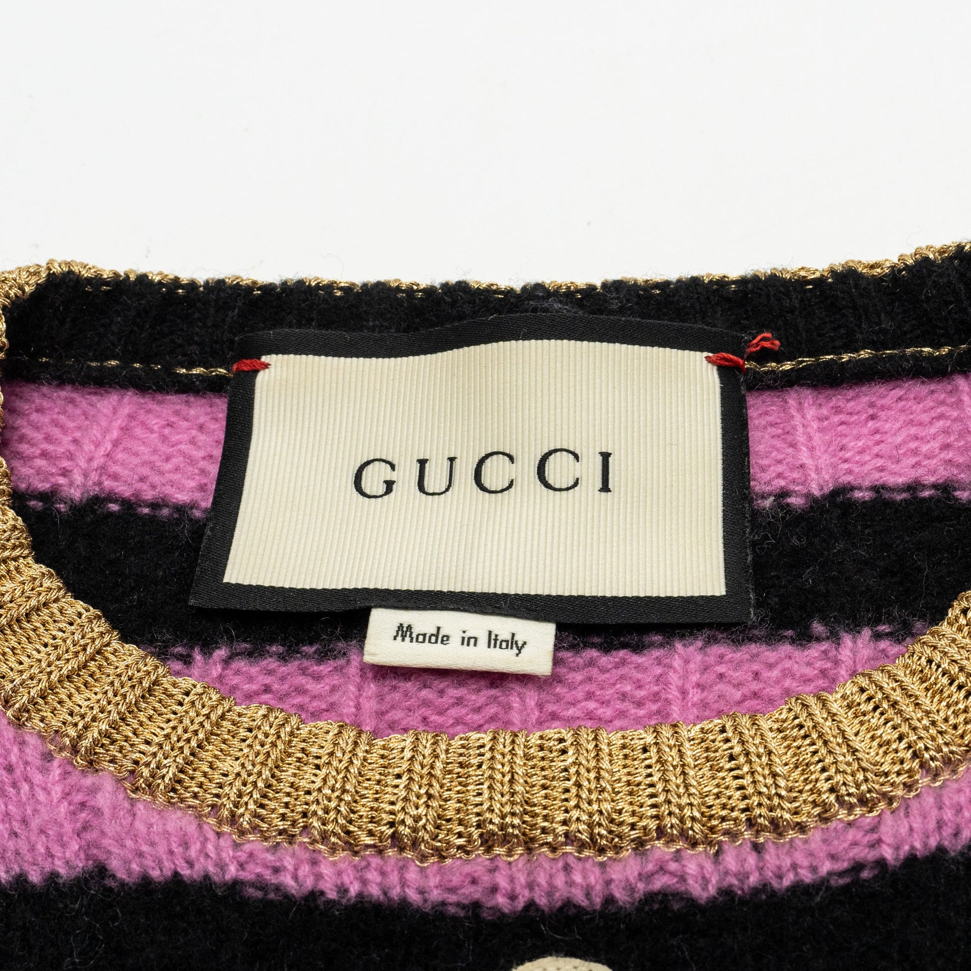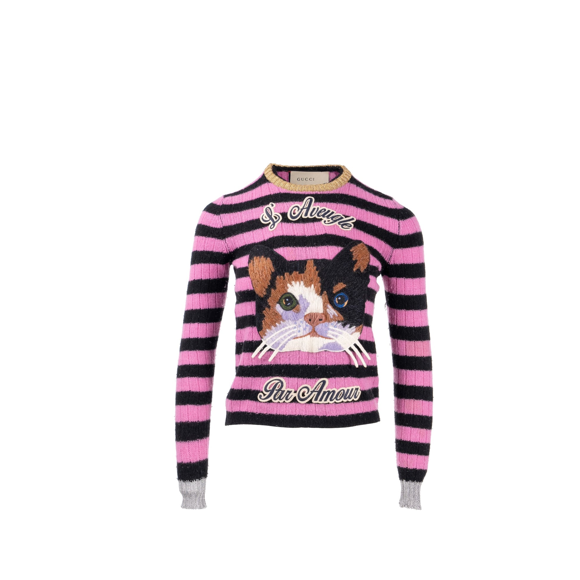 Gucci Size XXS Cat Striped Sweater Cashmere/Wool Pink/Black/Multicolour
