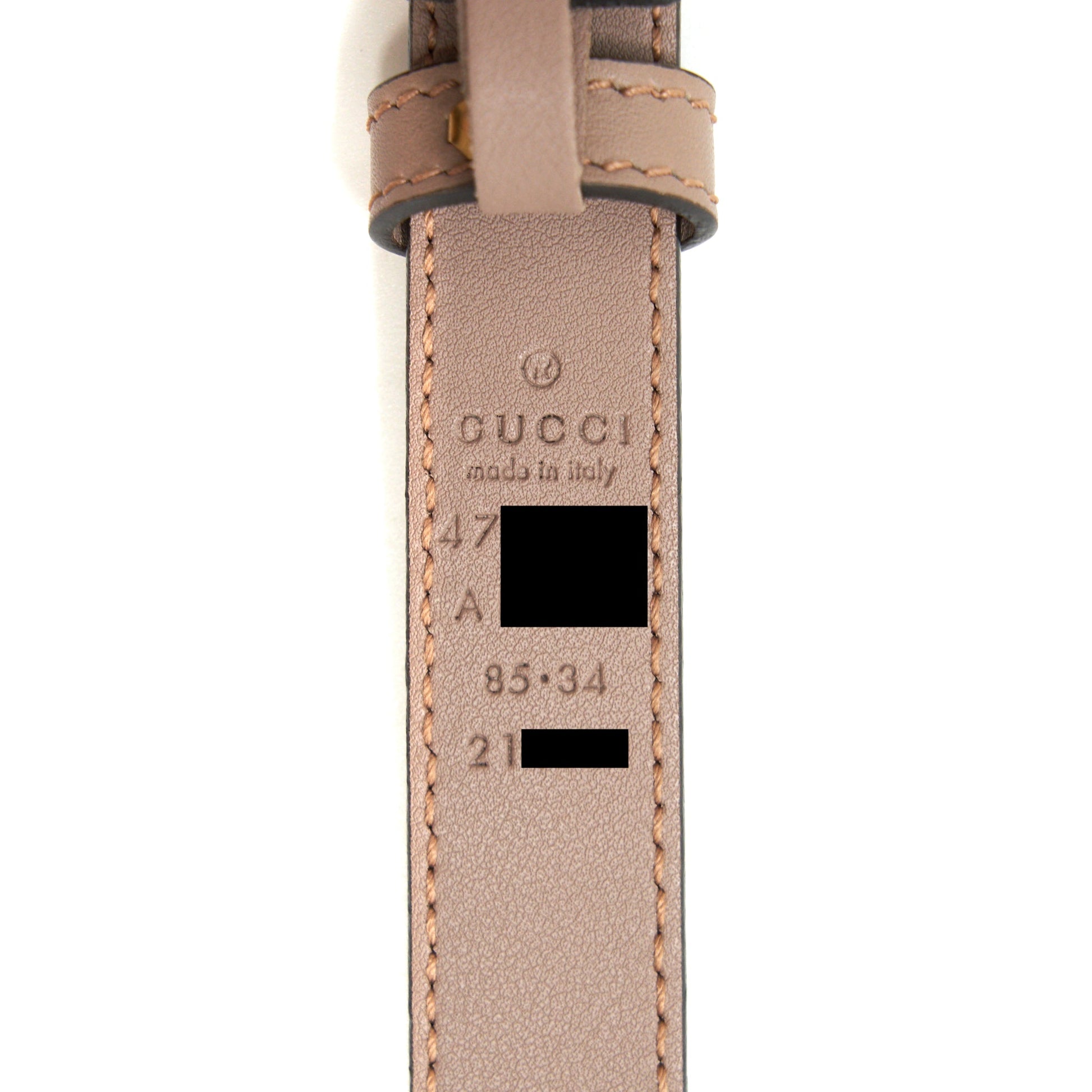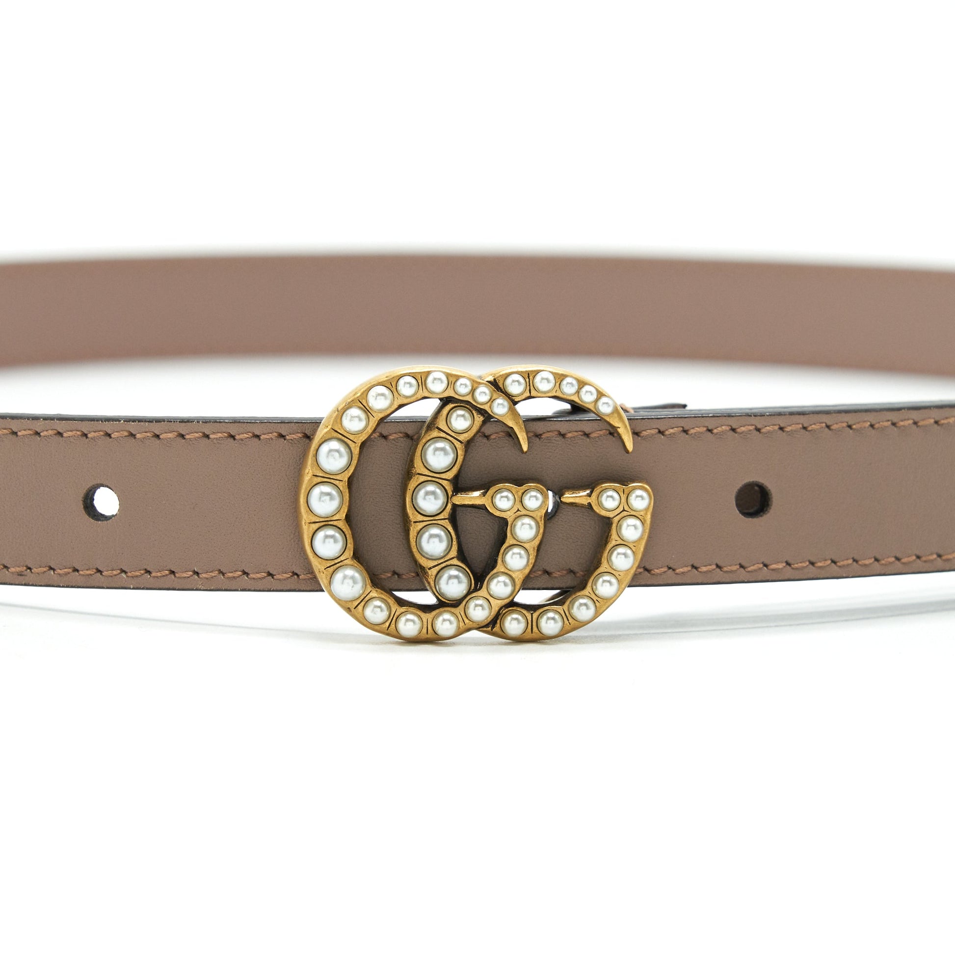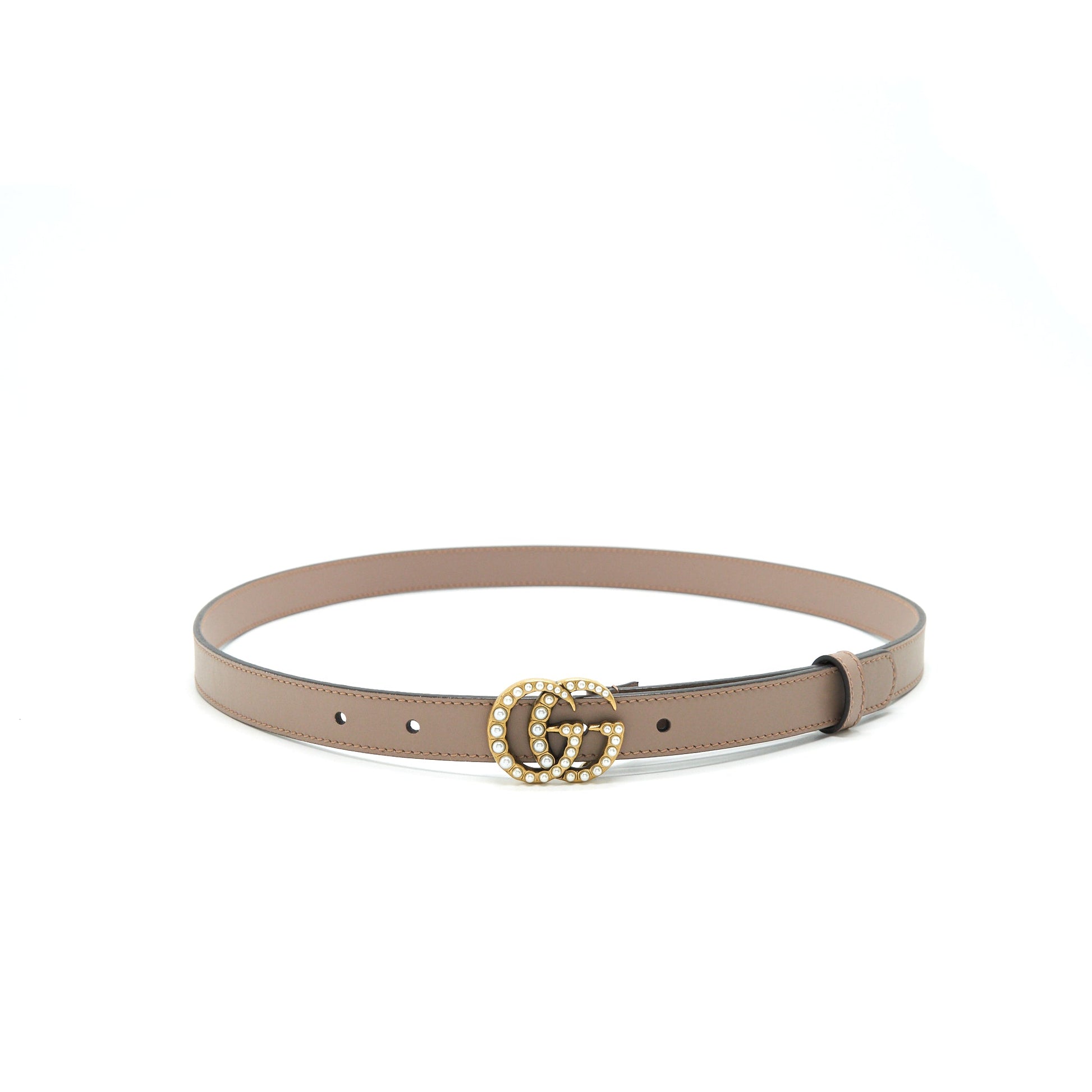 Gucci size85 Leather Belt with Pearl Double G bucket