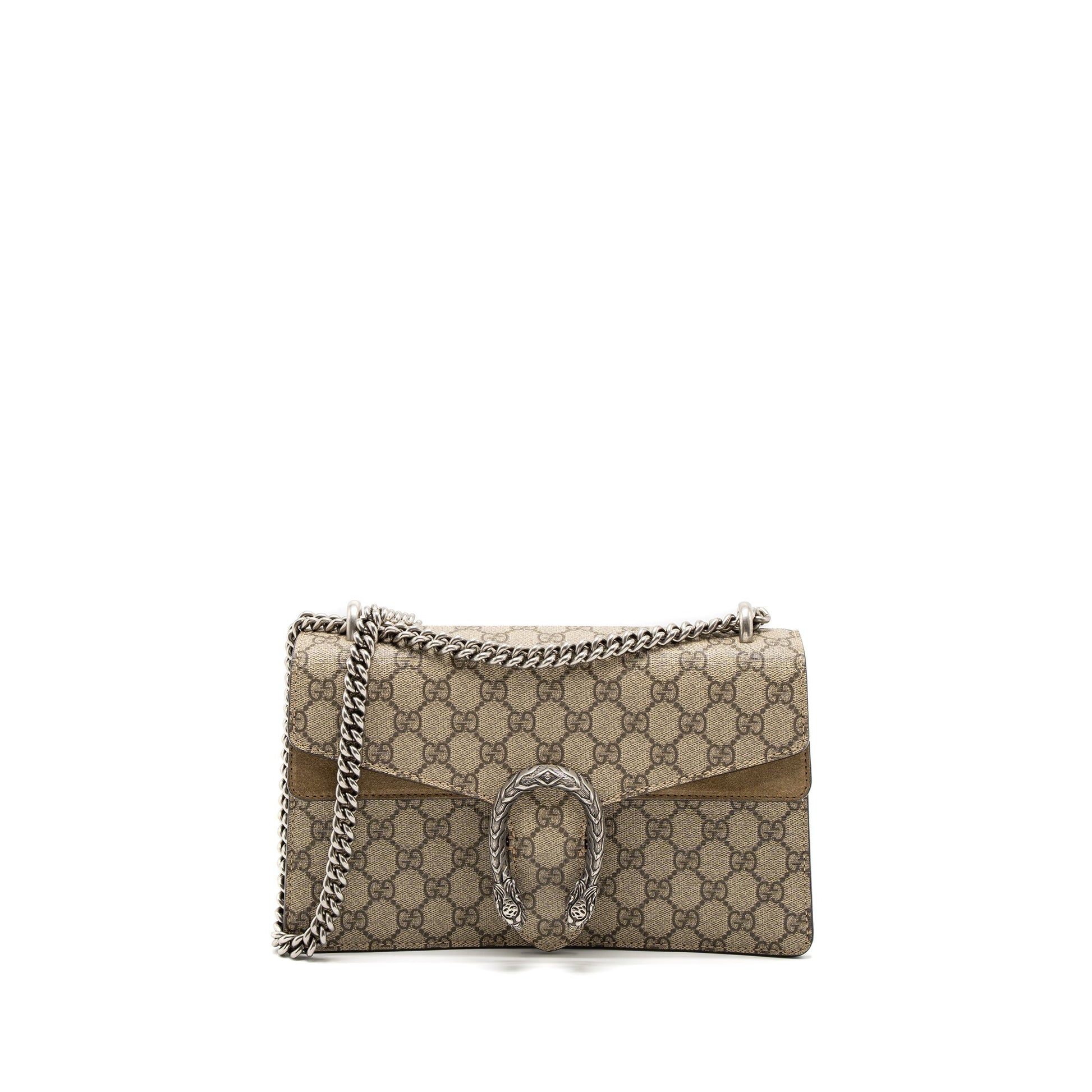 Gucci Small Dionysus Shoulder Bag GG Supreme Canvas/Suede Brown SHW