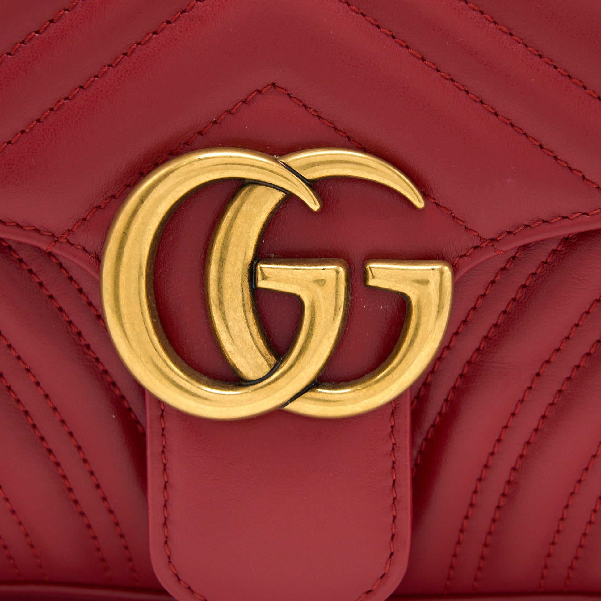 Gucci Small GG Marmont Matelasse Shoulder Bag Calfskin Red