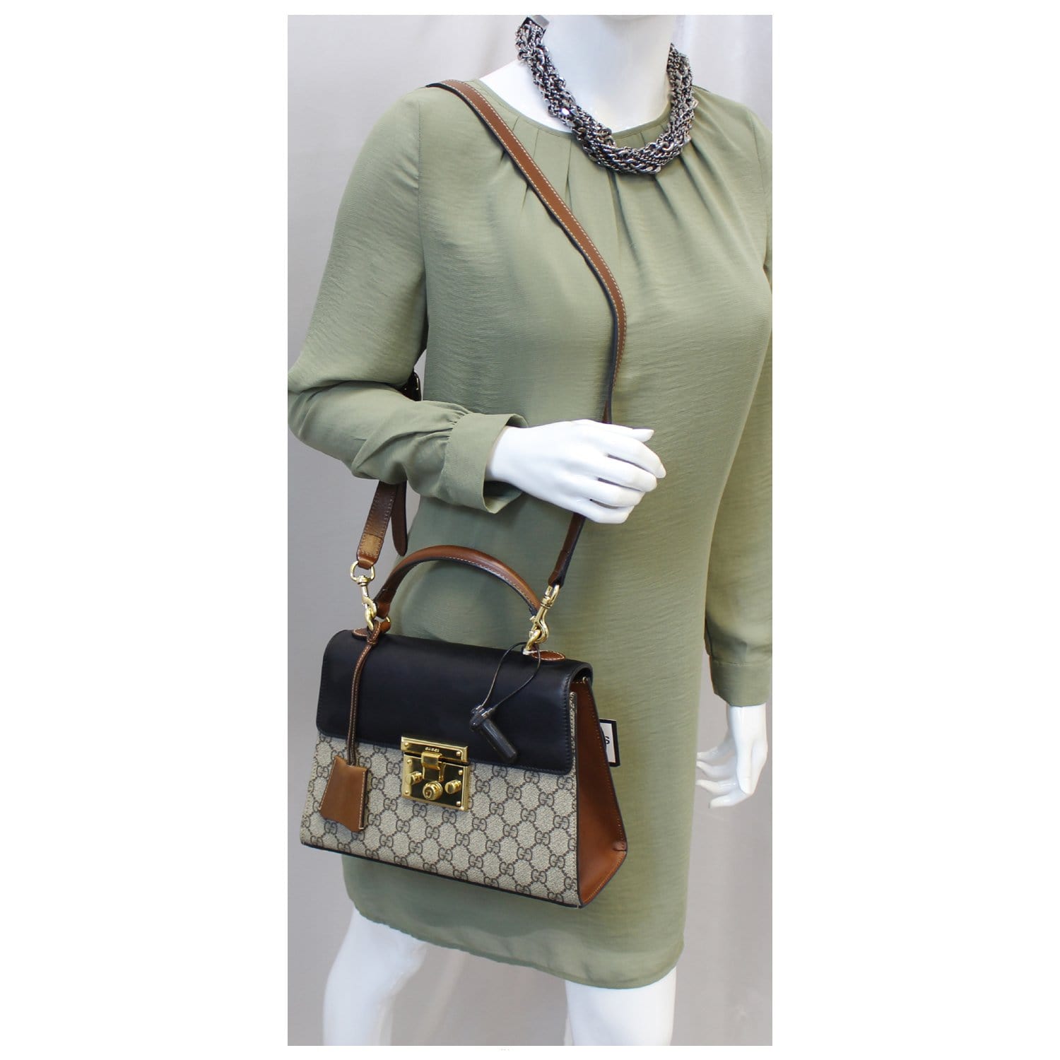 GUCCI Small Padlock GG Supreme Monogram Top Handle Crossbody Bag