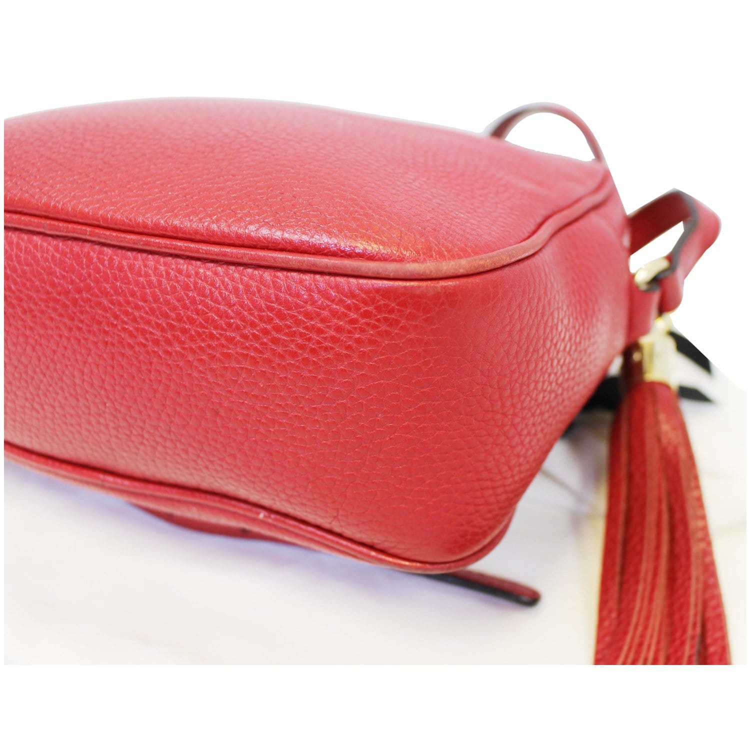 GUCCI Soho Disco Pebbled Leather Small Crossbody Bag Red