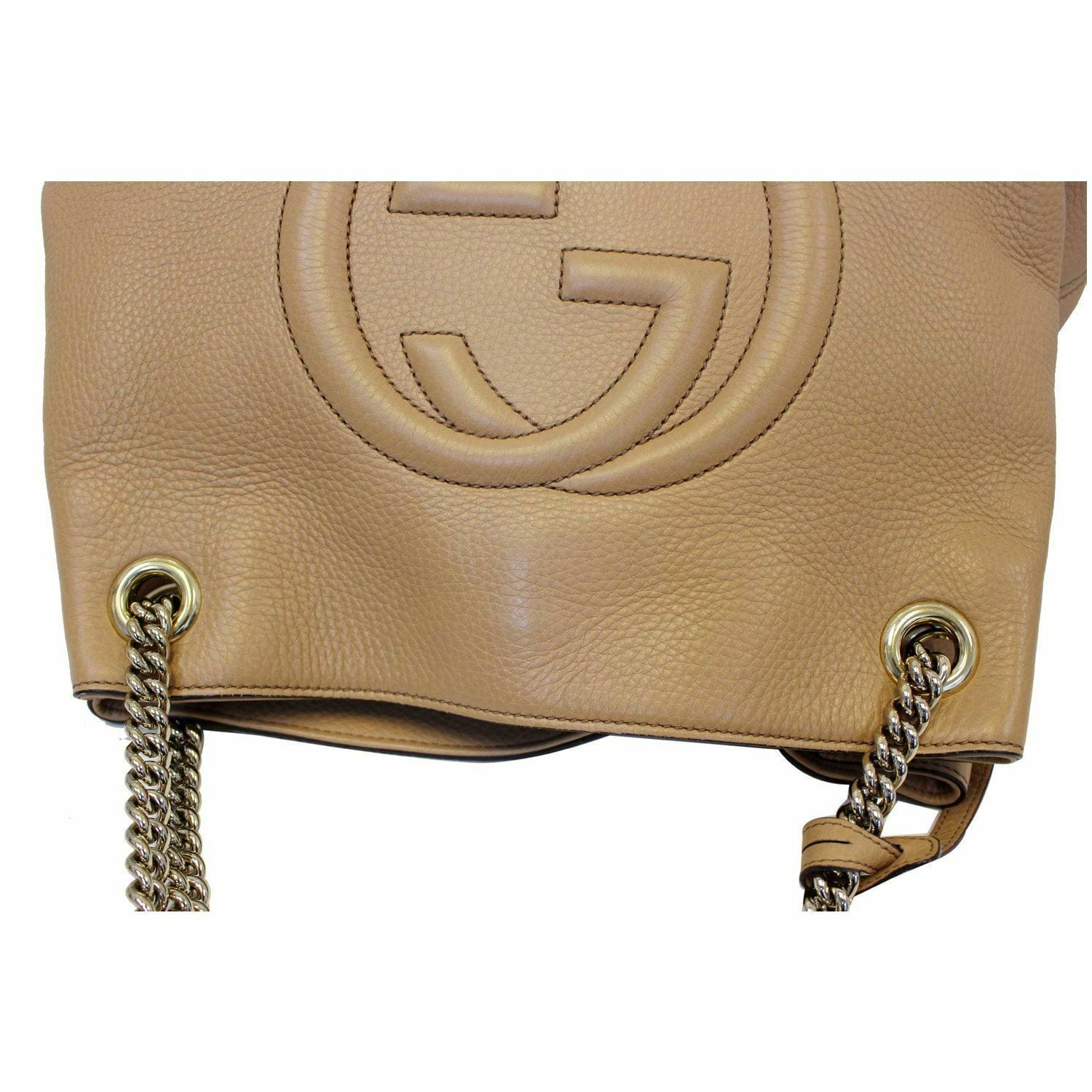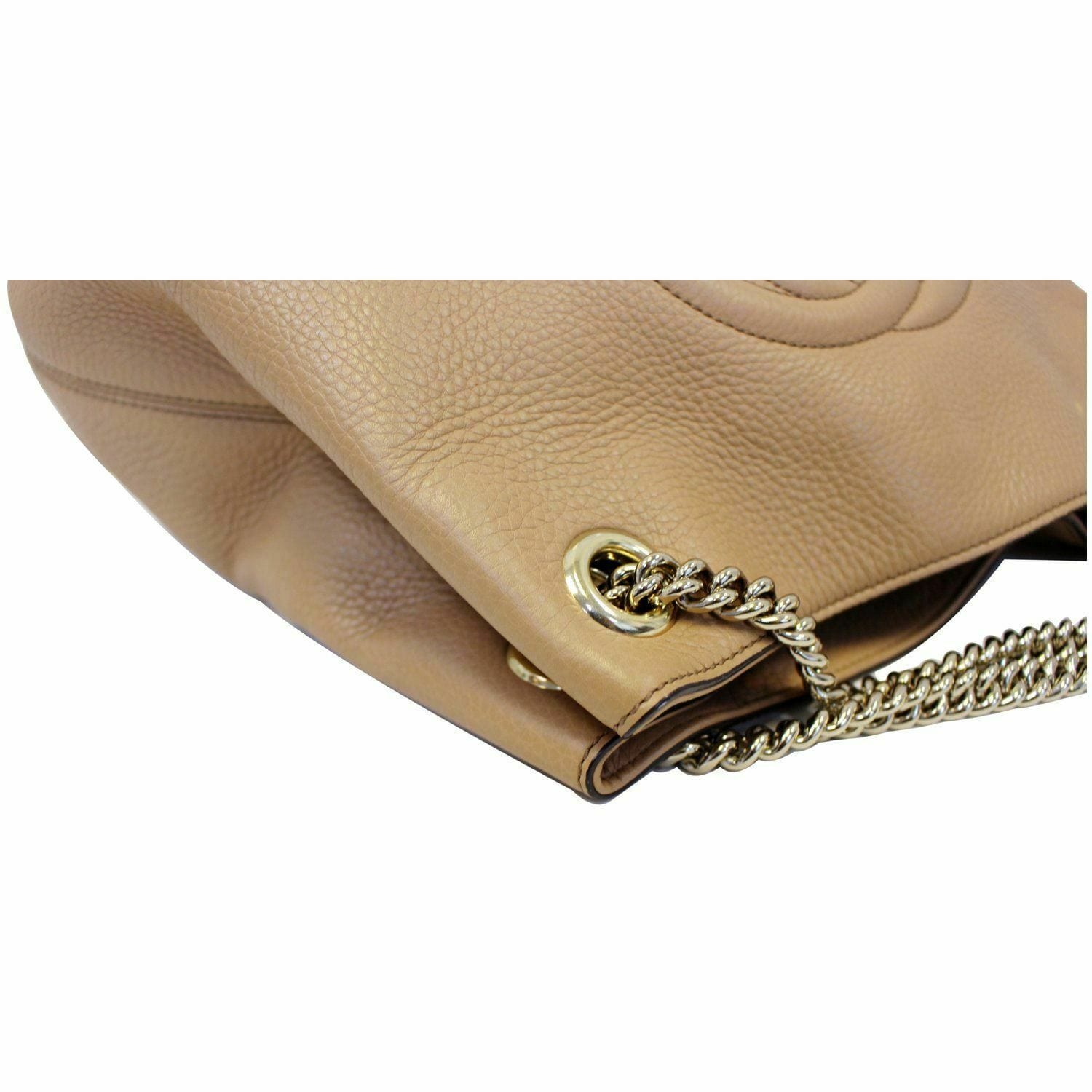 GUCCI Soho Pebbled Leather Chain Shoulder Bag 308982 Beige