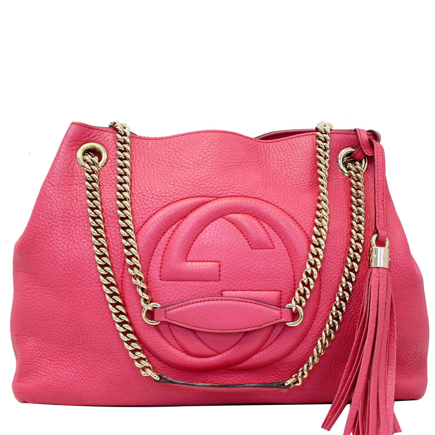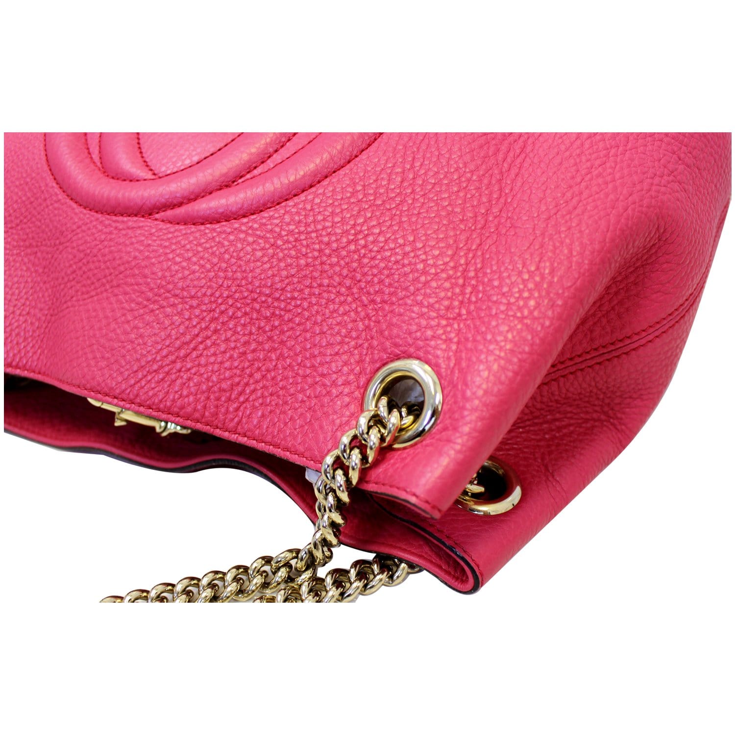 GUCCI Soho Pebbled Leather Chain Shoulder Bag Pink