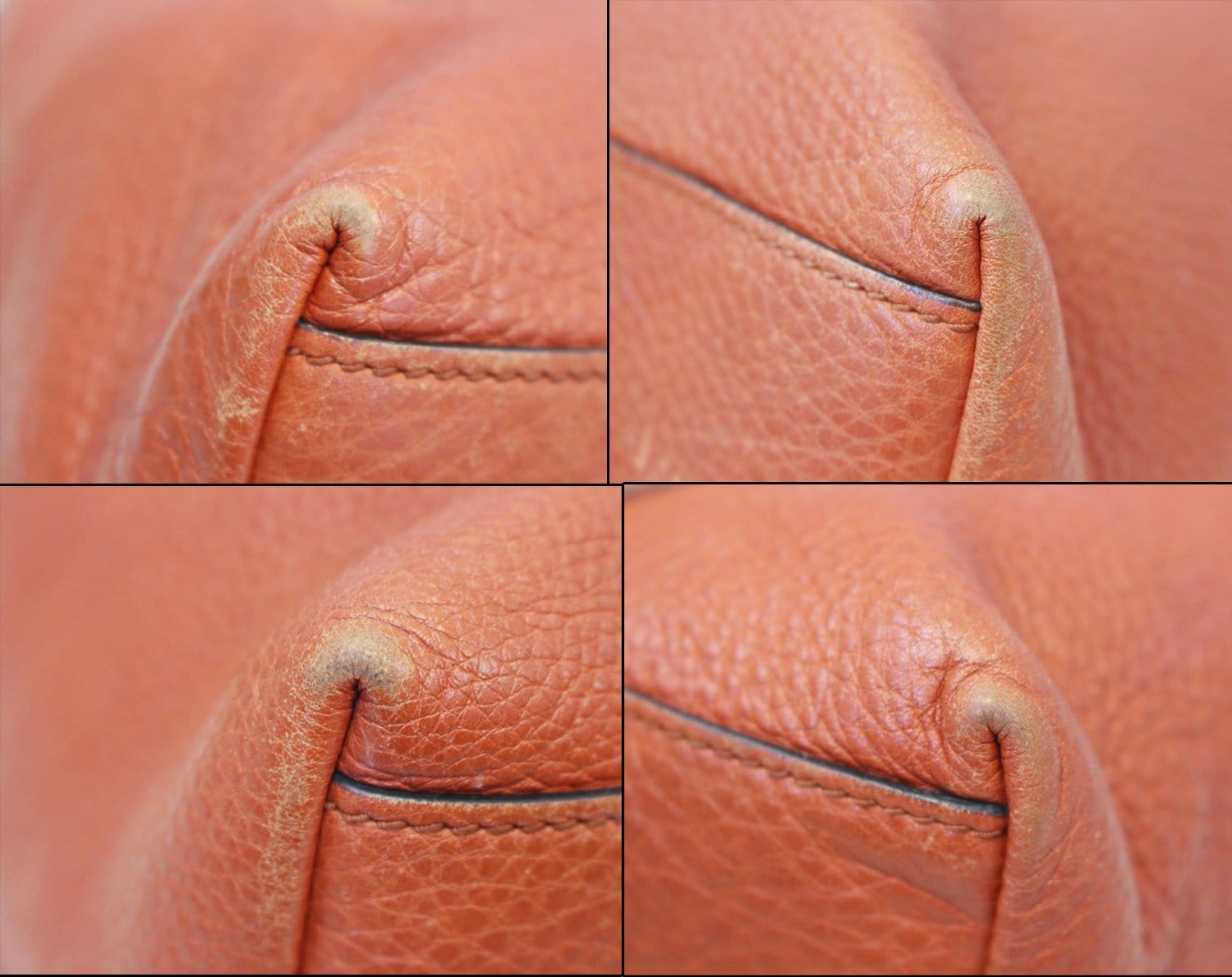 - Leather: Peeling off, pen and dirt marks, scratches, some visible signs of use.