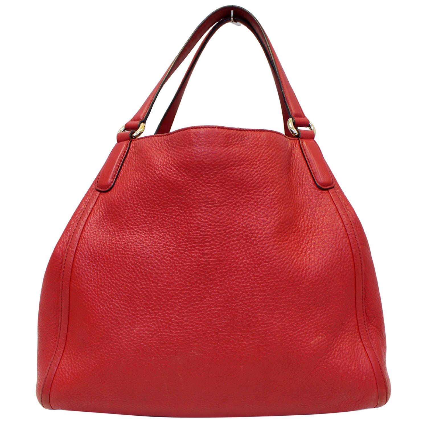 GUCCI Soho Top Handle Pebbled Leather Tote Bag Red