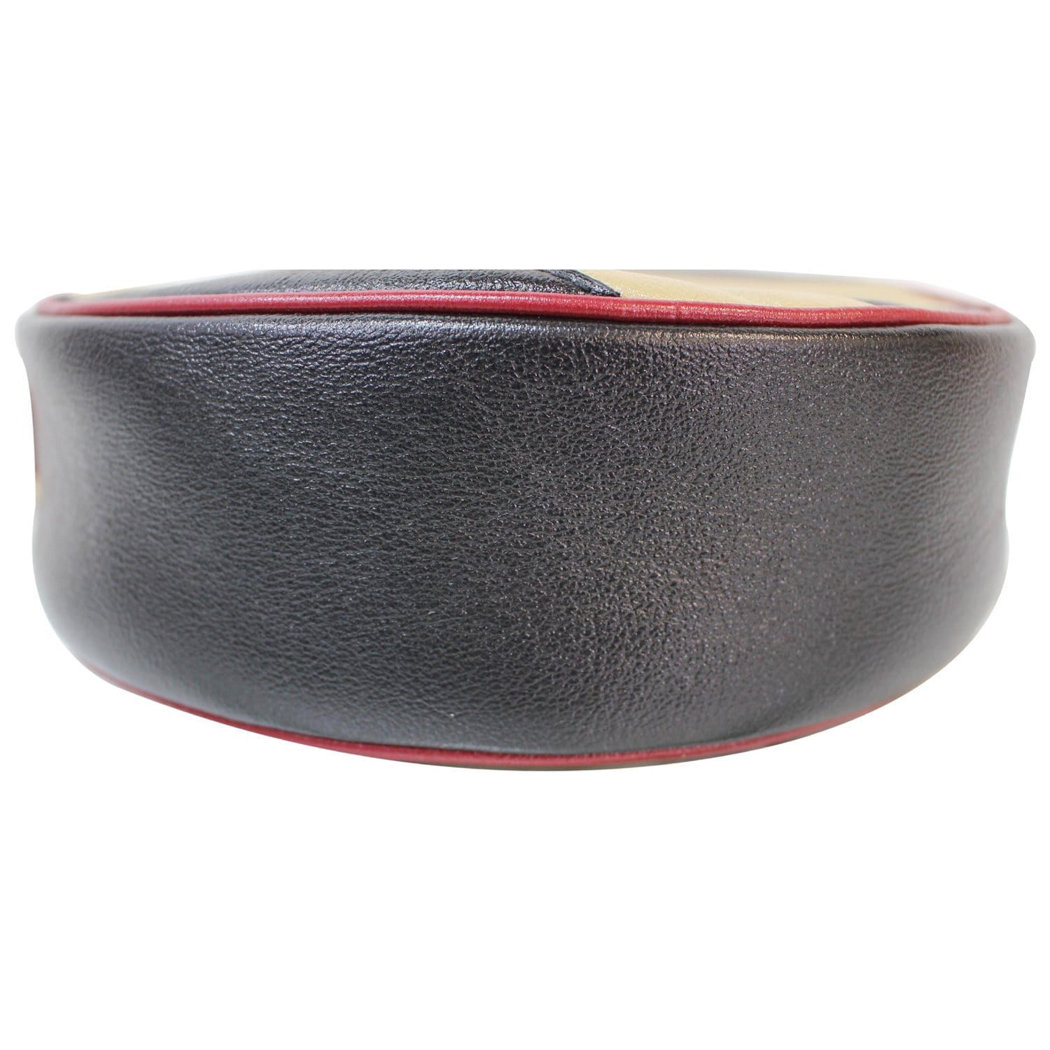 GUCCI Stripe GG Marmont Mini Round Leather Crossbody Bag Black/Beige 550154