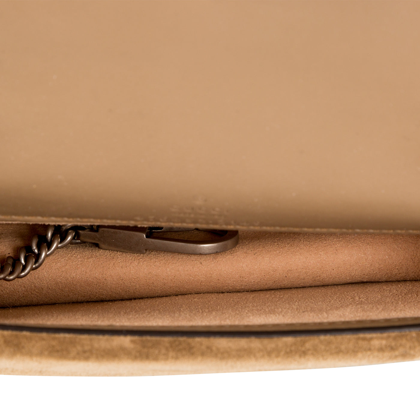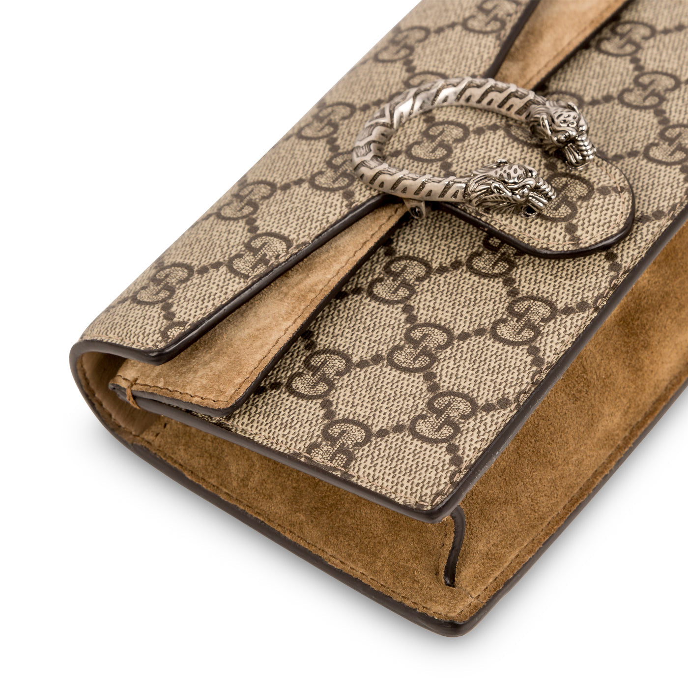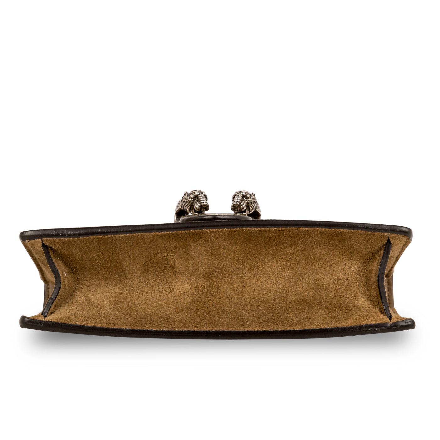 Inspired by the Greak God of wine and celebration, Dionysus. The Dionysus collection by Gucci are perfect bags to take out for special occasions. Decorated with the GG Supreme print and the unique tiger head spur closure – exclusive to the Dionysus collection. This mini bag comes with a key chain to attach any accessory or any bag. The shoulder chain has a drop of 60 cm, perfect for cross body and over the shoulder use. Style this bag with a Gucci T shirt and jeans for a casual look, or a dark shaded dress and heels for evening wear and partying.