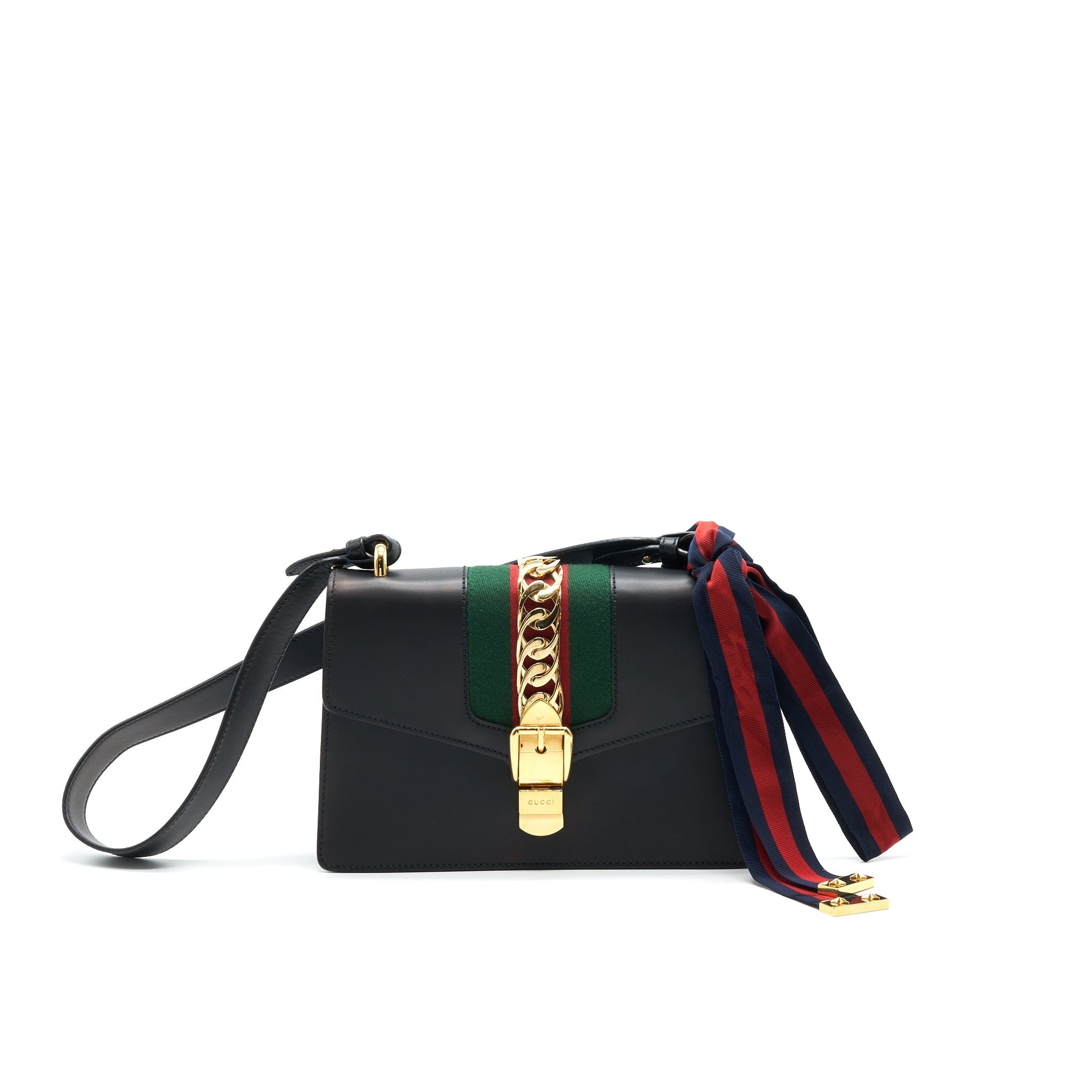 GUCCI SYLVIA SMALL LEATHER BAG BLACK