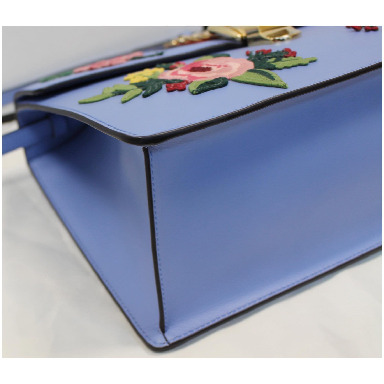 GUCCI Sylvie Embroidered Leather Medium Top Handle Bag Blue 431665
