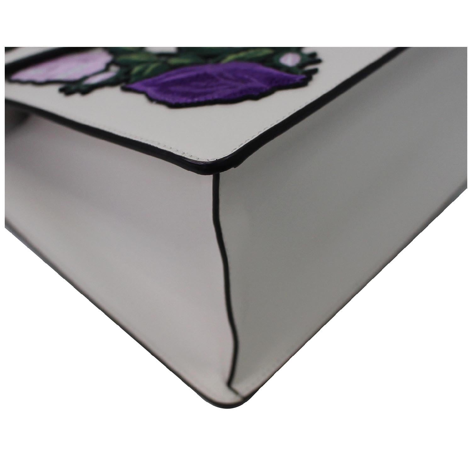 GUCCI Sylvie Embroidered Leather Medium Top Handle Bag White 431665