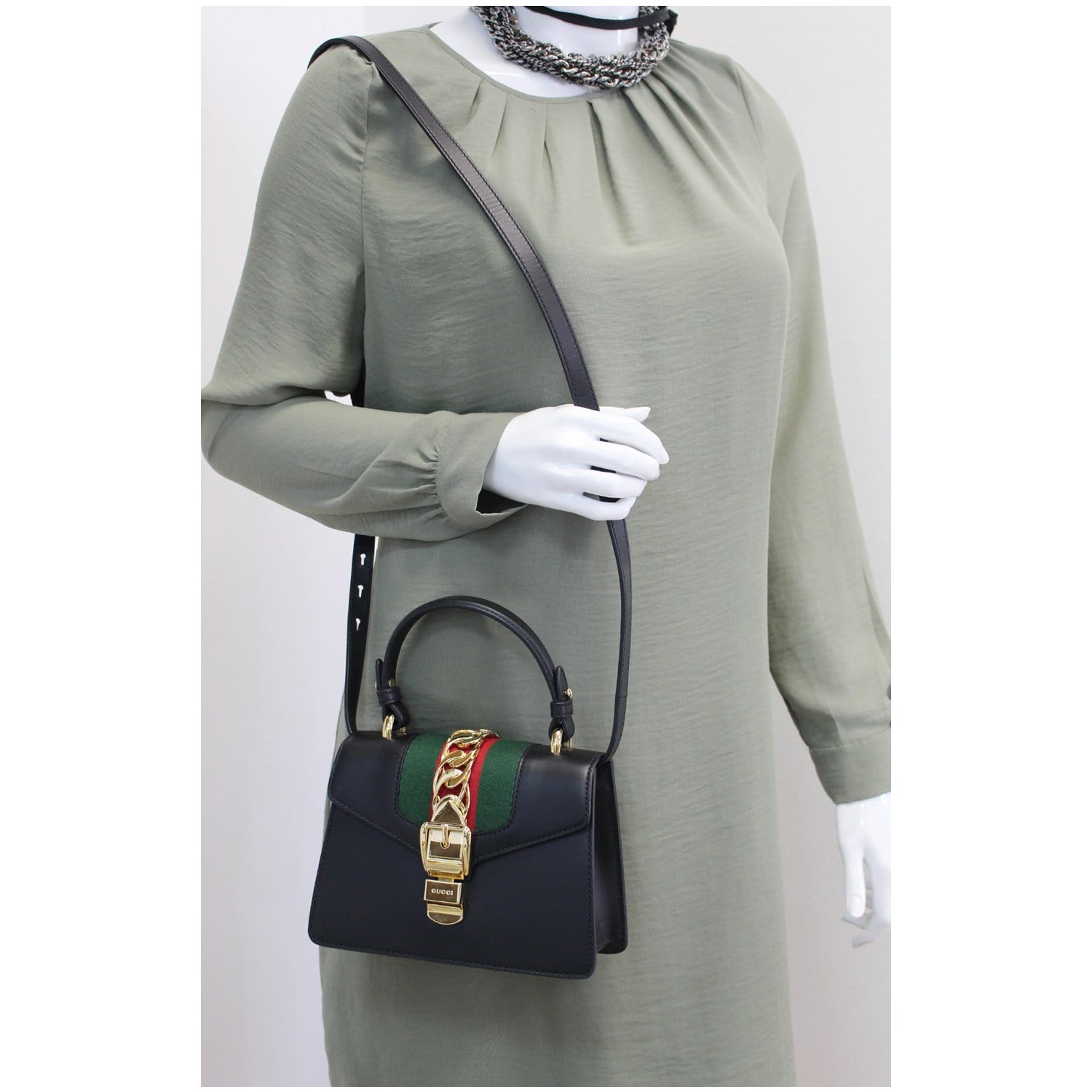 GUCCI Sylvie Mini Leather Crossbody Bag Black 470270