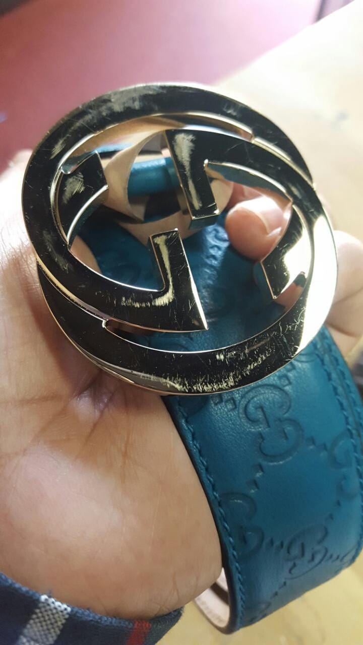 Gucci Teal Guccissima Leather Interlocking G Buckle Belt 114876 4618 (80/32)